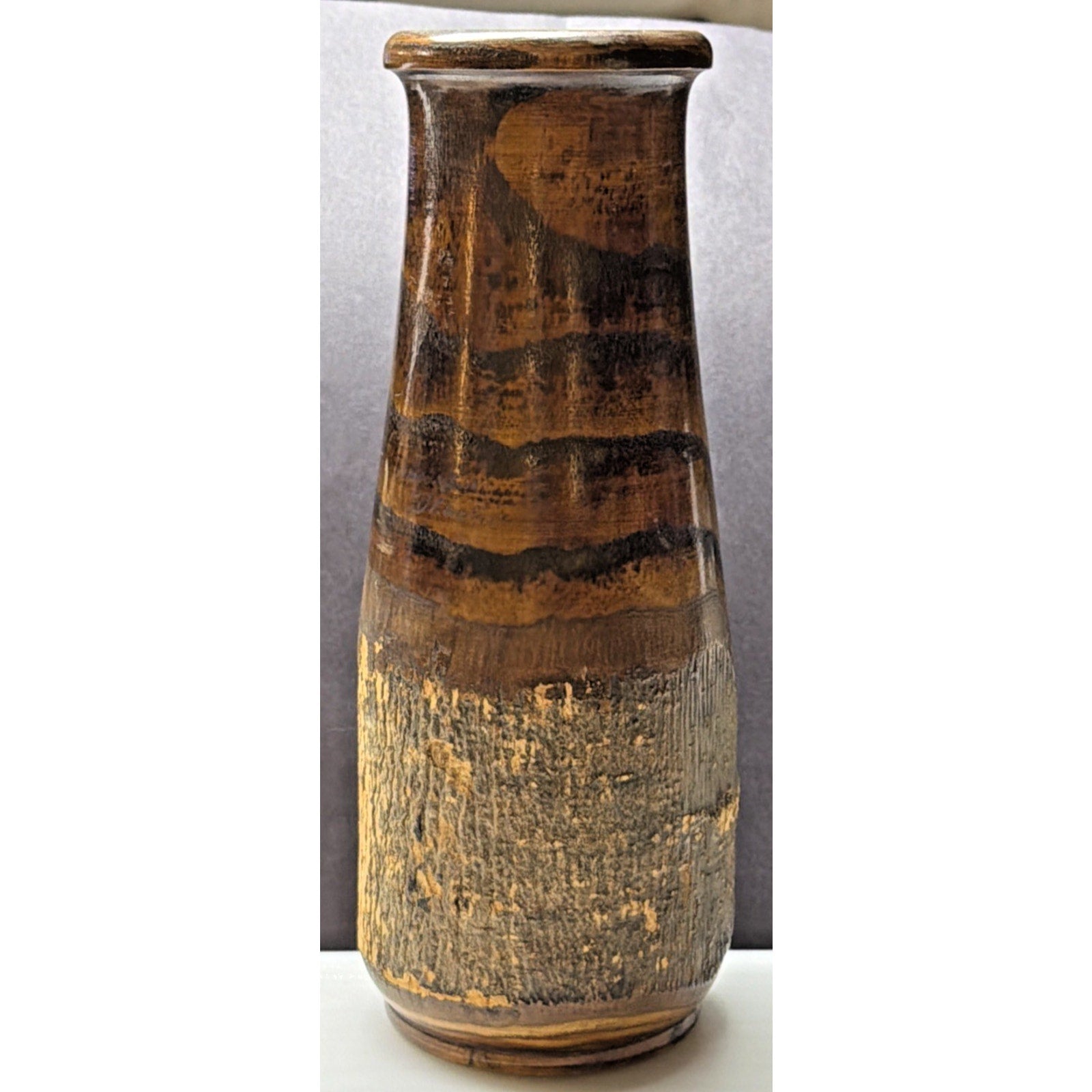 Antique Adirondack Souvenir Wood Turned Vase Bark Native American WI Dells As Is