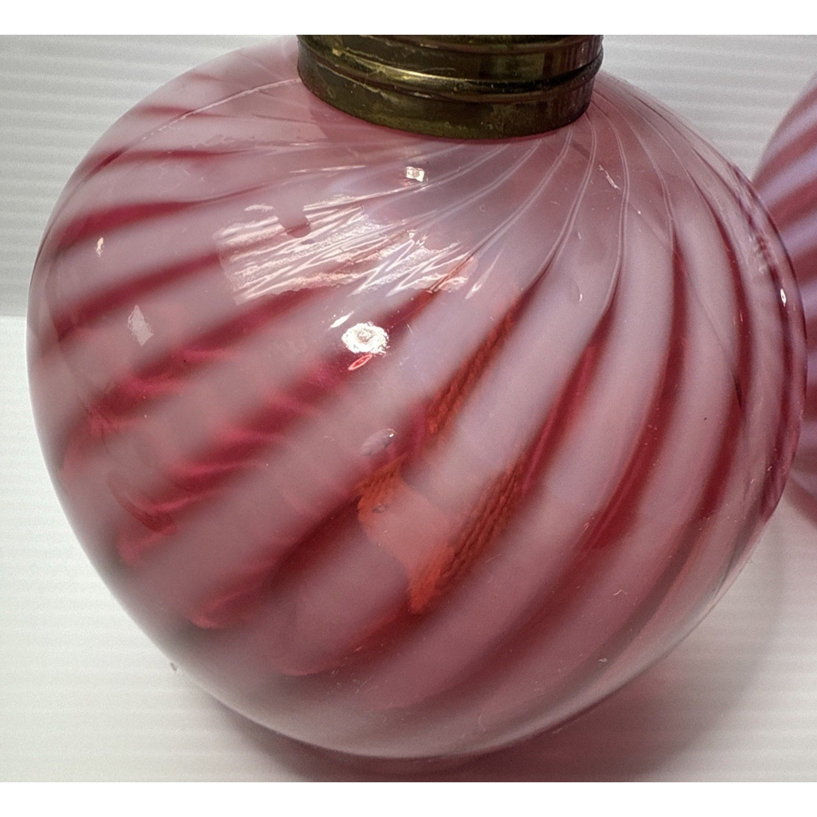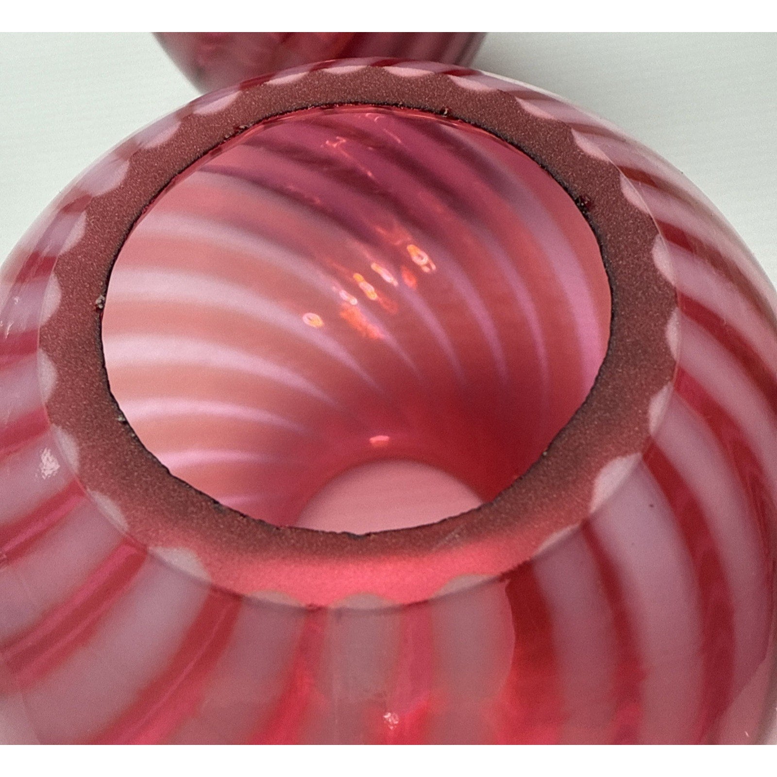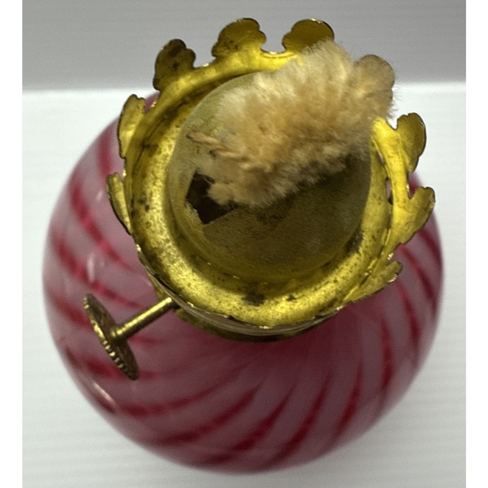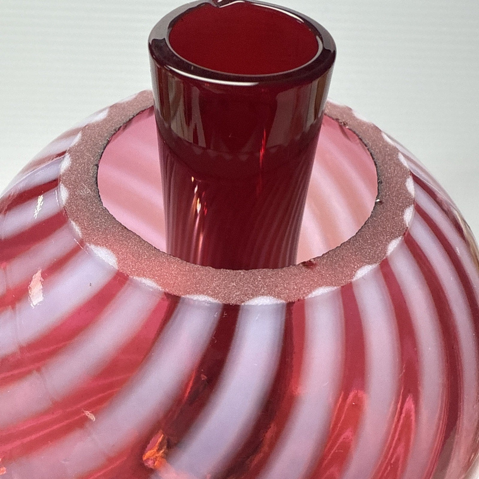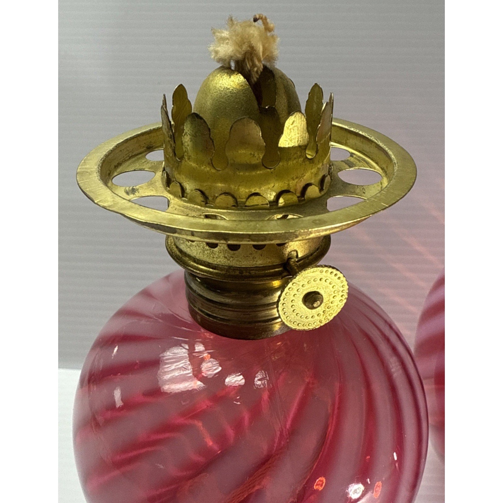 Antique Cranberry Swirl Opalescent Miniature Oil Lamp Red Hurricane Scarce As-Is