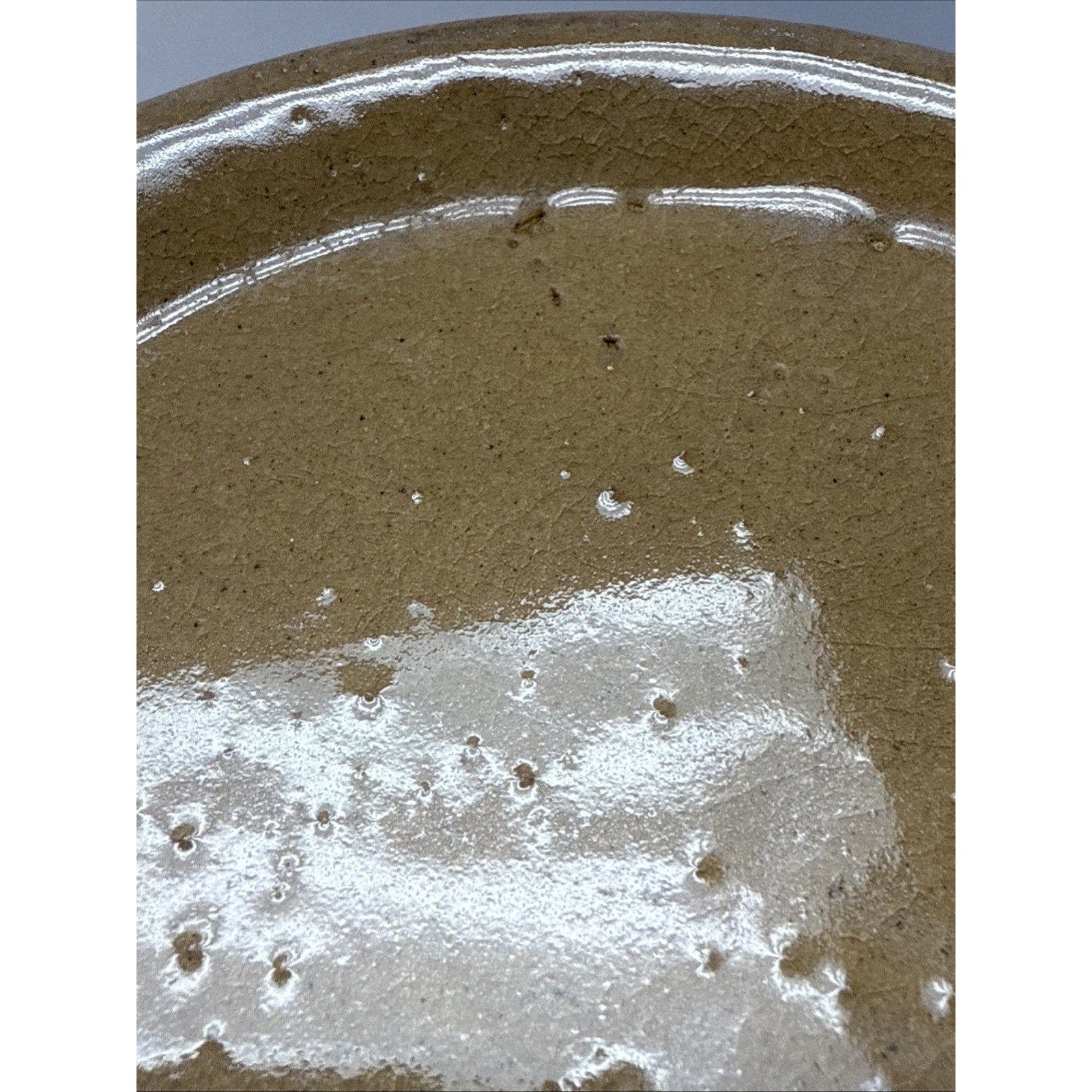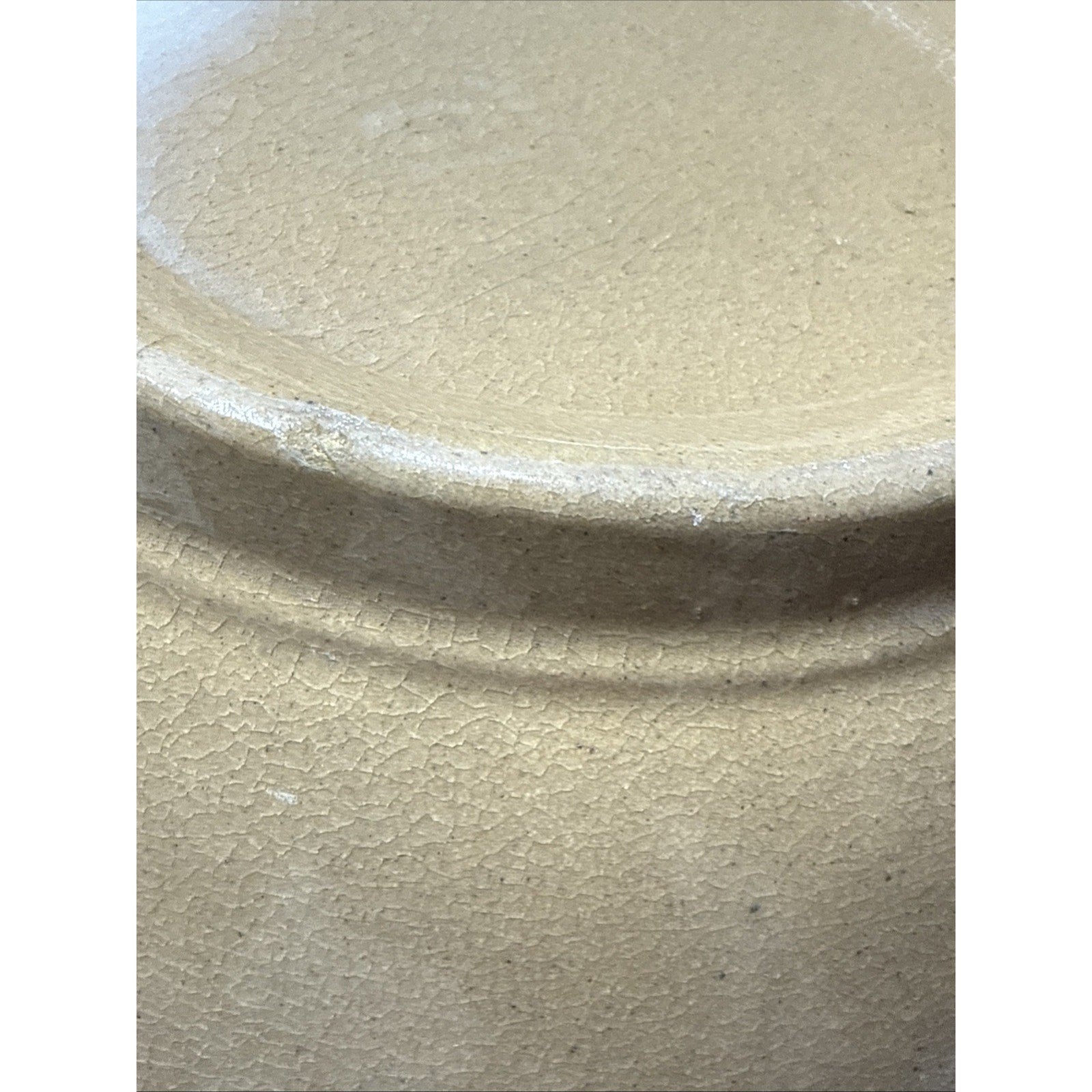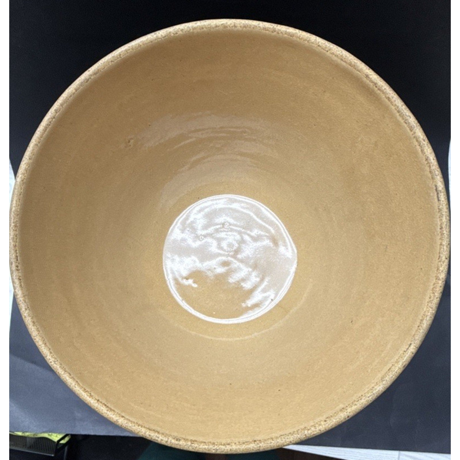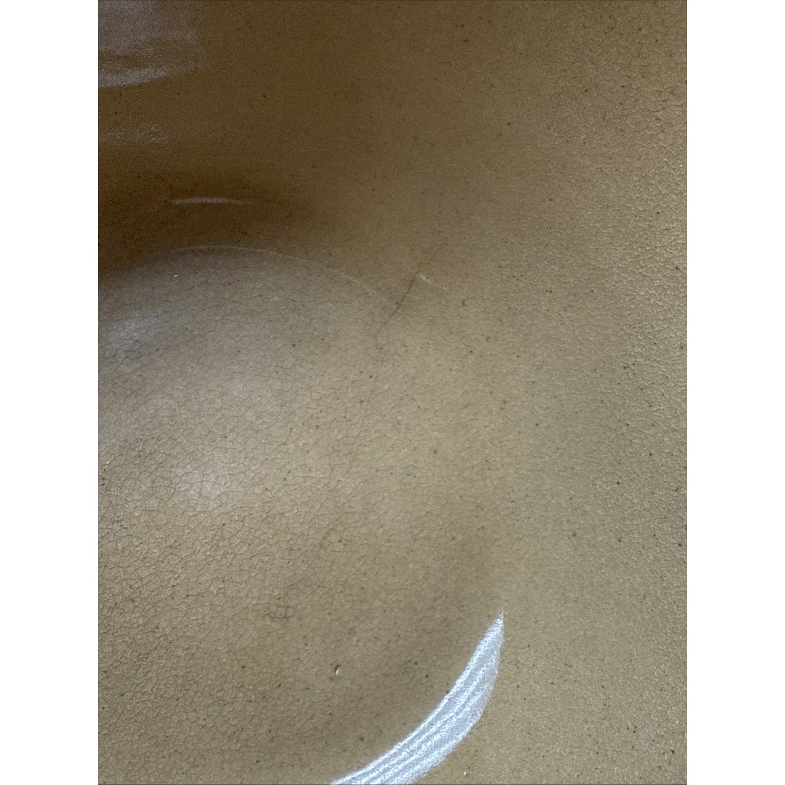 Some wear such as scuffs, scratches, discolorations, and fleabites. There is wear to the stripes/paint. There is a small visible crack on the inside bottom which can faintly be seen on the bottom outside.