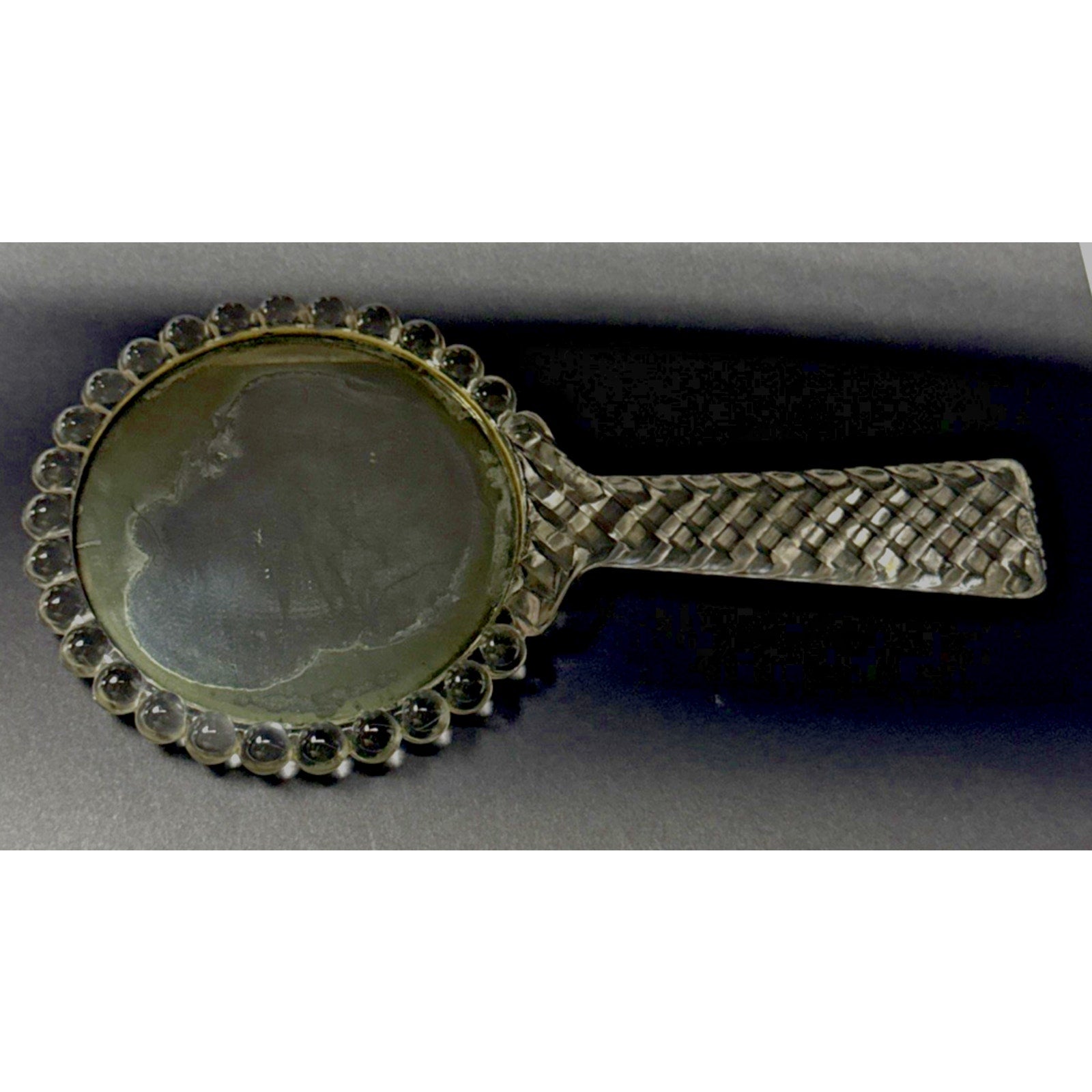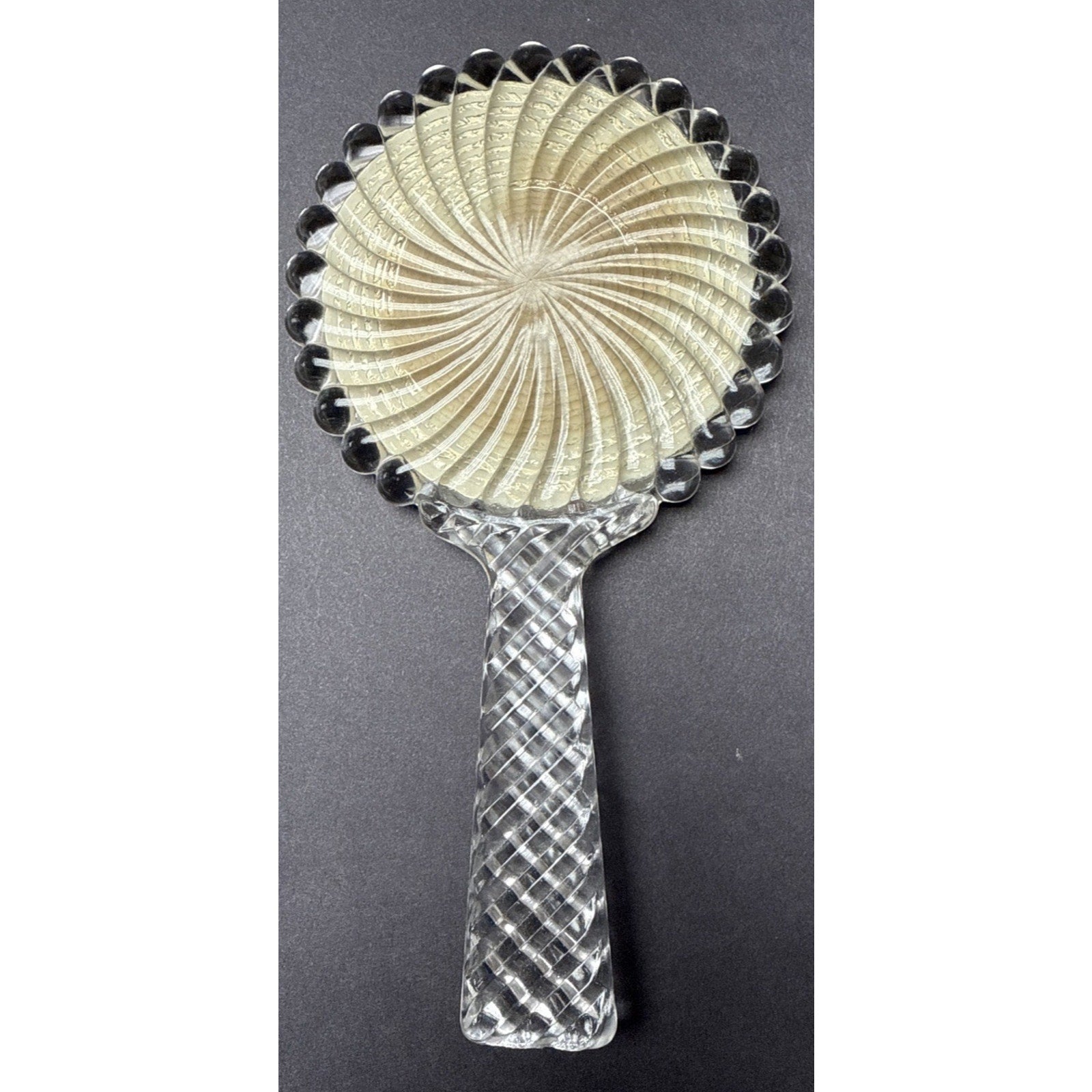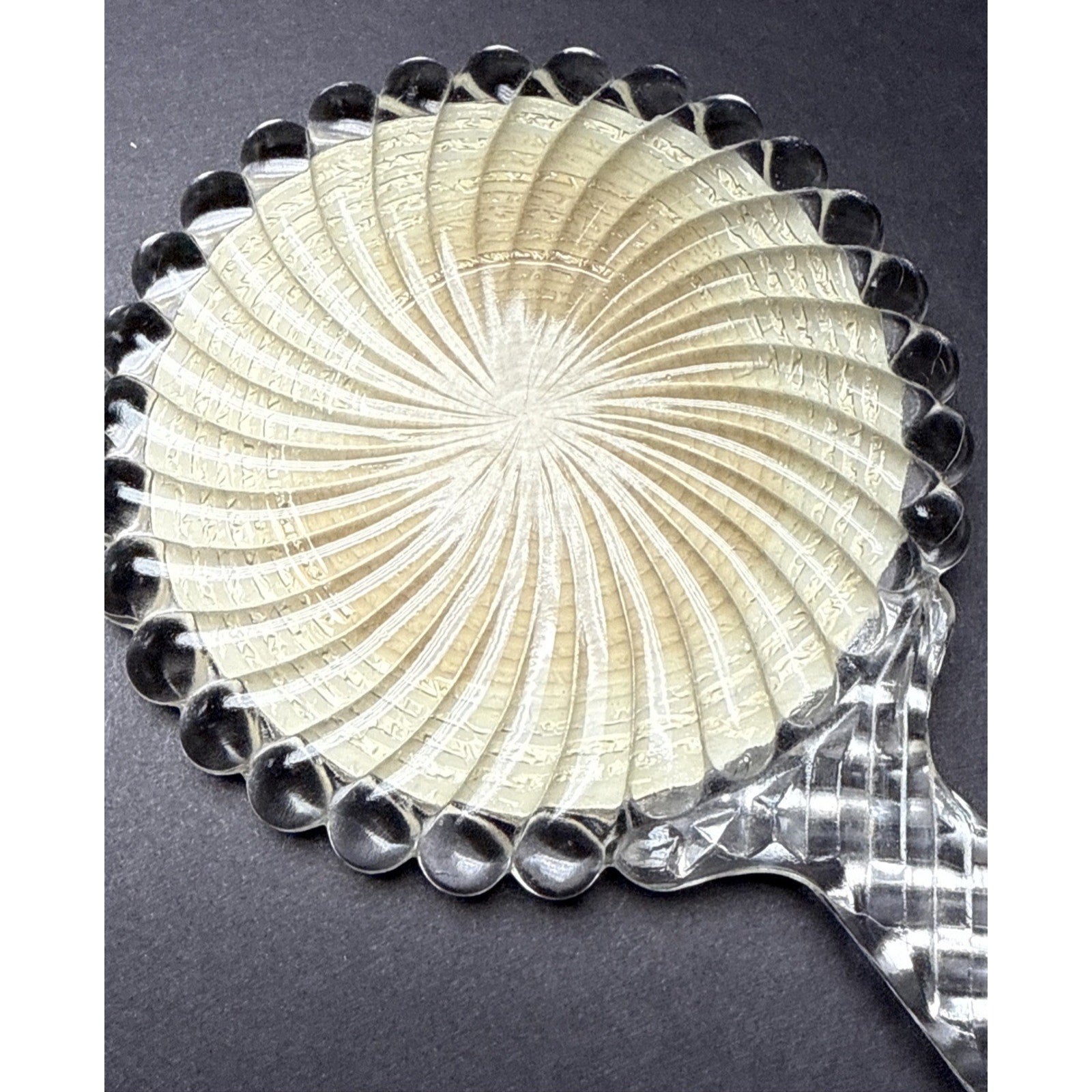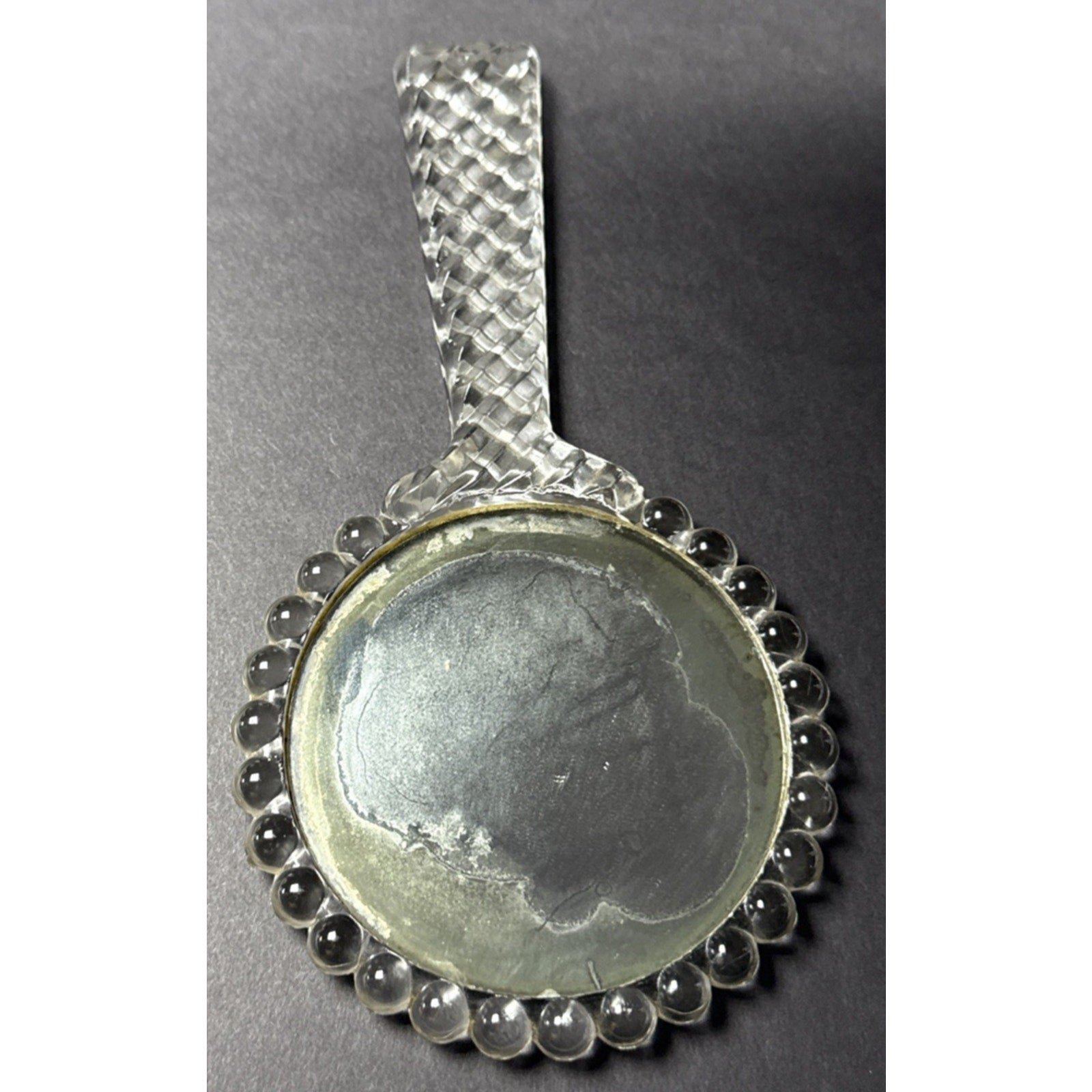 Antique Pressed Glass Hand Mirror Bubble Clear Abstract Magnifying Vanity