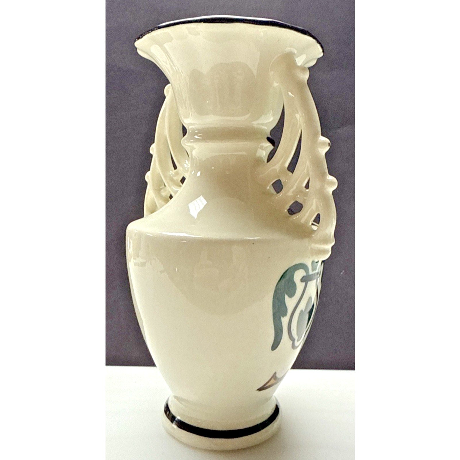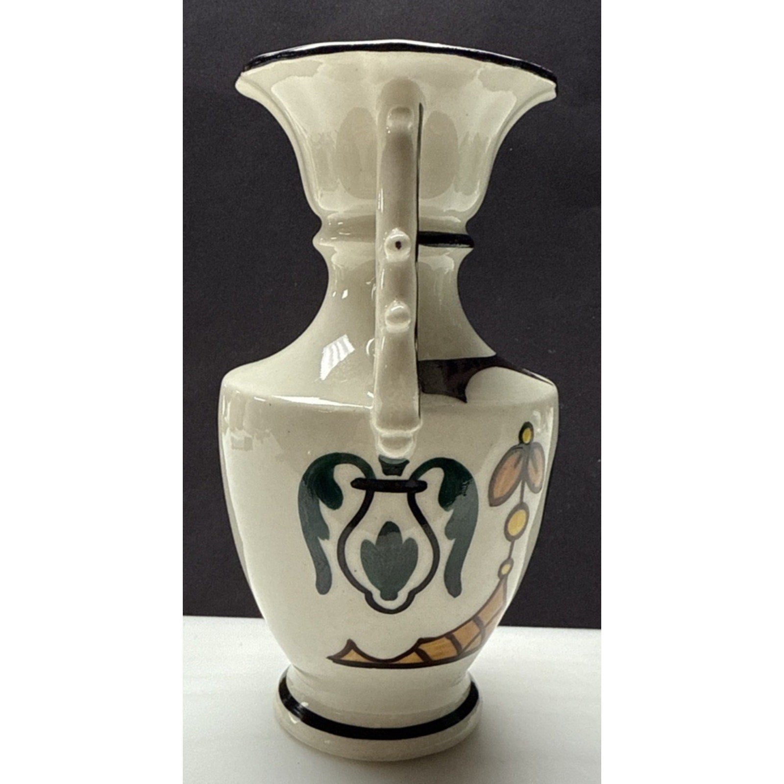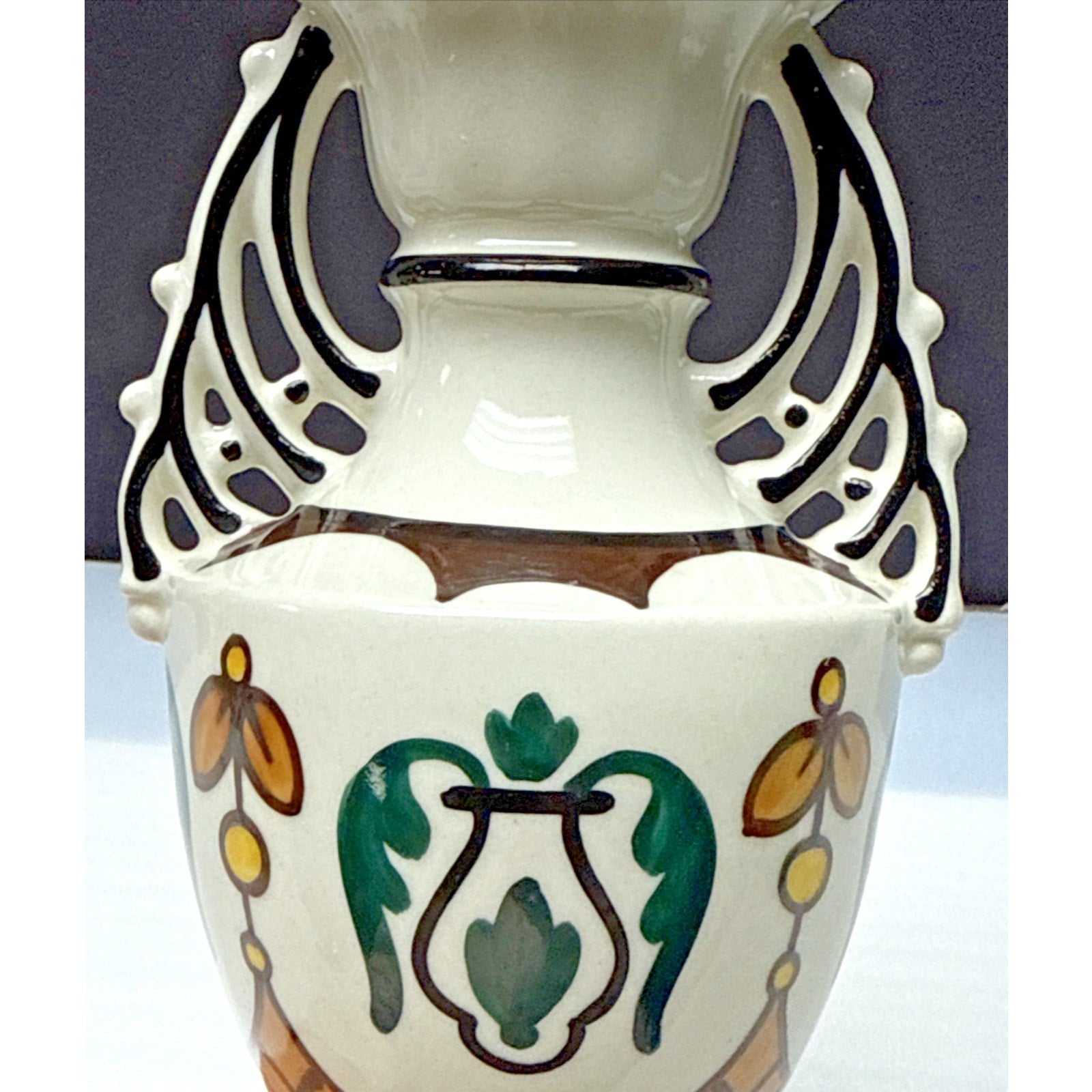 Art Deco Czech Art Pottery Bohemian Double Handle Vase Hand Painted