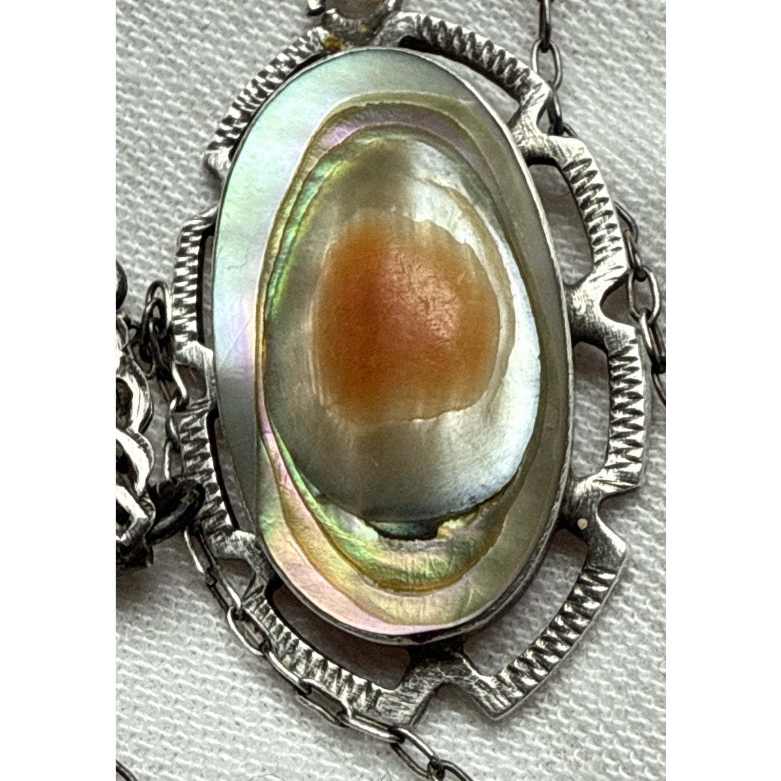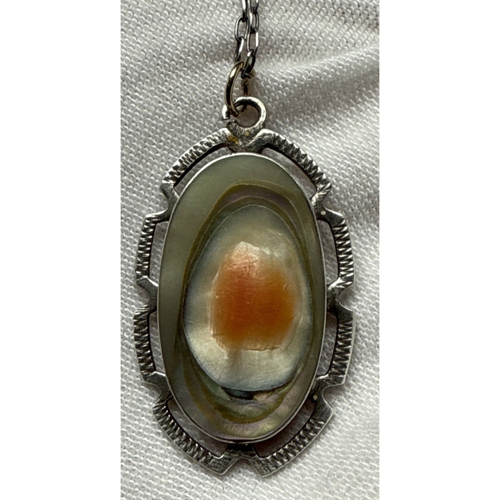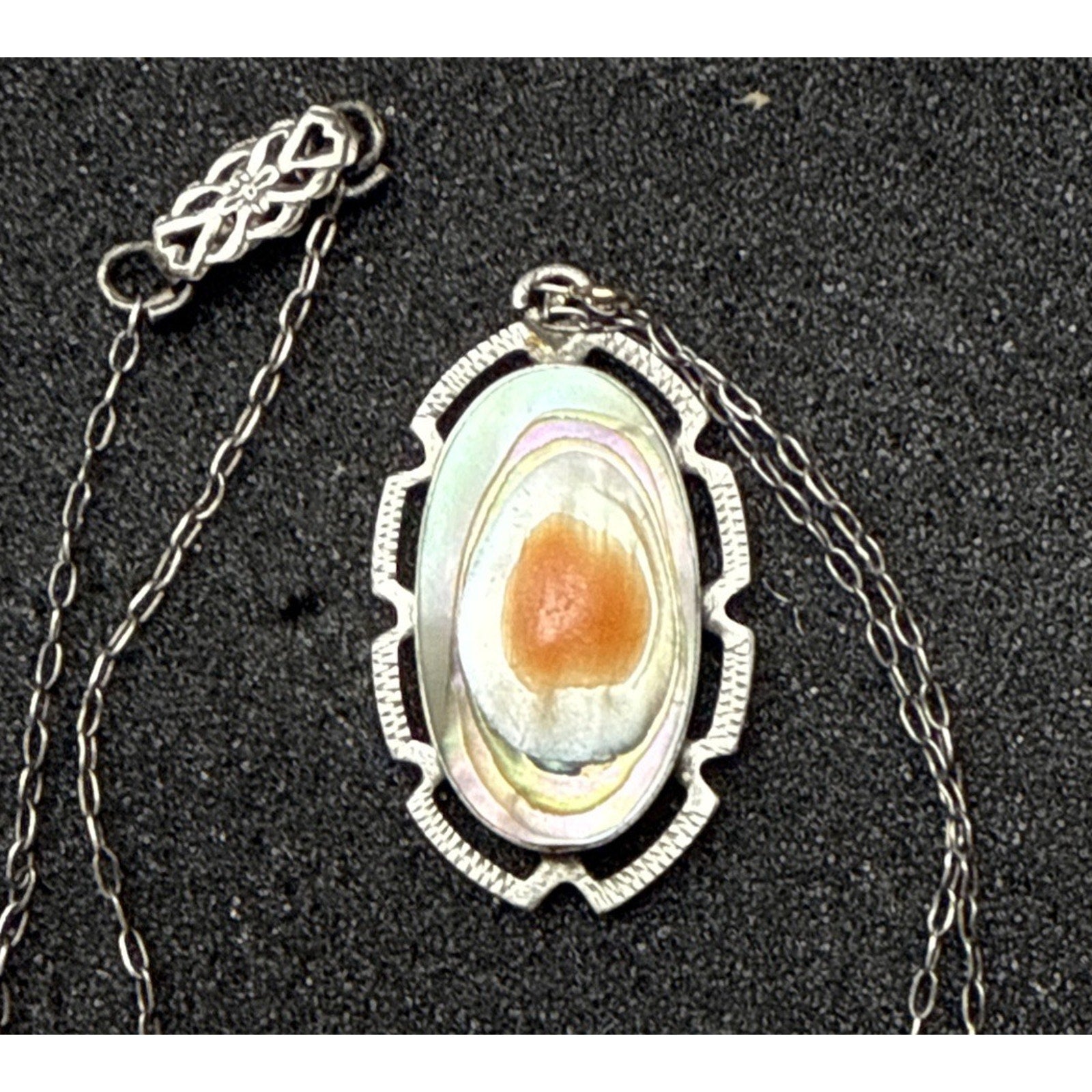 Art Deco Sterling Silver Abalone Blister Pearl Pendant Necklace Chain As Is