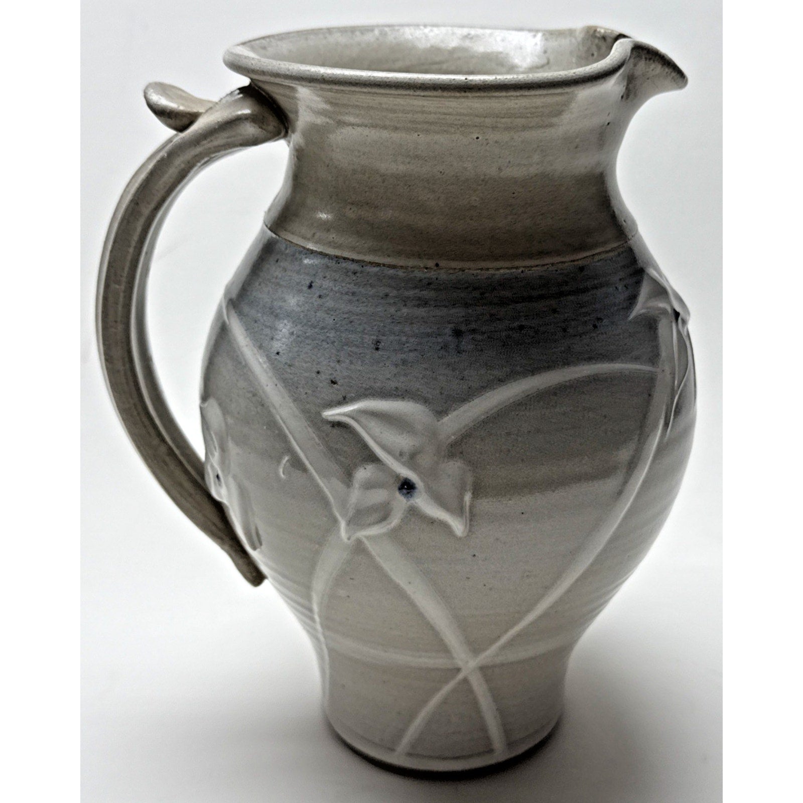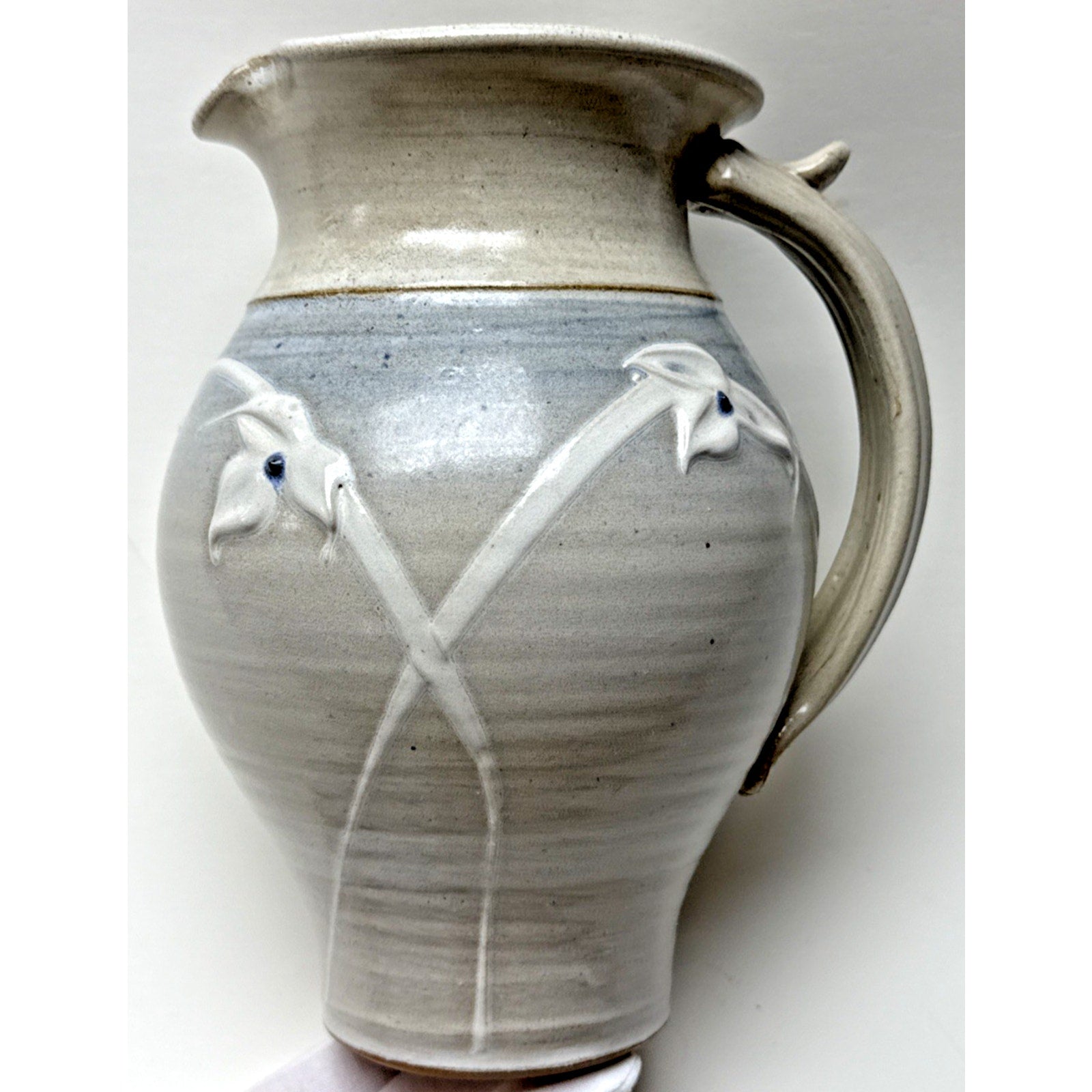 Noble Studio Art Pottery Pitcher Bowl Basin Trillium Blue White