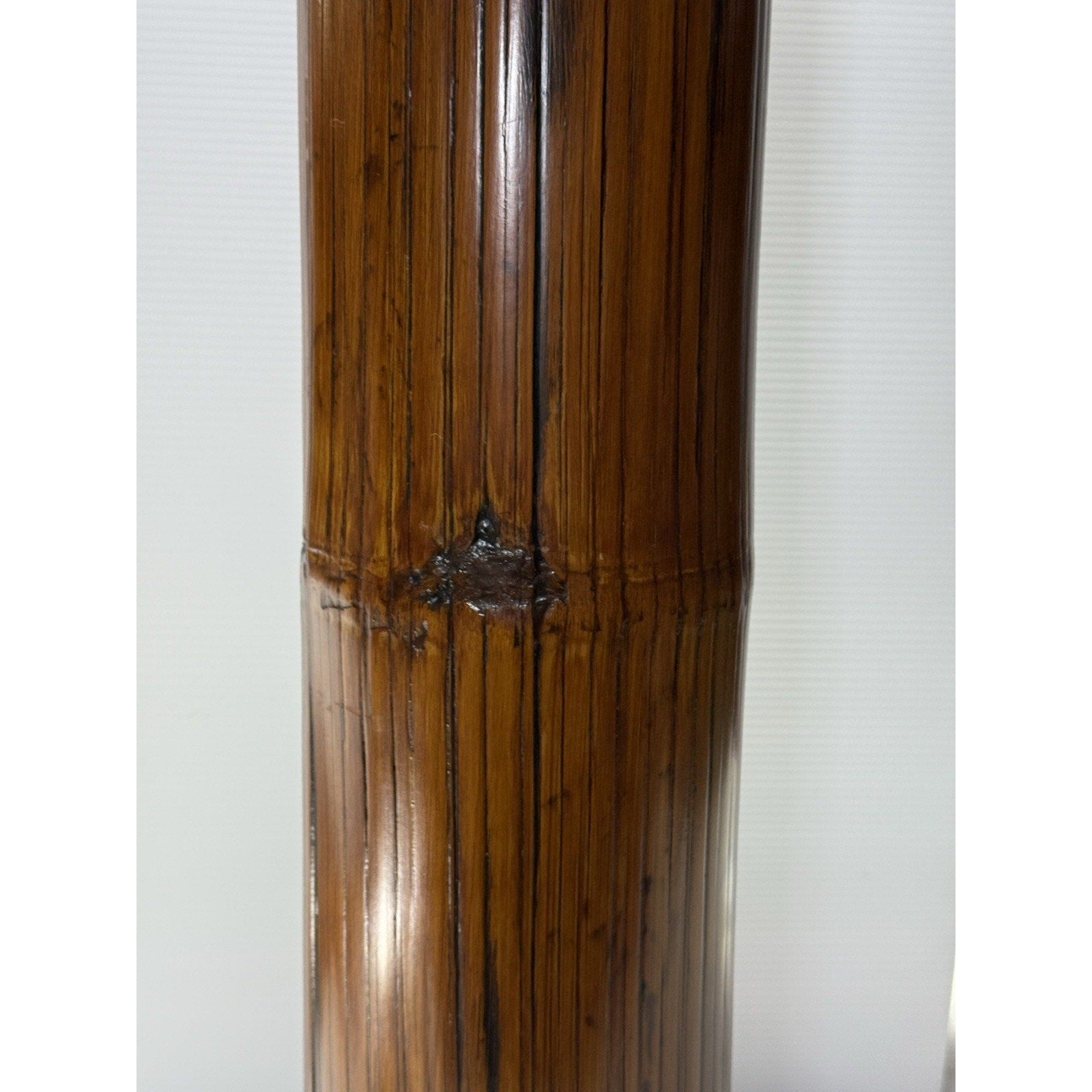 Old Japanese Bamboo Wood Vase Silvered Frog Grass Enameled Butterfly Large Read