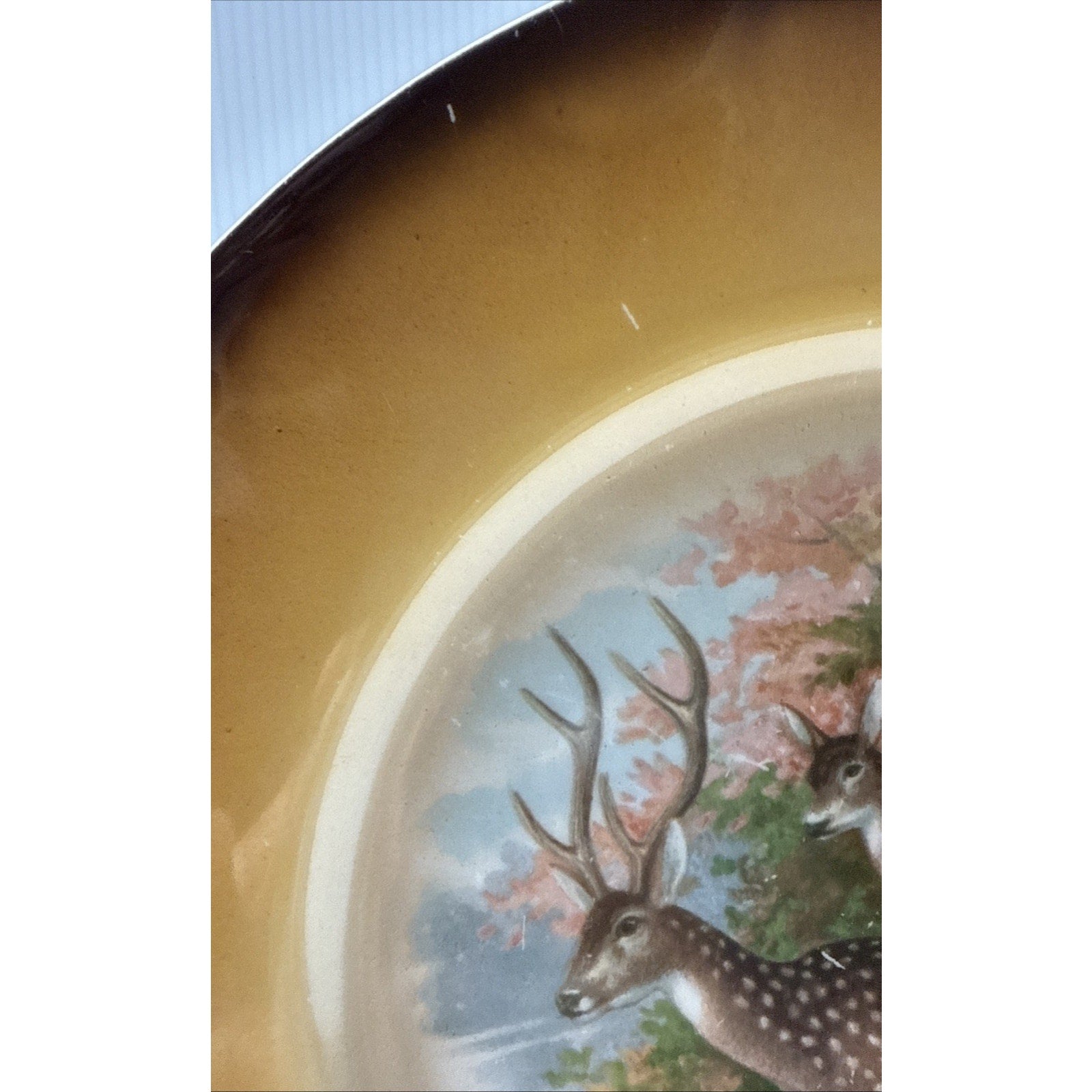 Old Latona Taylor Smith Taylor Hand Painted Plate Deer Rack Landscape Signed