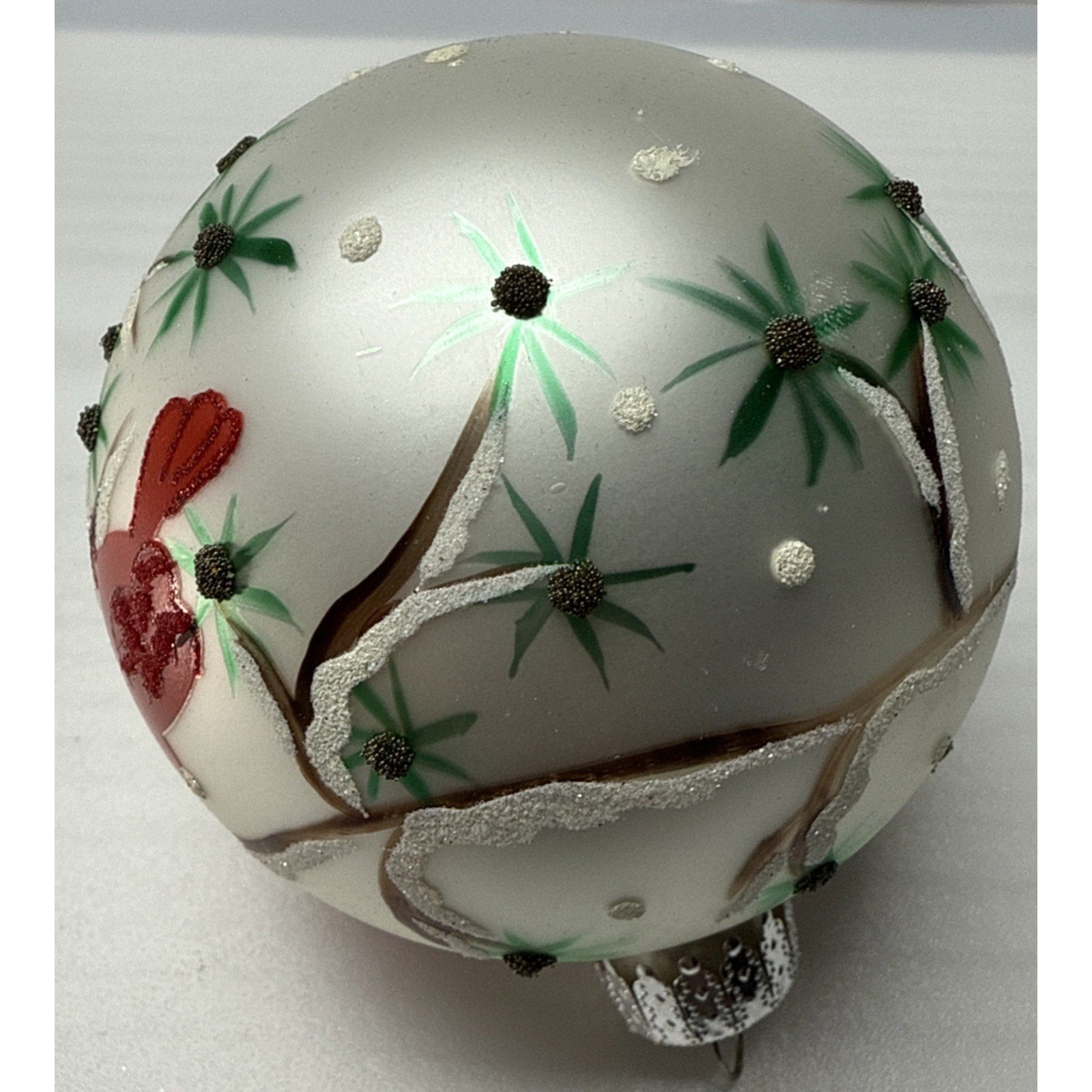 Sterling Inc Blown Mercury Glass Hand Painted Christmas Ornament Cardinals Box