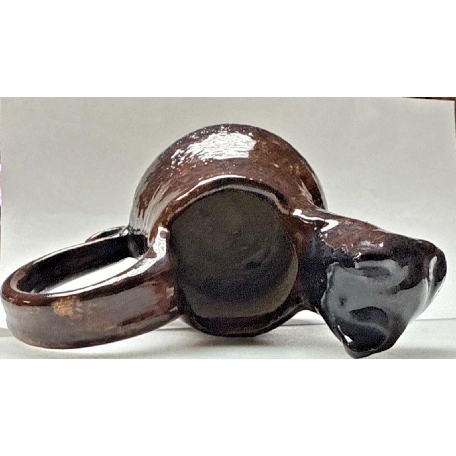 Studio Art Pottery Zoomorphic Clay Glazed Pitcher Mug Handle Signed Mug Spooner