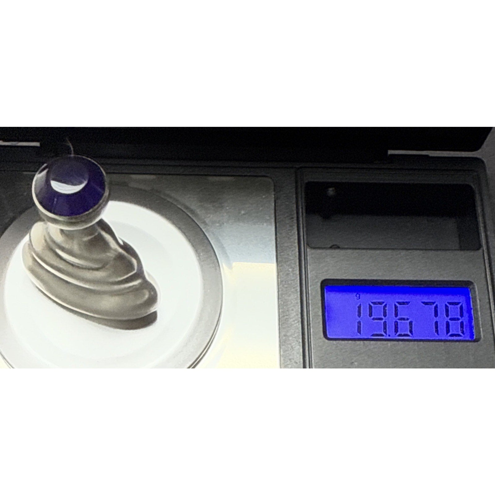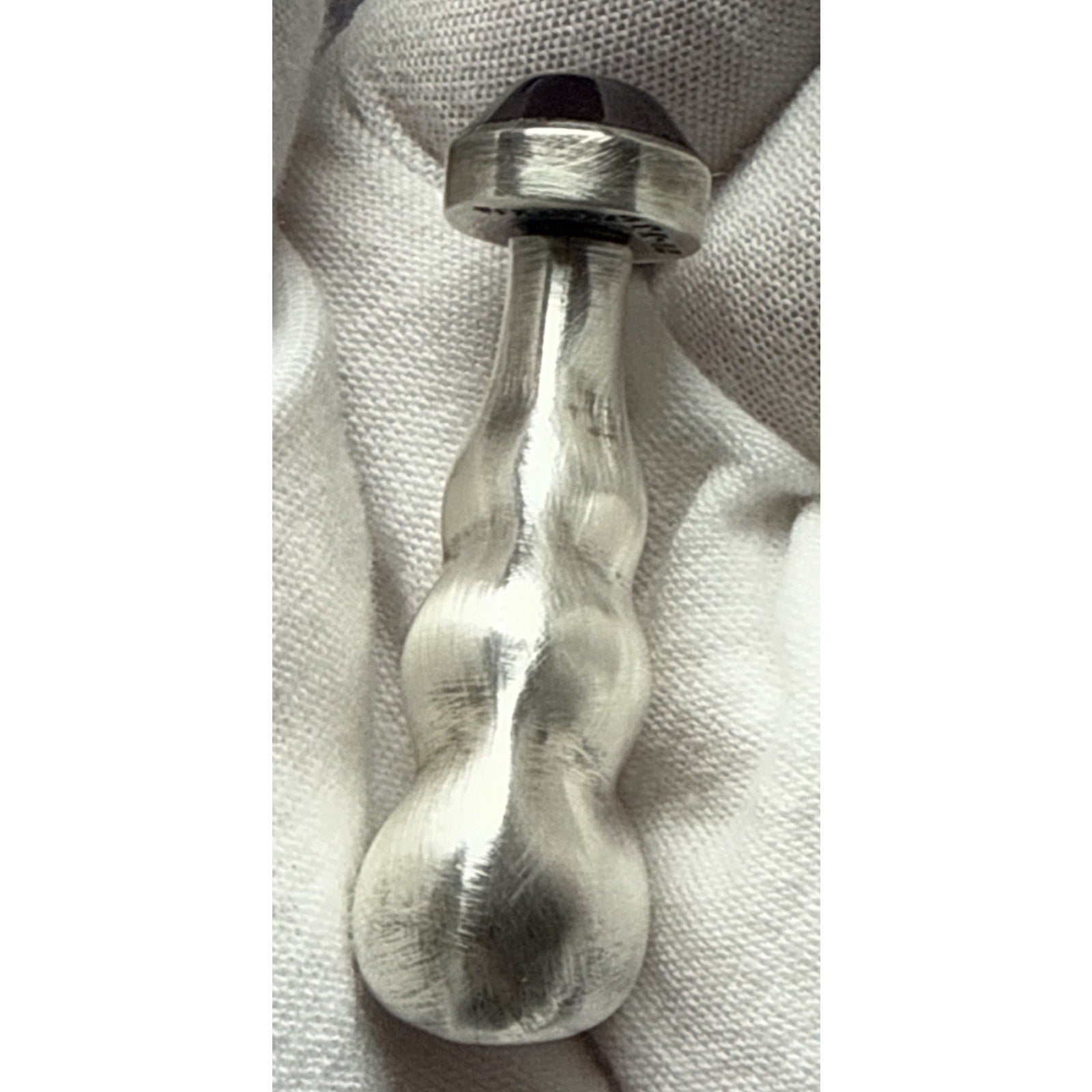 Stunning piece is in pretty good condition. I am unsure if the stone on top is glass. The stone has rough spots and/or small chips along the outside rim. There is minor wear and discolorations to the sterling. It may require additional cleaning. I cannot get the lid off the top of the bottle. The item weighs approx 1.97 grams.