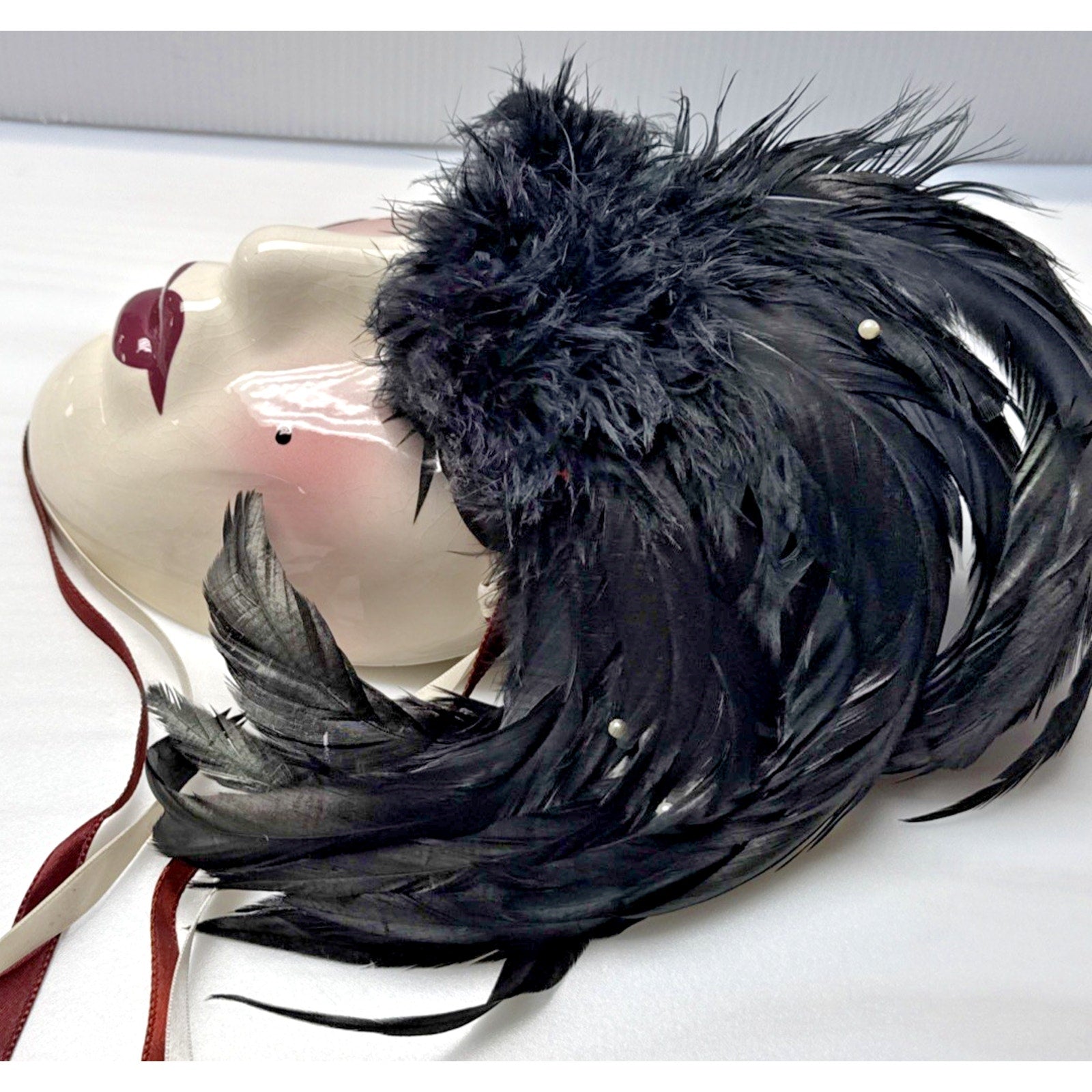 Unique Creations Ceramic Glazed Mask Feathers Pearl Signed Sticker 318/500 As-Is