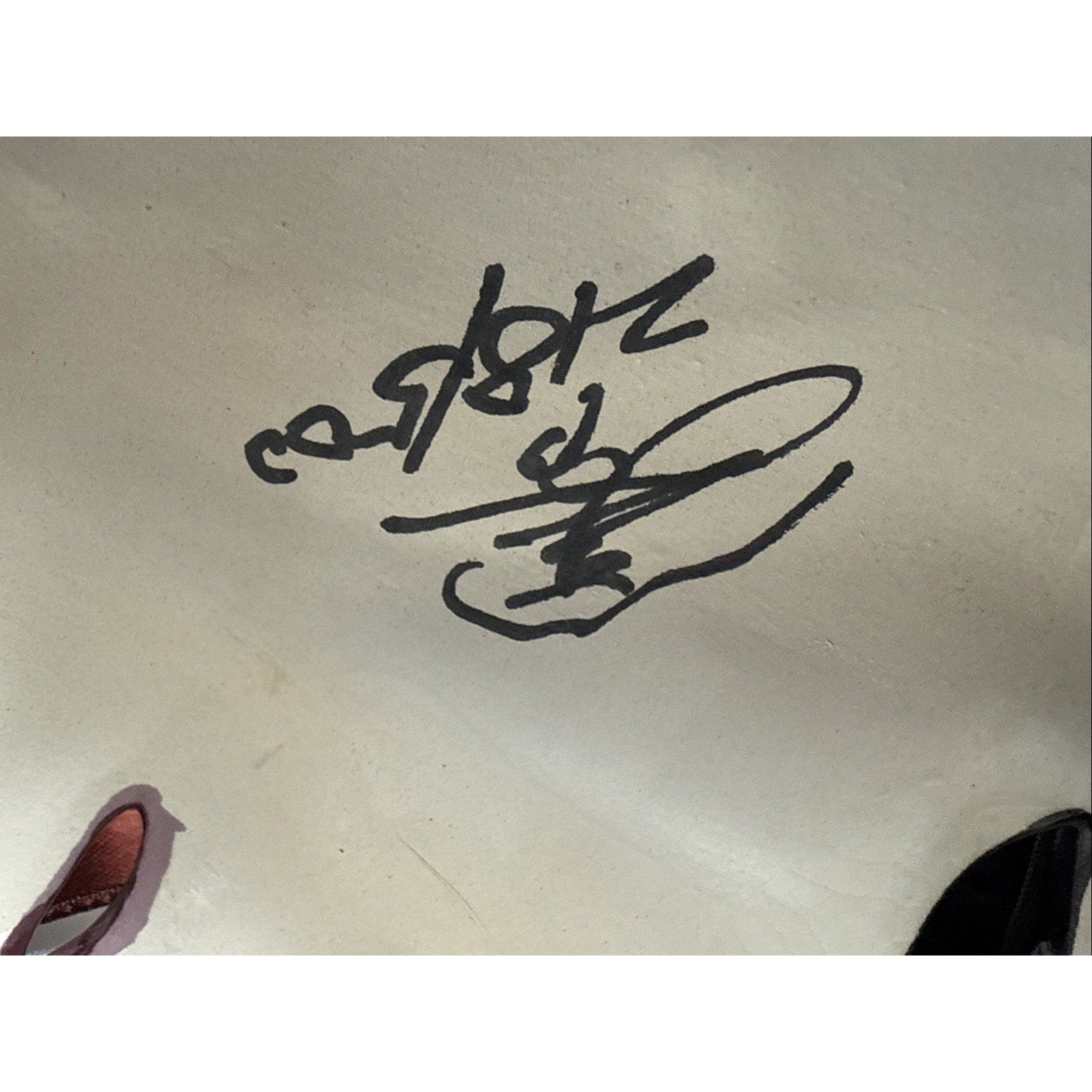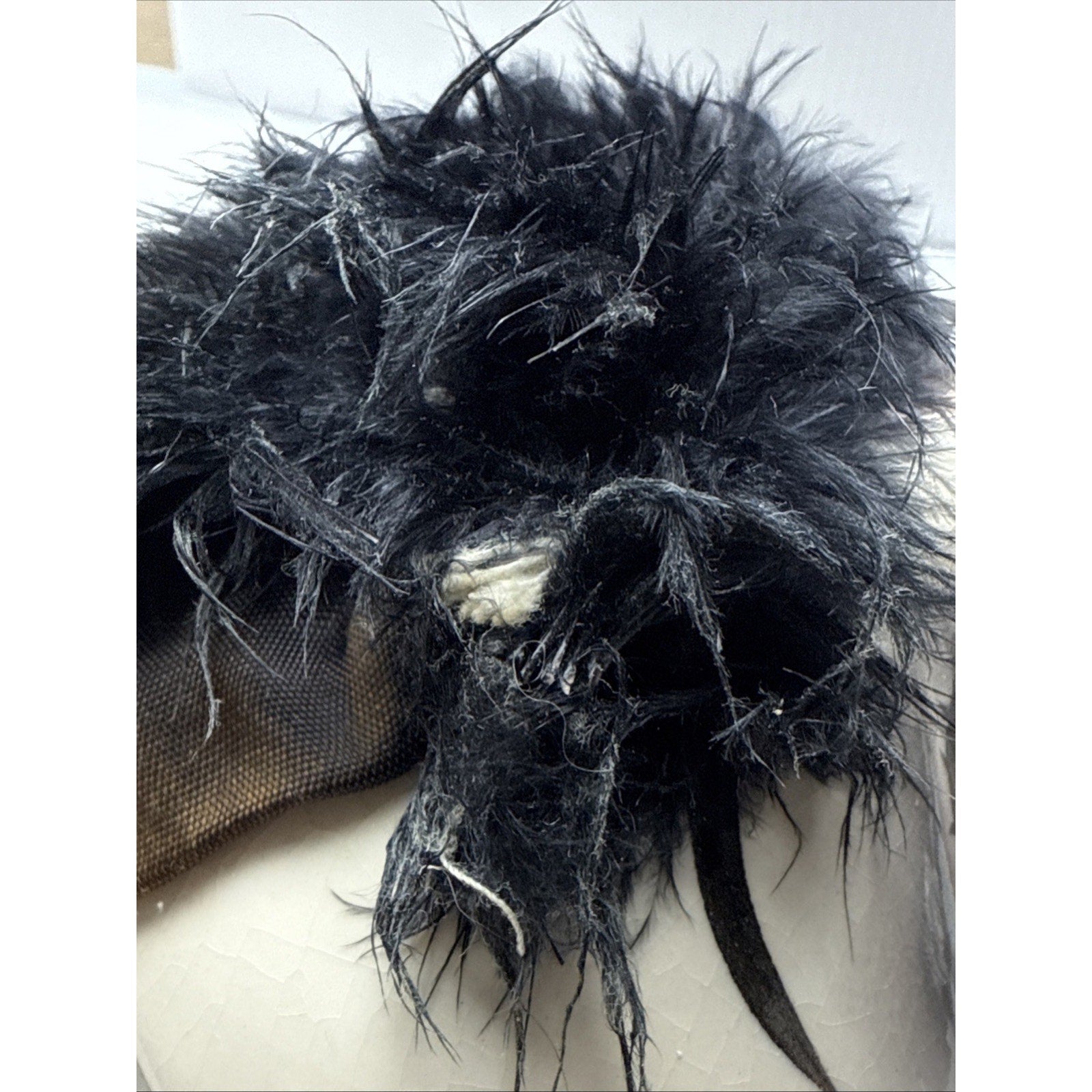 Stunning piece has the original sticker along with signature and numbered. It is beautiful yet worn. There are some discolorations to the glaze along with crazing. There are also discolorations and wear the material and feathers. The item will require additional cleaning. The ribbons are discolored. The rims of the mask has scuffs and scratches. The feathers are dusty and discolored.