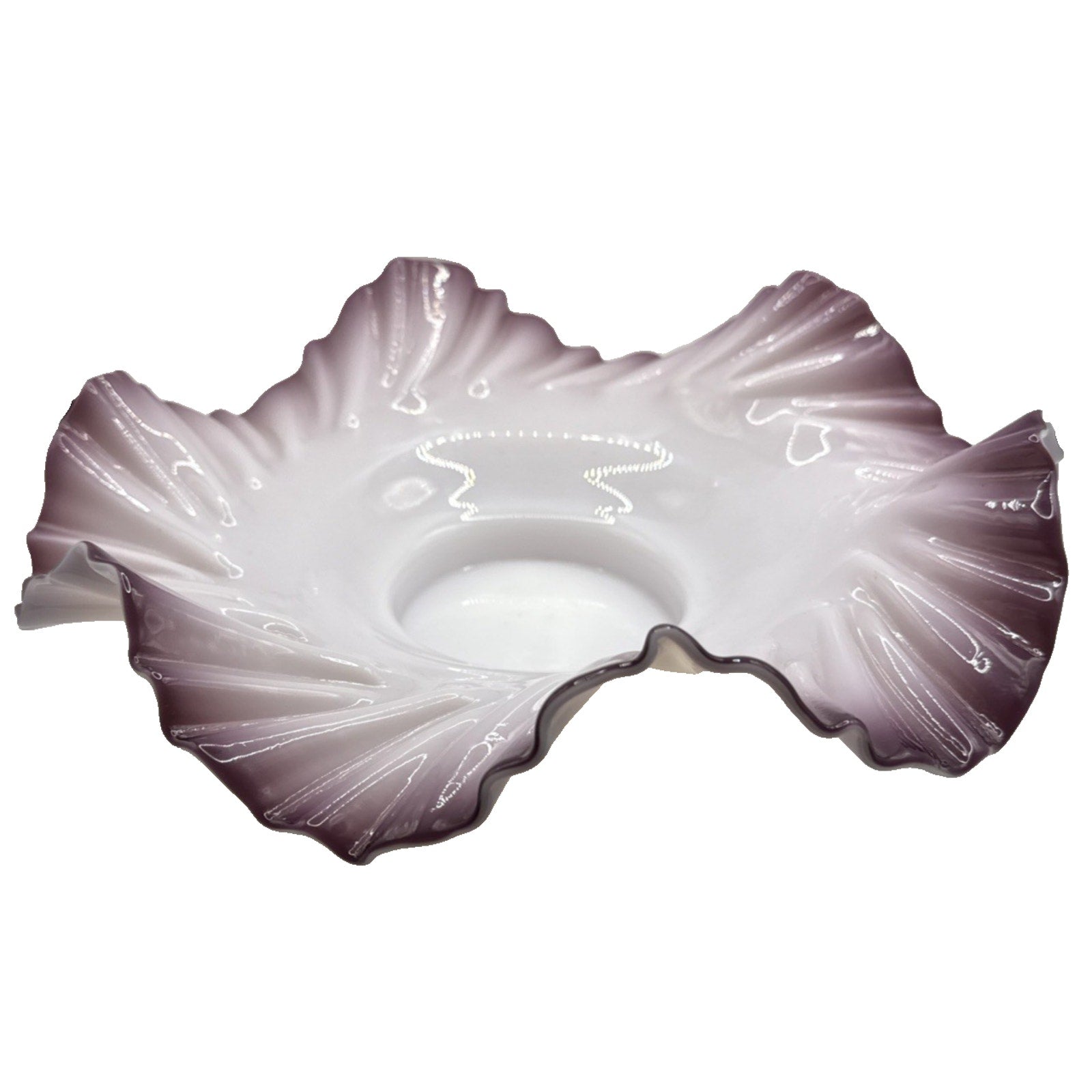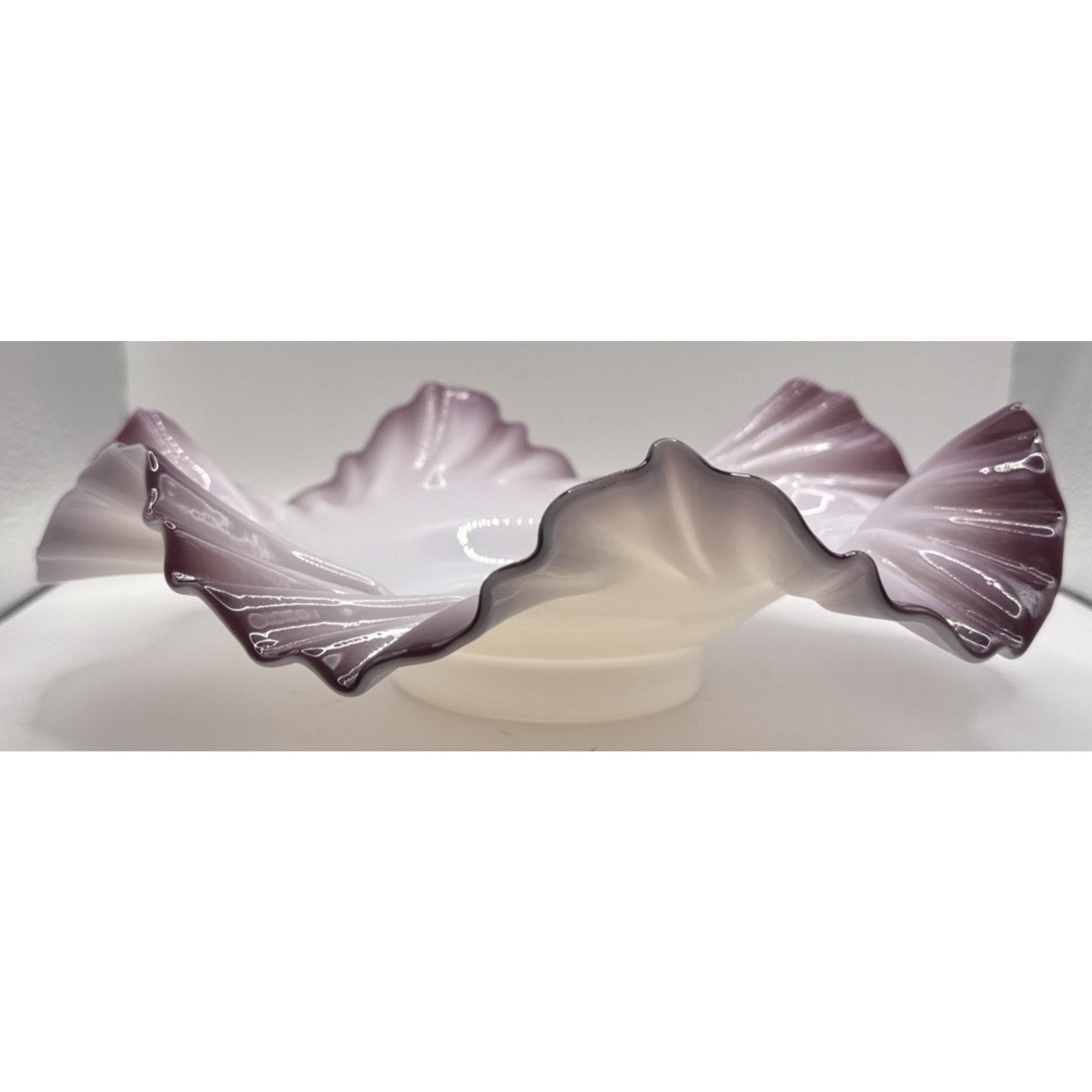 Victorian Brides Basket Bowl Purple Ruffled Wavy Rim Opalescent Glass