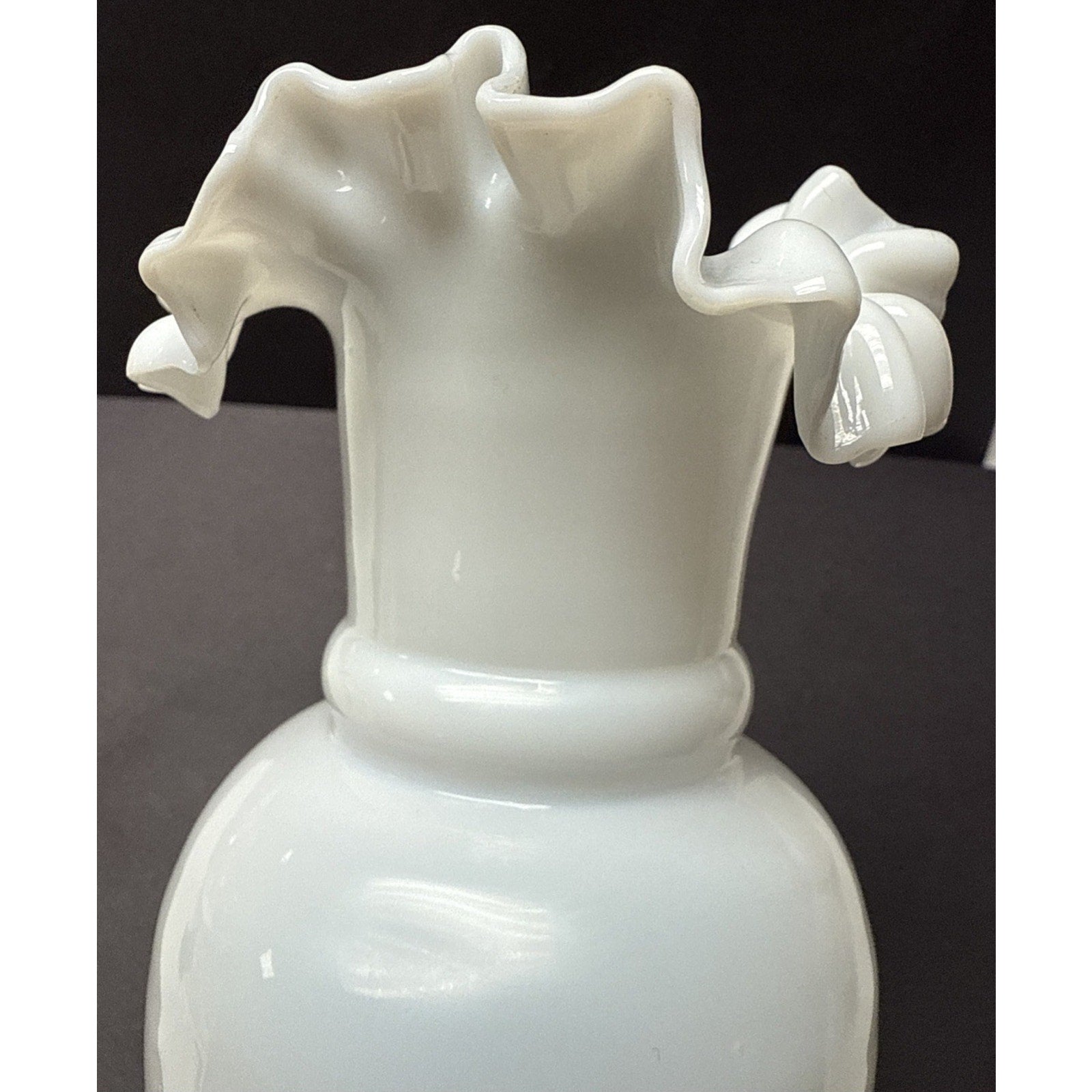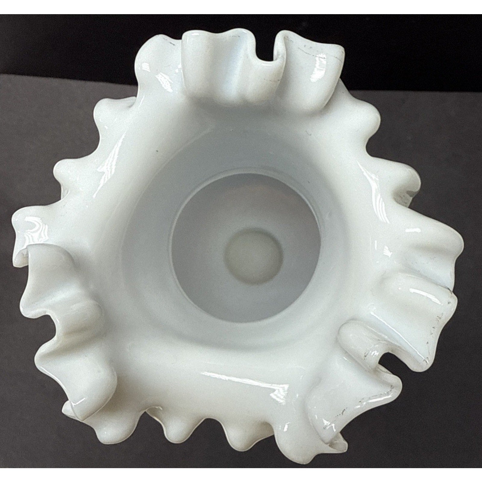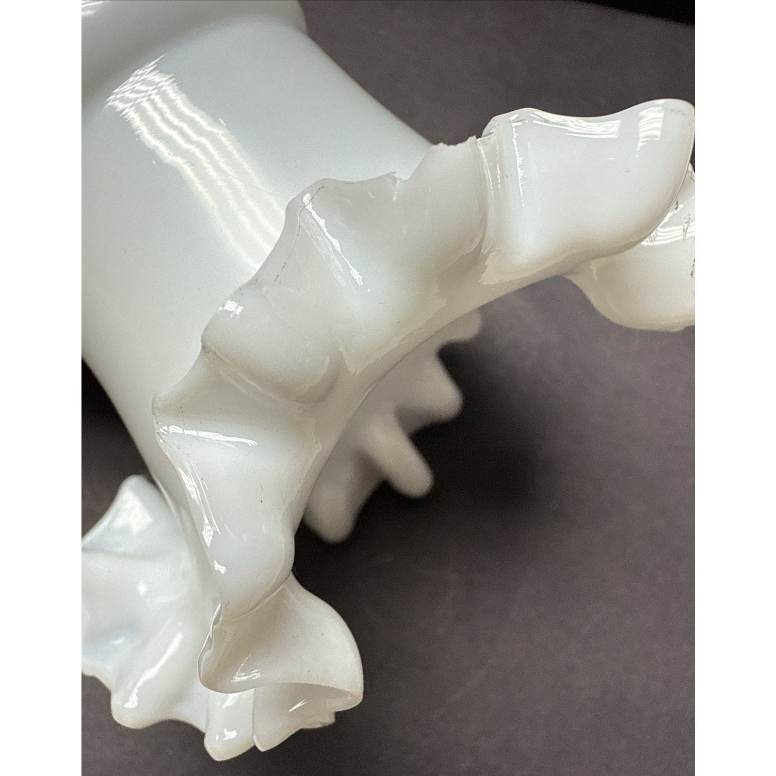 The white victorian vase also has chips along the crimped rim. These are visible. There are also visible lines along the crimped rim that most likely from manufacturing.