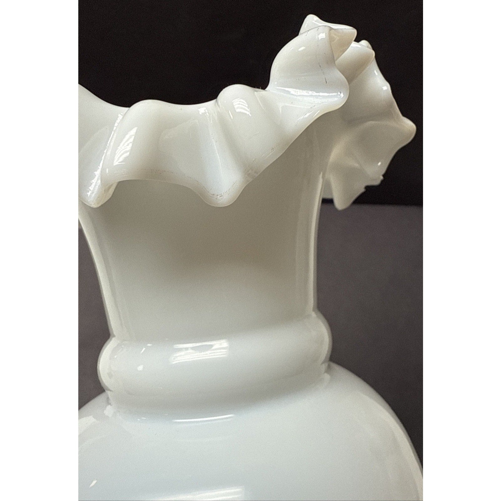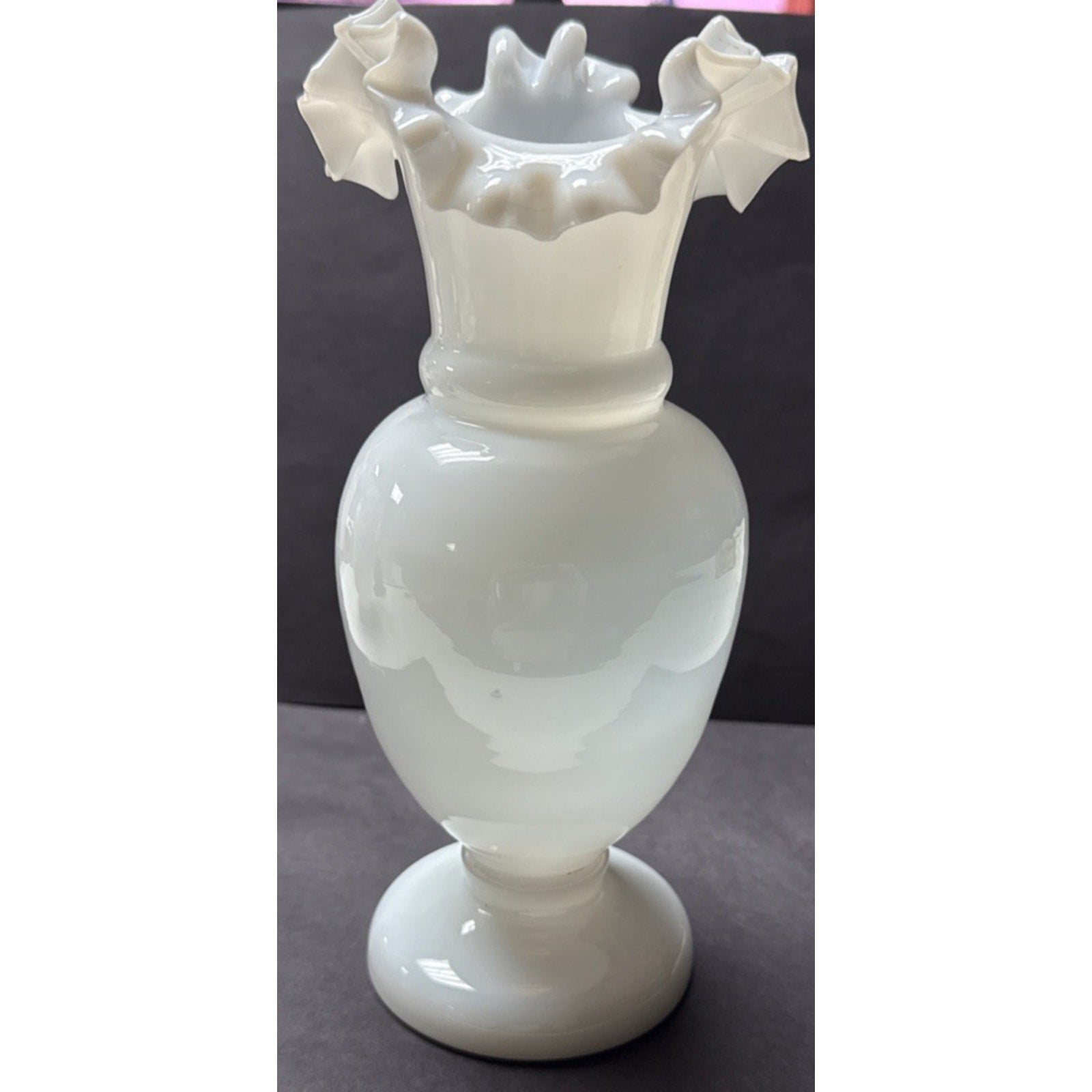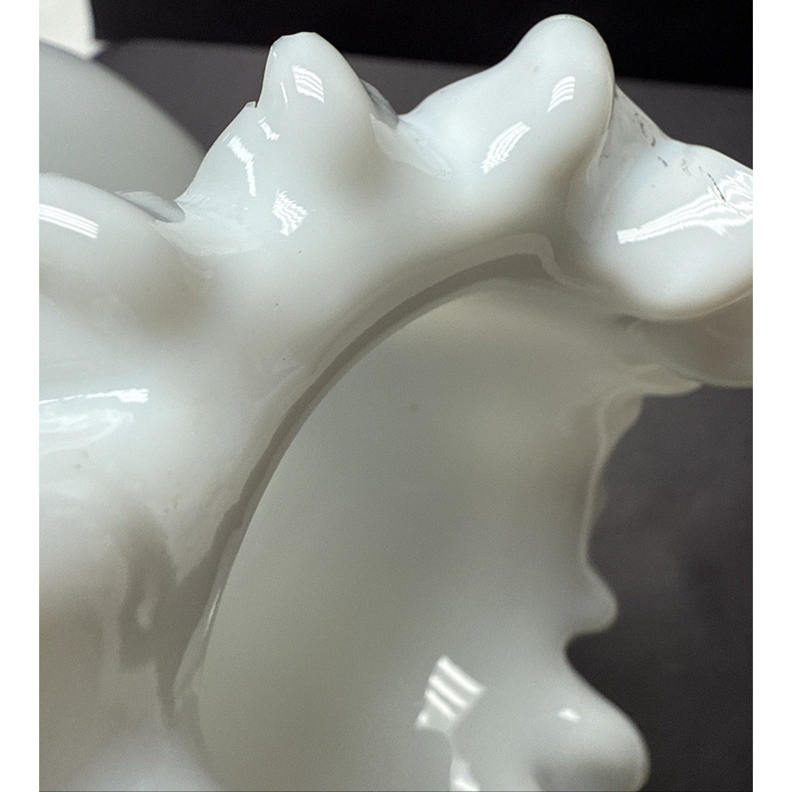 The white victorian vase also has chips along the crimped rim. These are visible. There are also visible lines along the crimped rim that most likely from manufacturing.