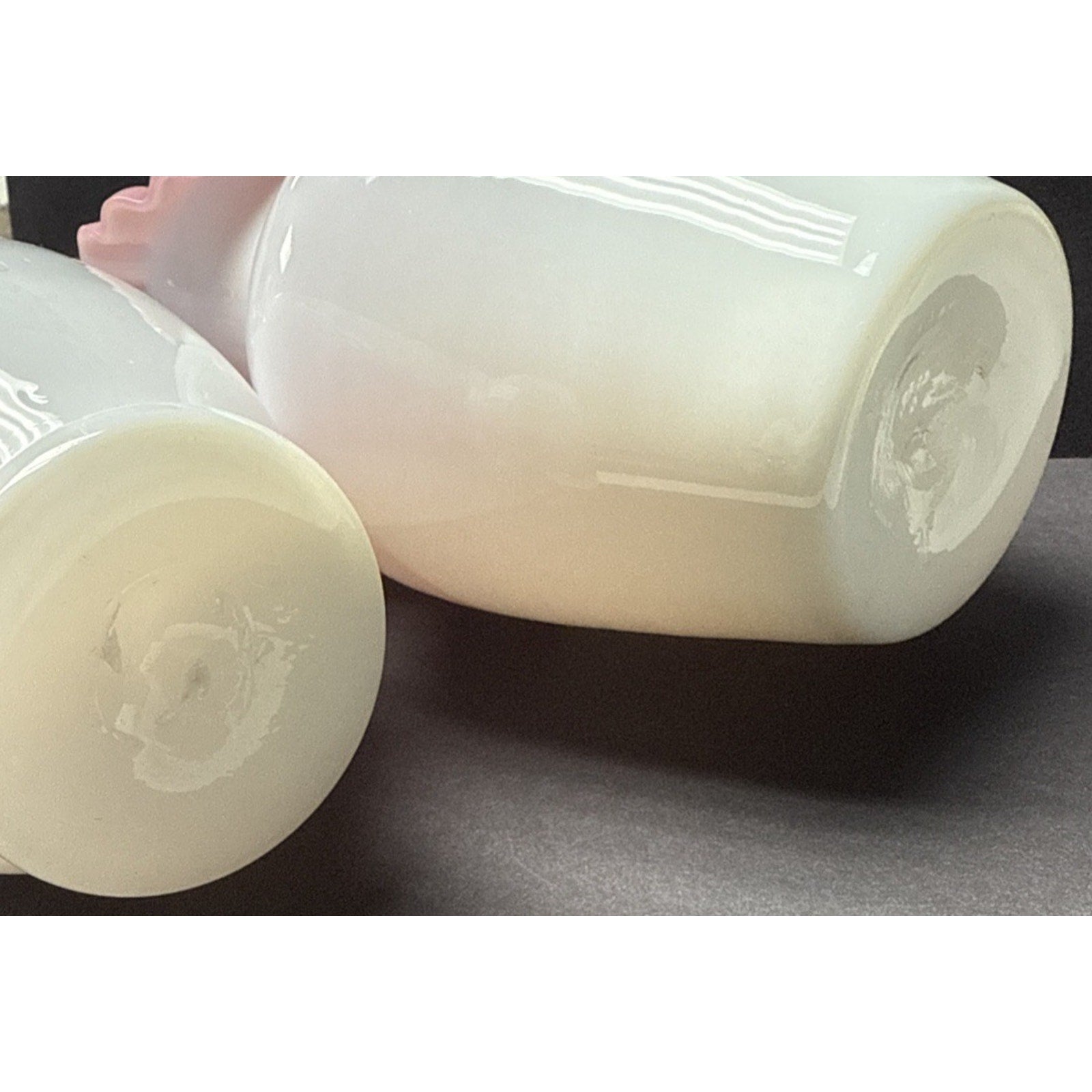 Victorian Lot of 3 Peachblow Glass Crimped Rim Pink White Vases As-Is
