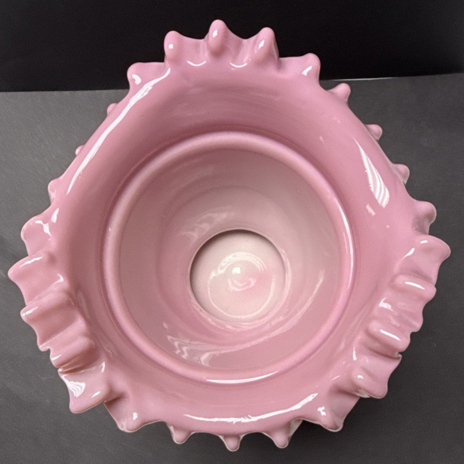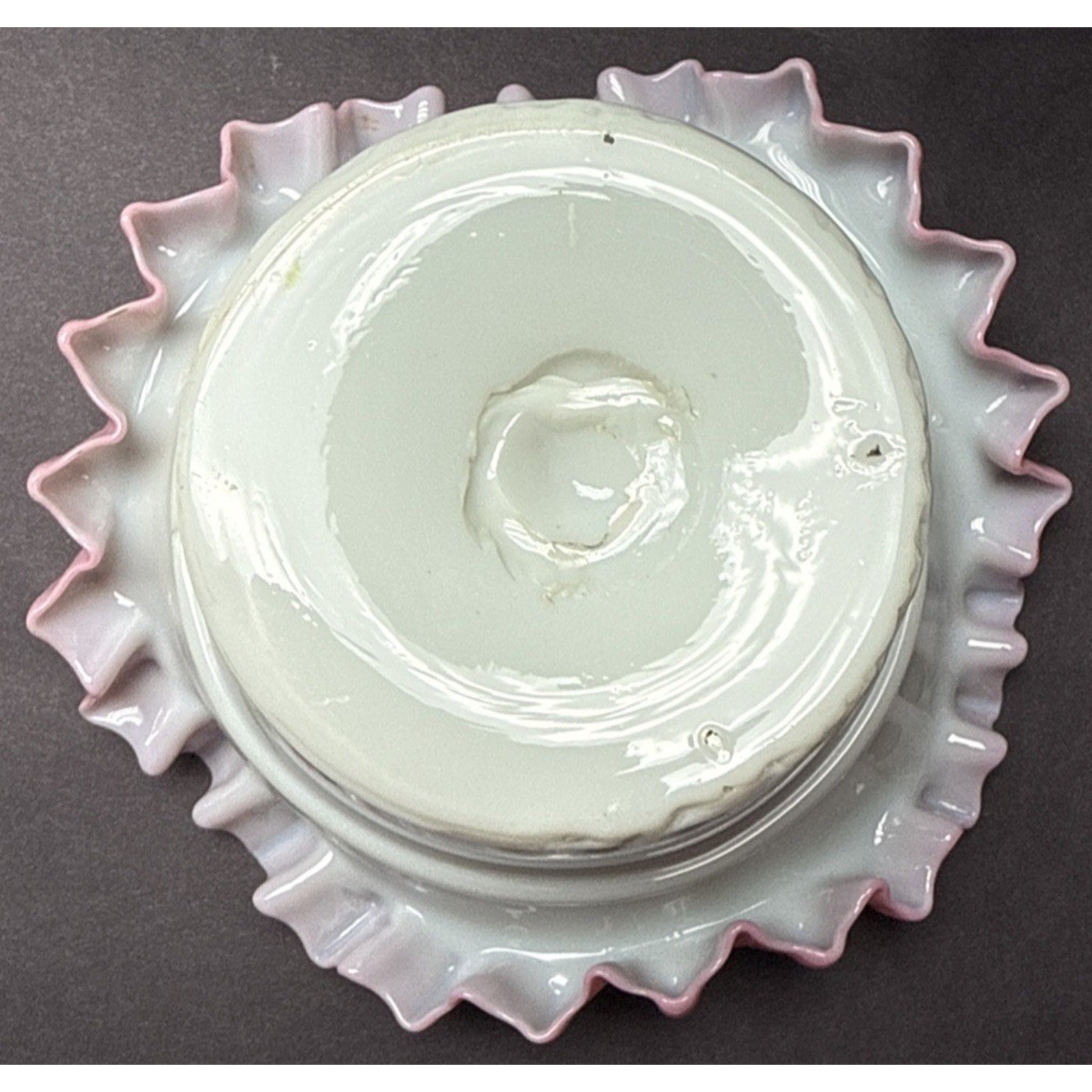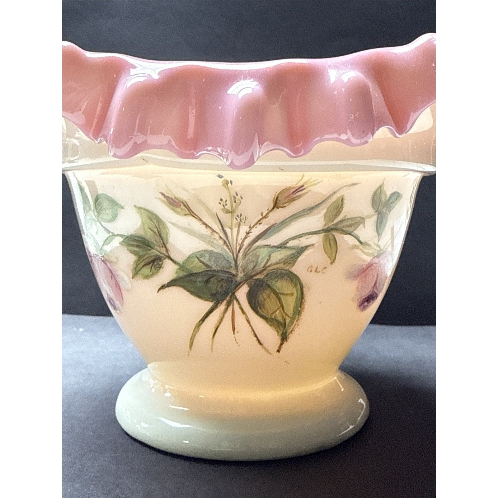 Victorian Peach Blow Vase Bowl Crimped Edge Enameled Floral Footed Signed As-Is