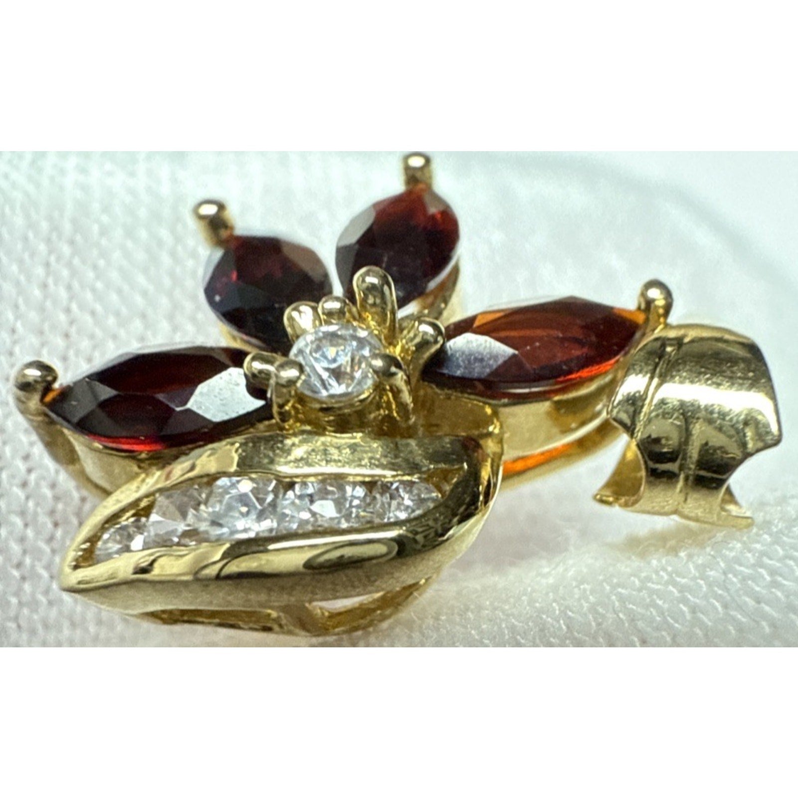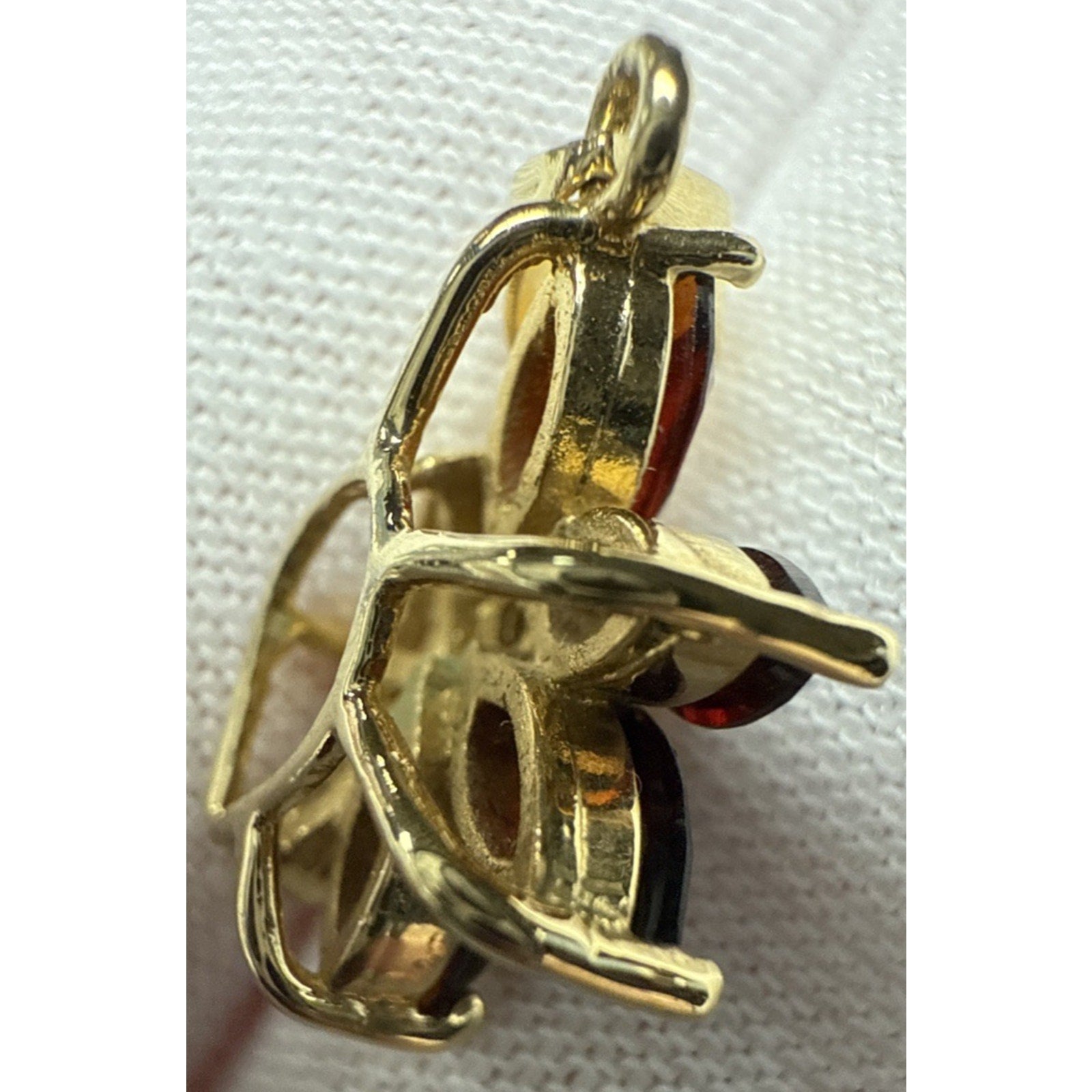 Vintage 10k Gold Plated Flower Cluster Pendant Charm Ruby Garnet Crystal As-Is