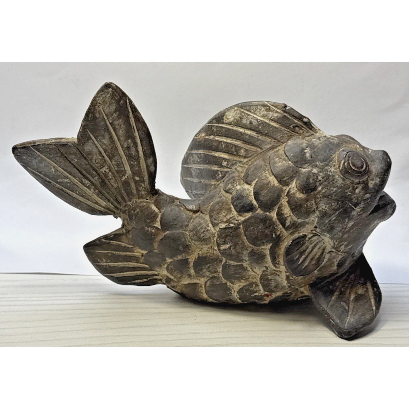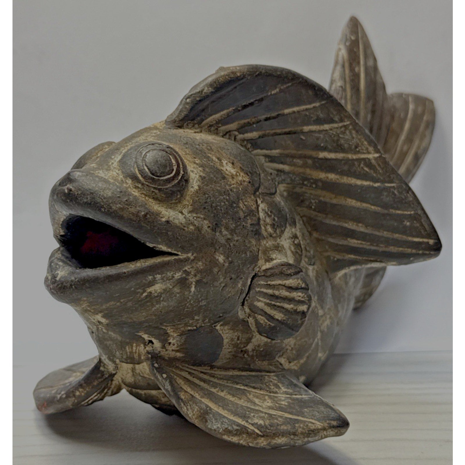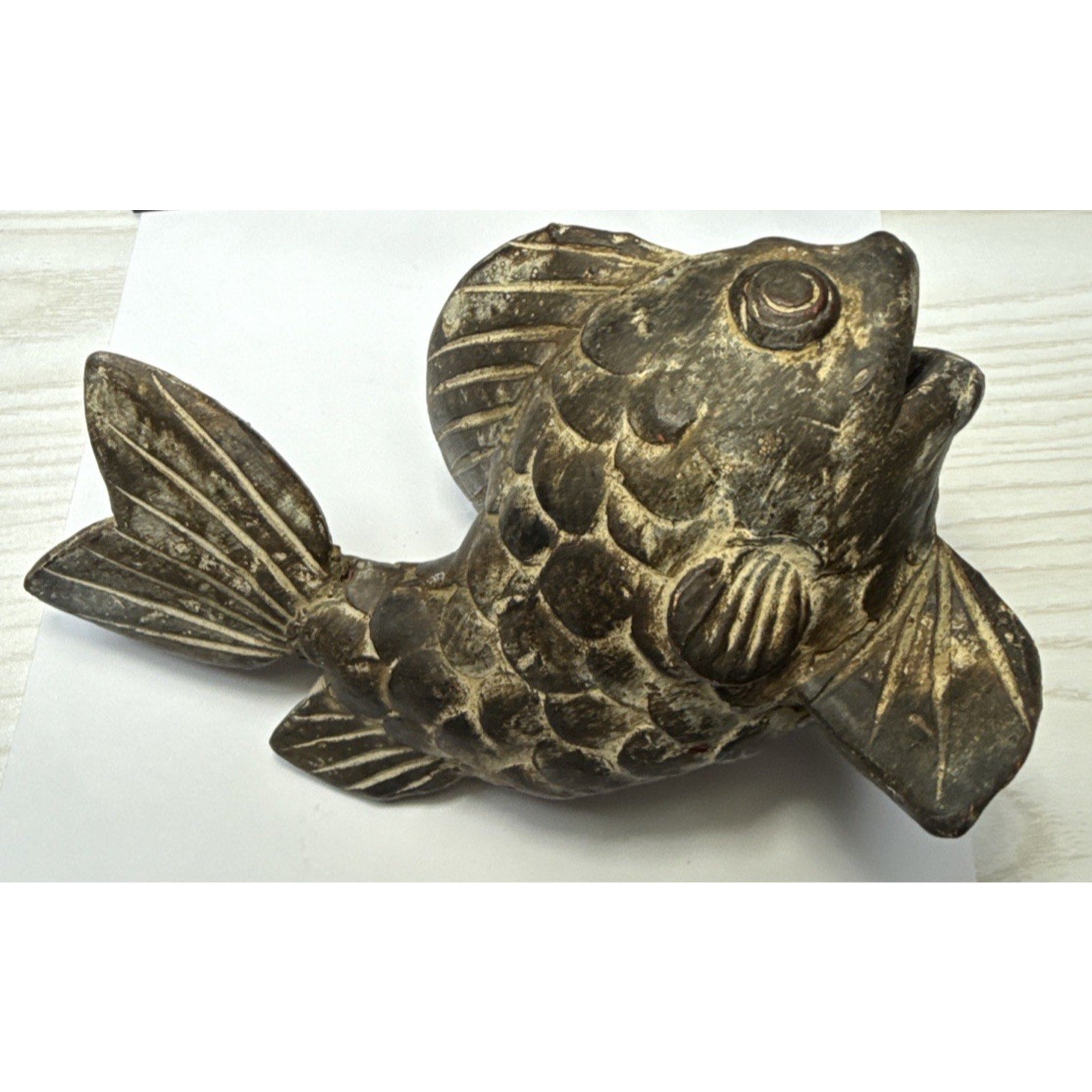 Vintage Asian Inspired Terra Cotta Clay Koi Carp Fish Sculpture Vase As Is