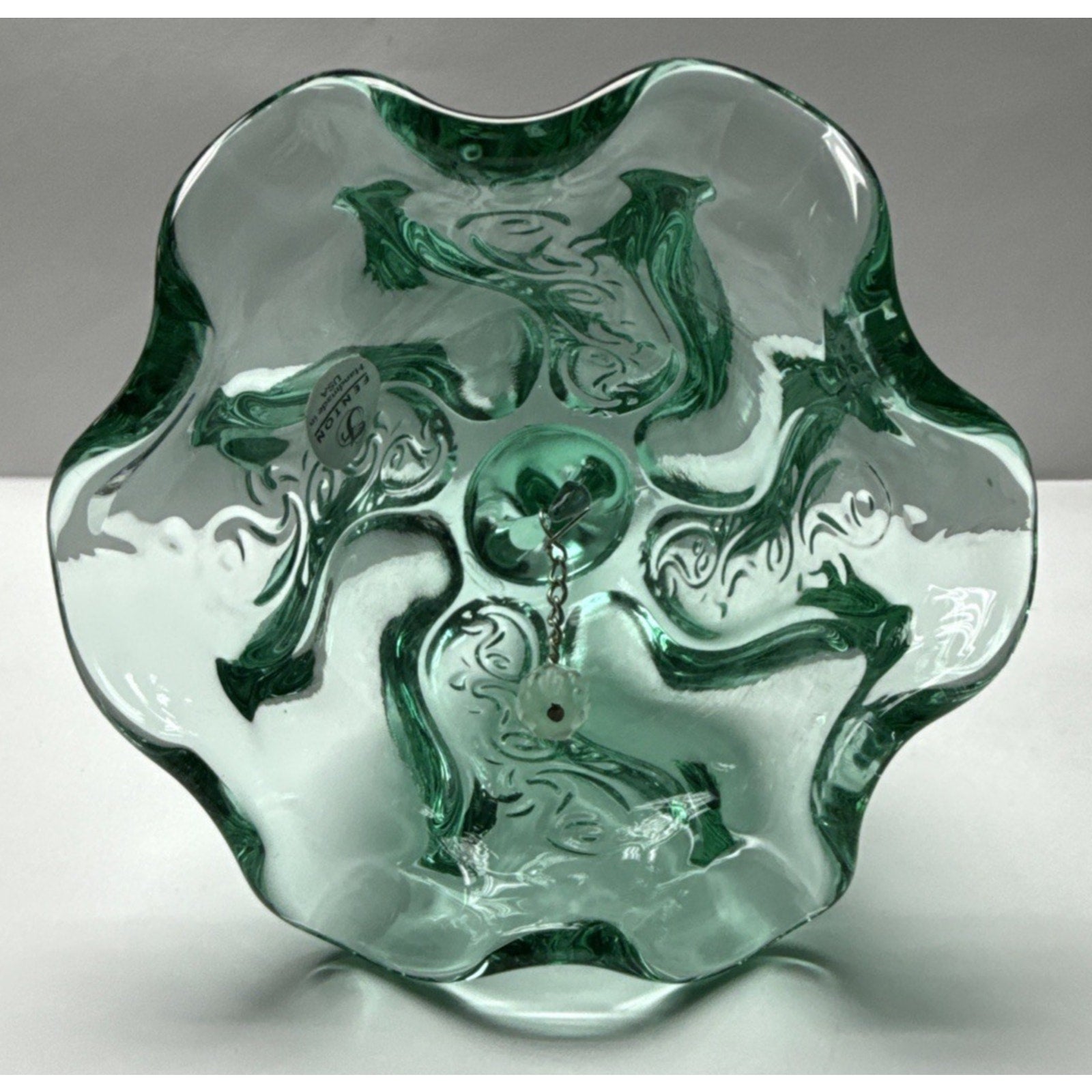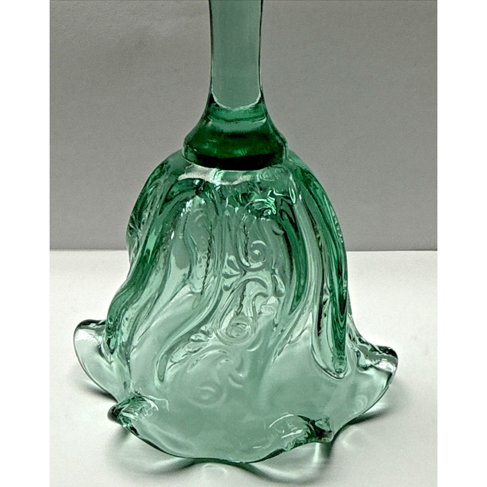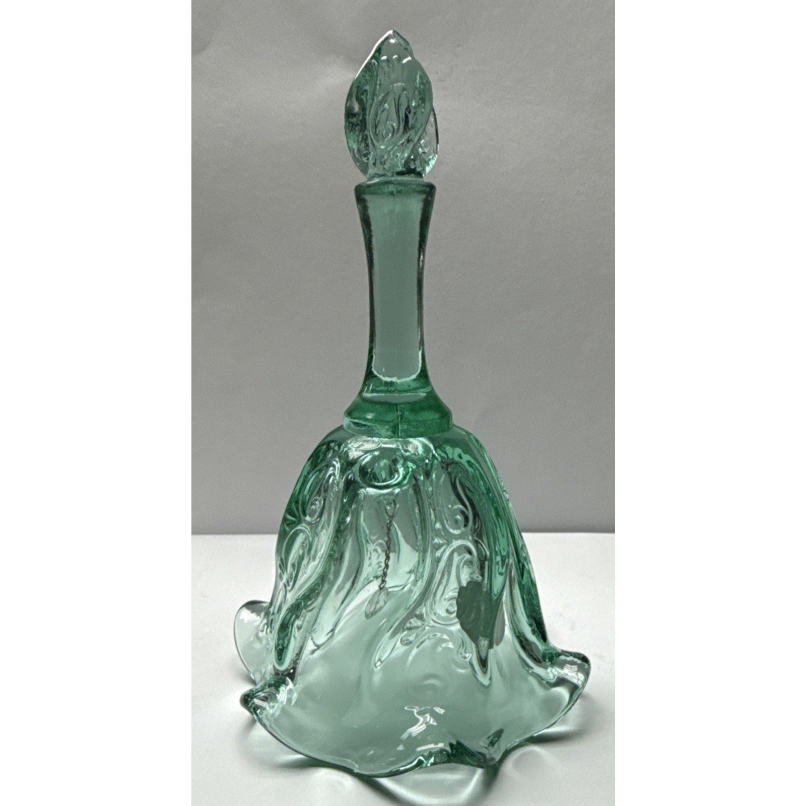 Vintage Fenton Glass Bell Sea Mist Green Pacific Swirl Ruffled Edge As Is