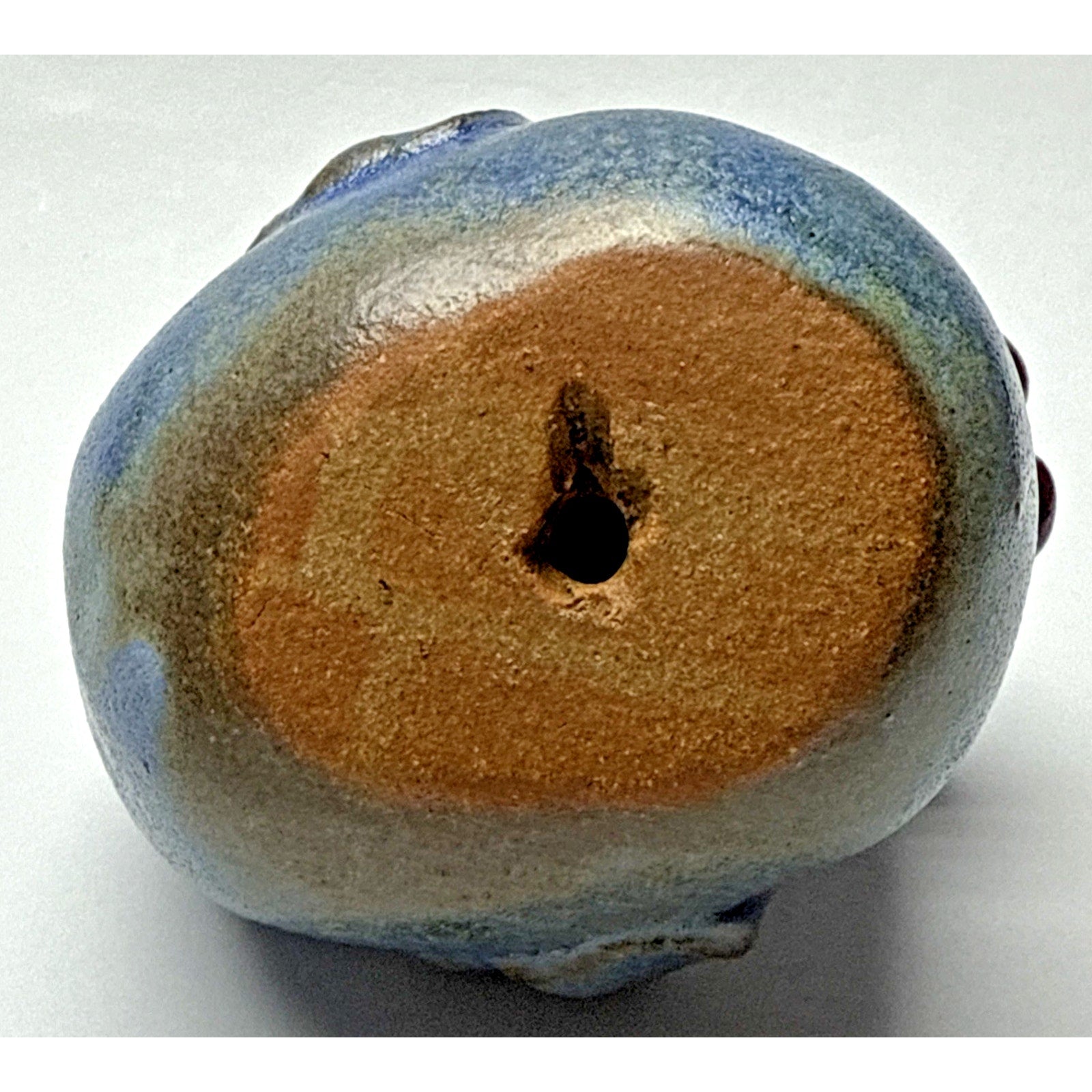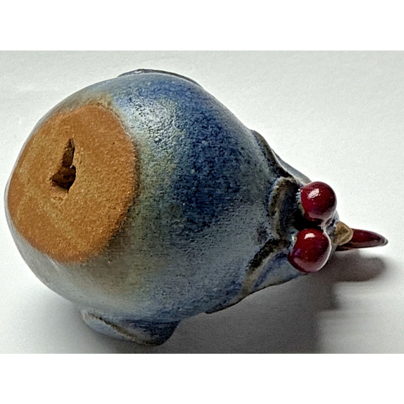Vintage Folk Art Stoneware Hen Rooster Chicken Figurine Blue Red Glazed