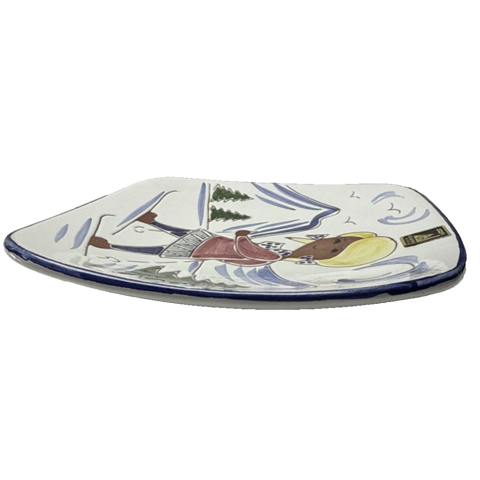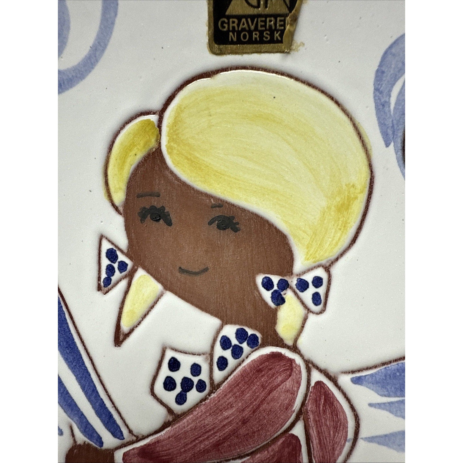 Vintage Graverens Norway Folk Art Pottery Plate Winter Skiing Girl 787 SD As-Is