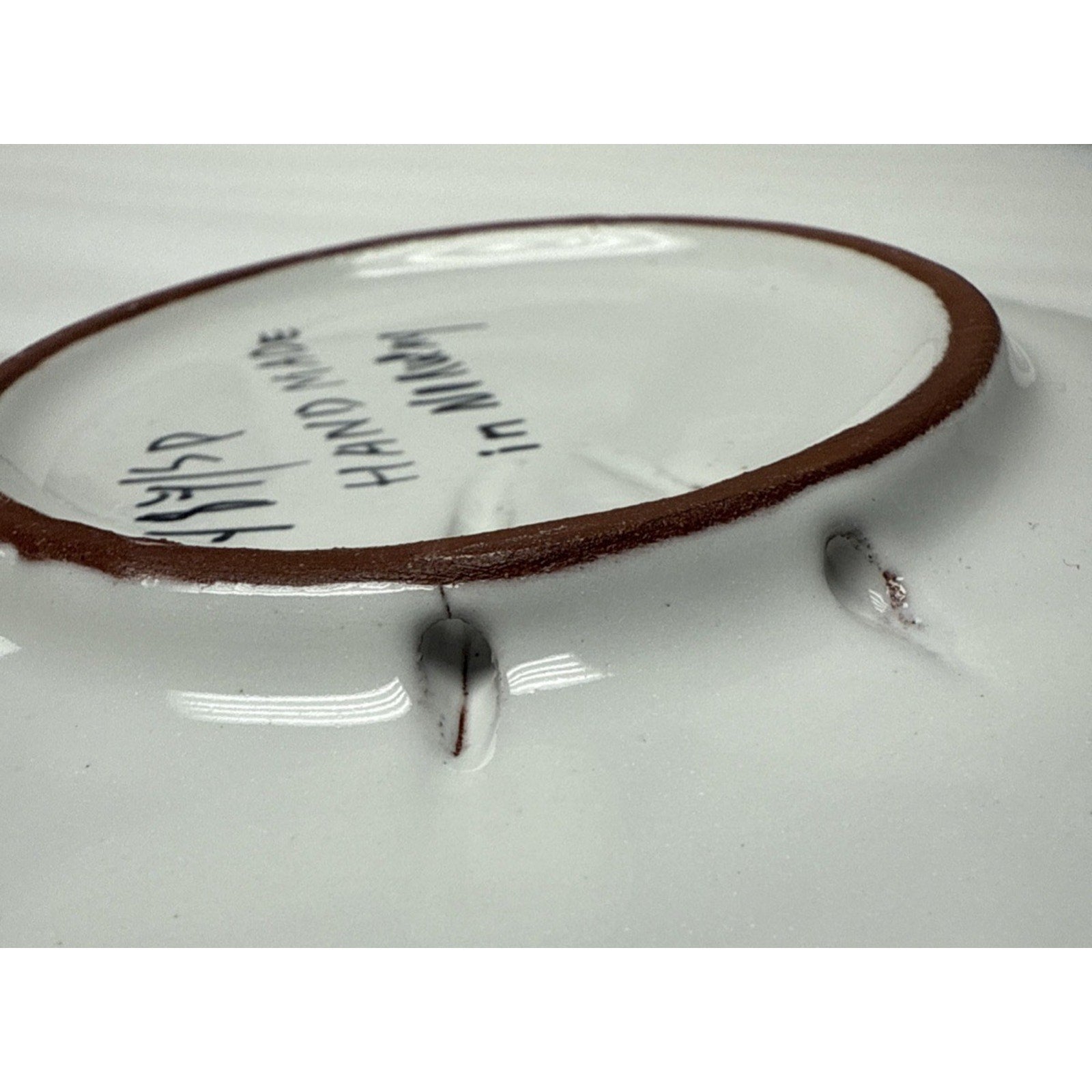 Stunning piece. There is minor wear to the plate such as scuffs, scratches, and discolorations. There are flea bites to the finish. There is a crack on the backside hanger. I believe it is cosmetic.