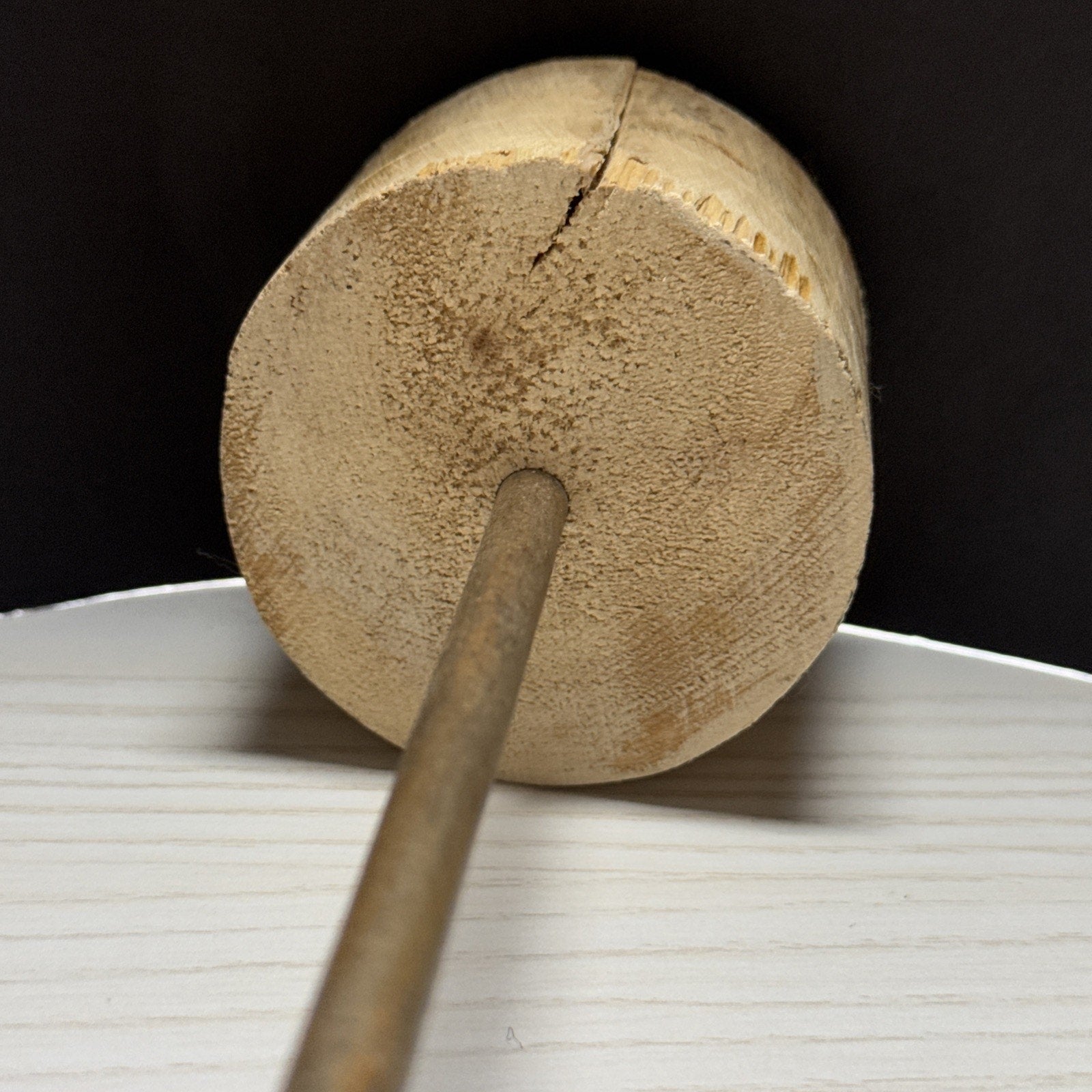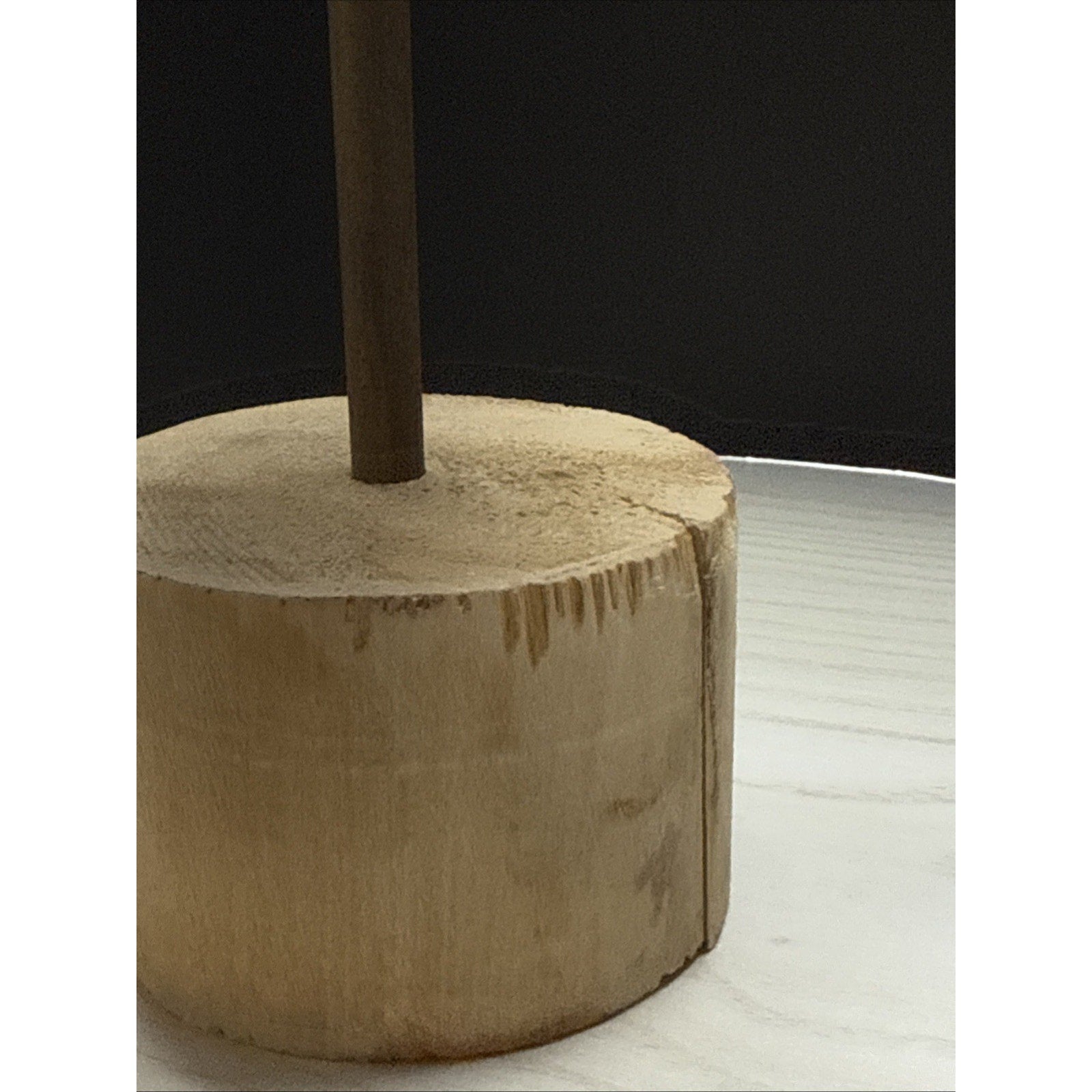 The base is discolored and cracked. It appears to have water stains as well. There is also scuffs, scratches, discolorations to the painted bird.
