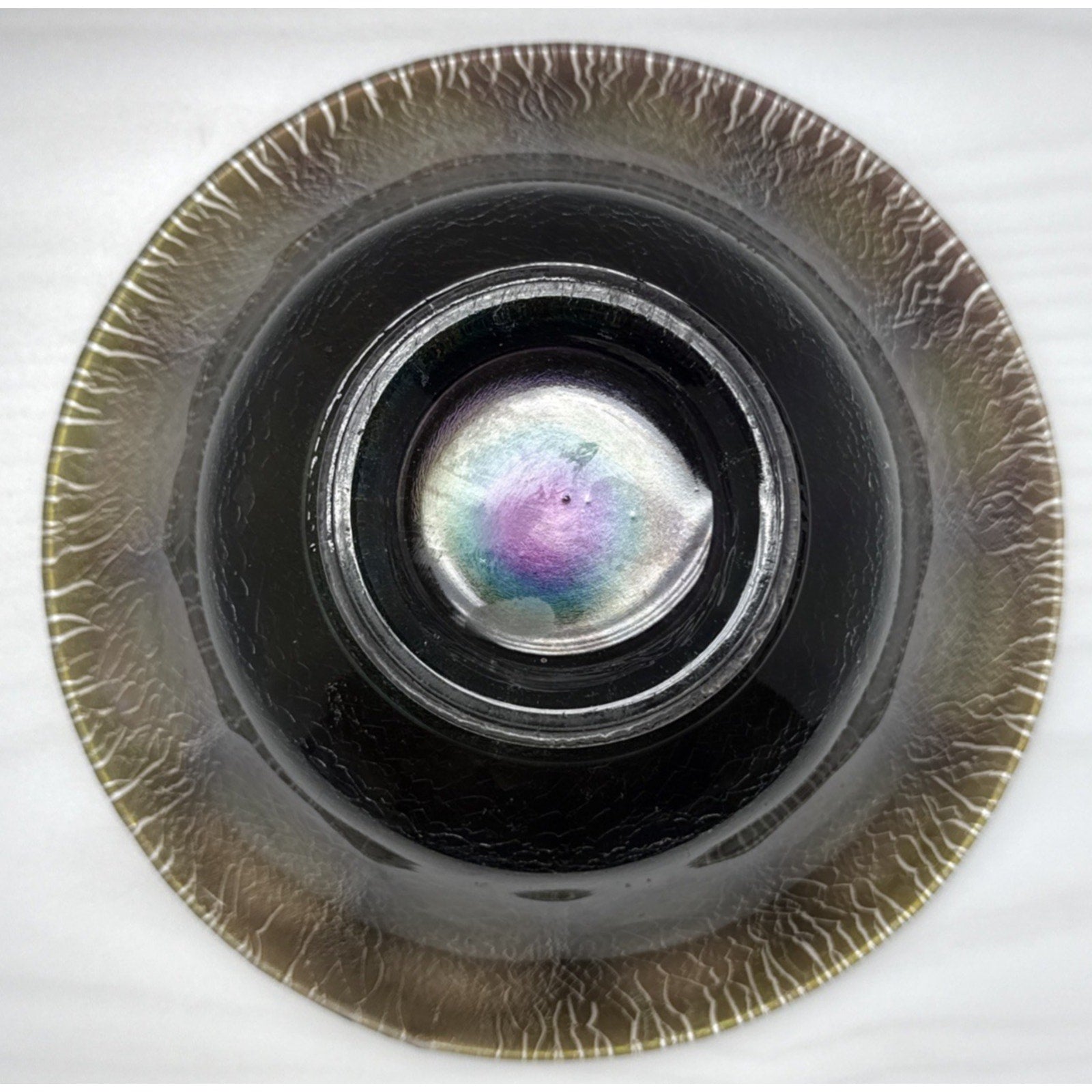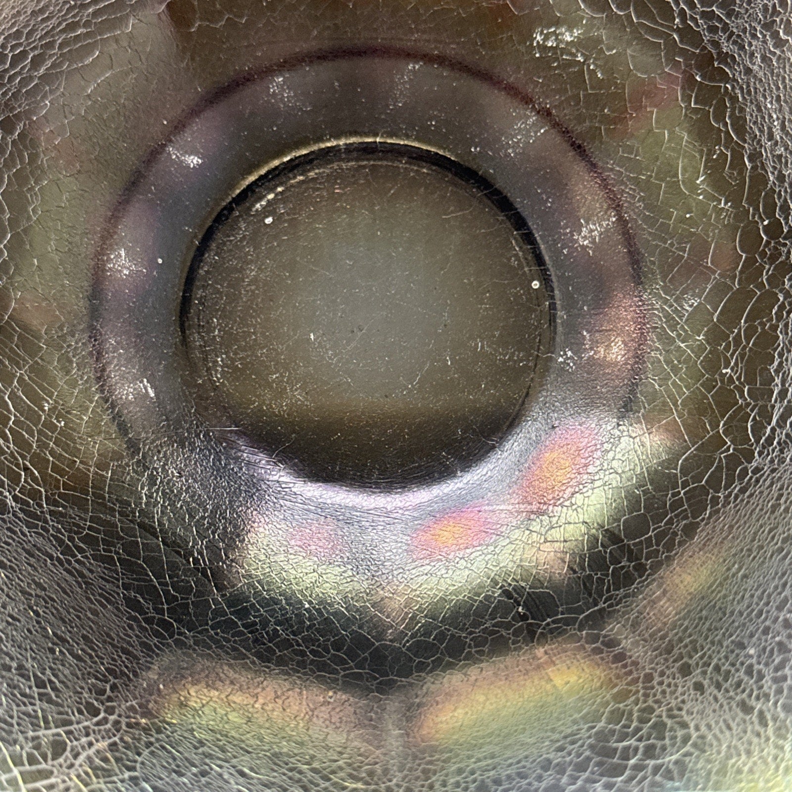 There are other areas inside the bowl that are lightened if held to the light, as if another bowl had been resting inside this one.