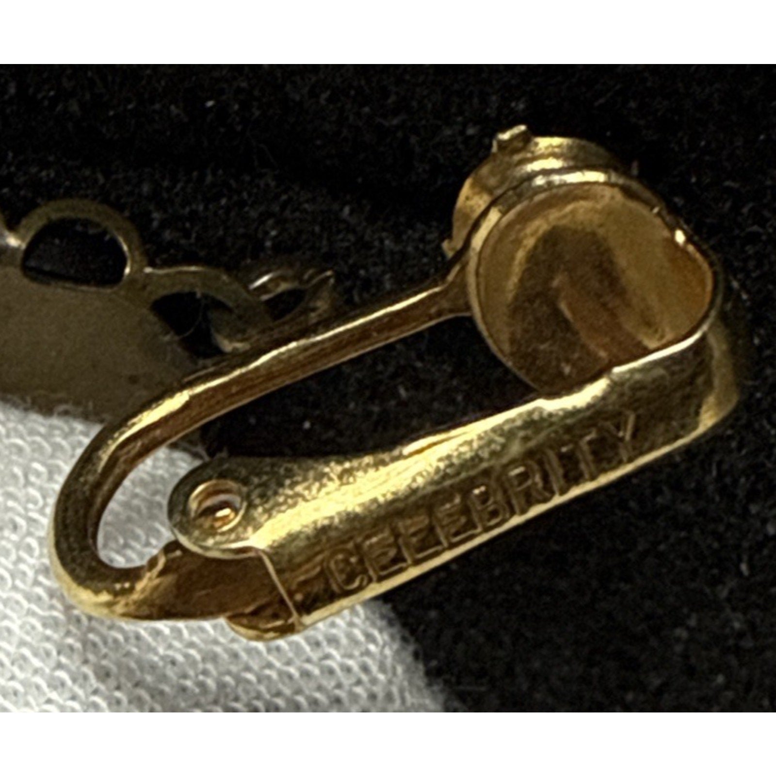 The base metal may be brass, but I am not sure. This listing is for one earring only. It dangles approx 1 inch long x .5 inches. There is minor wear and discolorations.