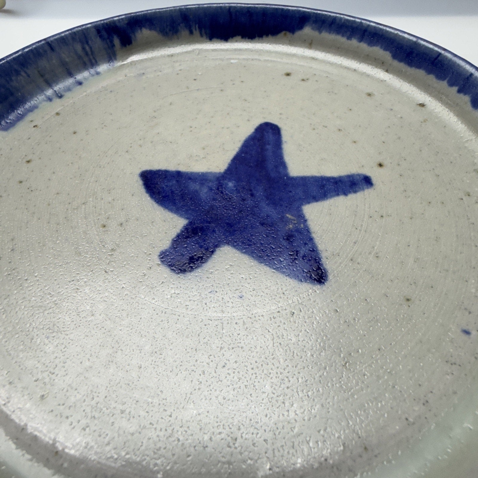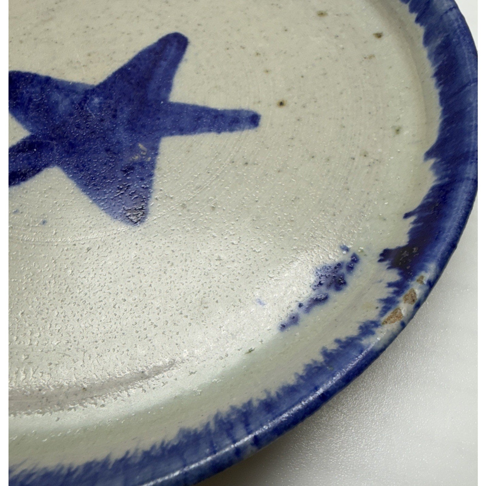Vintage Lot of 2 HMN Art Pottery Star Platter Plate Bowls Stoneware Blue