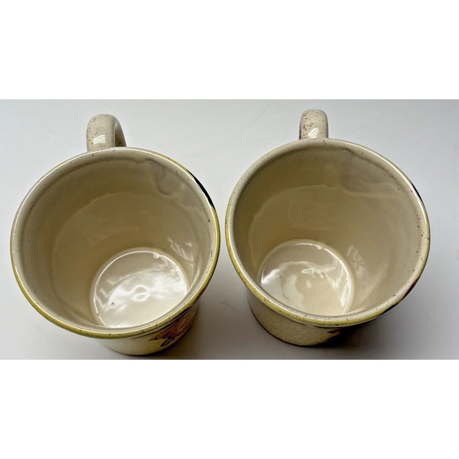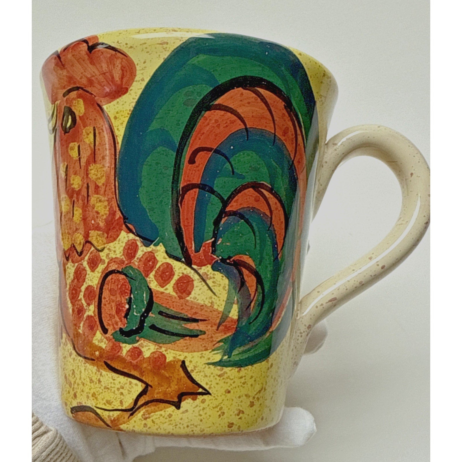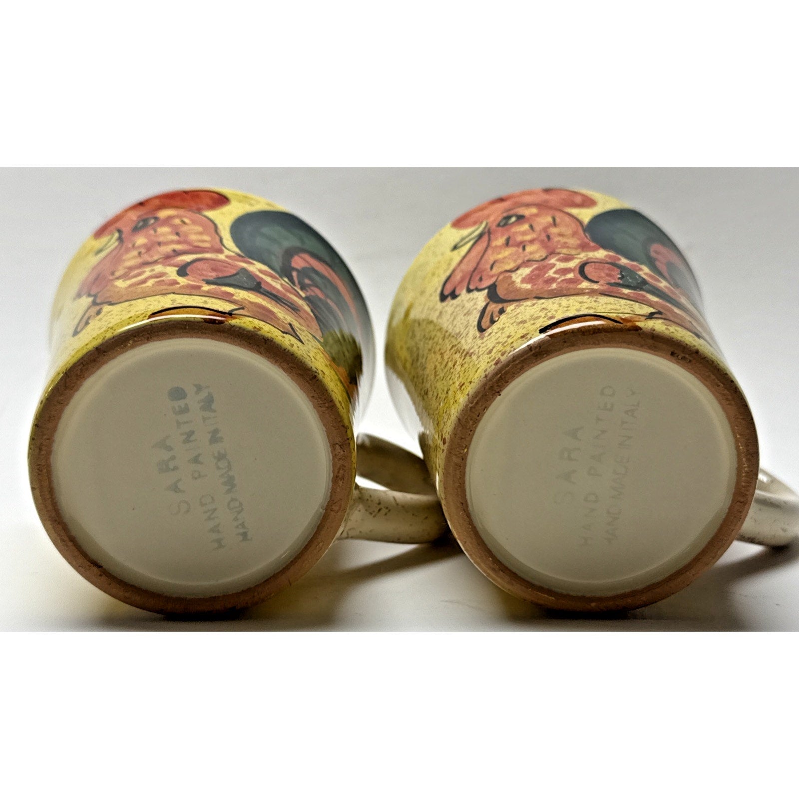 Vintage Lot of 2 Sara Hand Painted Rooster Mugs Italy Folk Art Farmhouse
