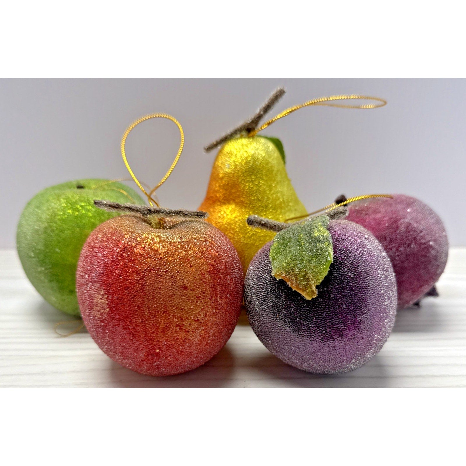 Vintage Lot of 5 Beaded Sugar Frosted Faux Fruit Christmas Ornaments