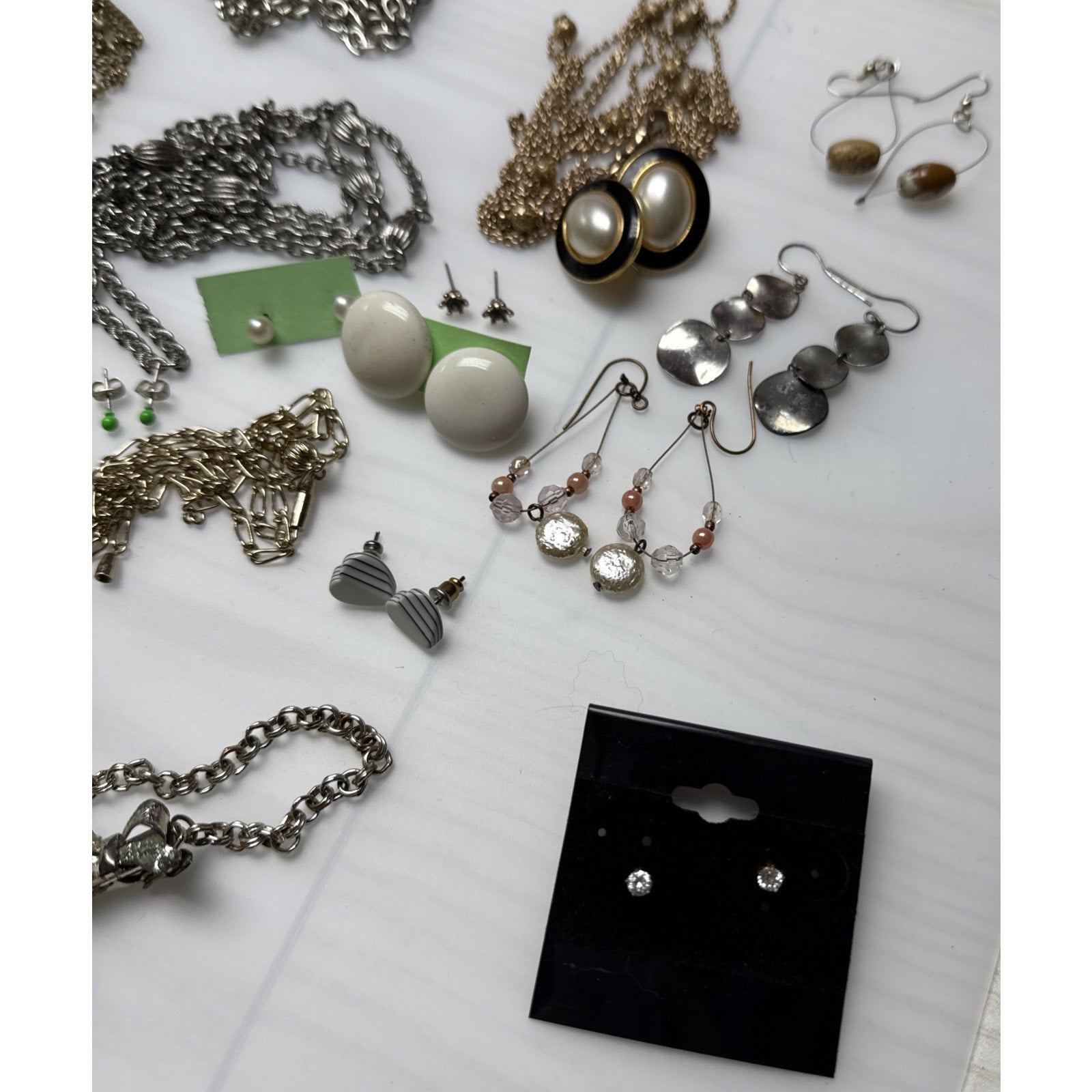 Mixed junk lot somewhat sorted. Many wearable, and many damaged. Pieces are uncleaned. Some vintage, and some modern.