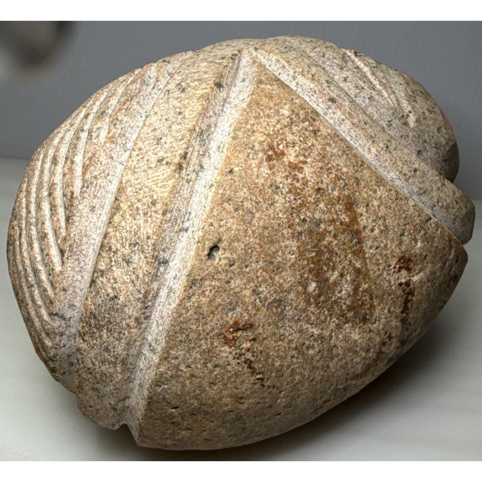 Vintage Native American Carved Stone Rock Indian Head Chief Signed Symbols