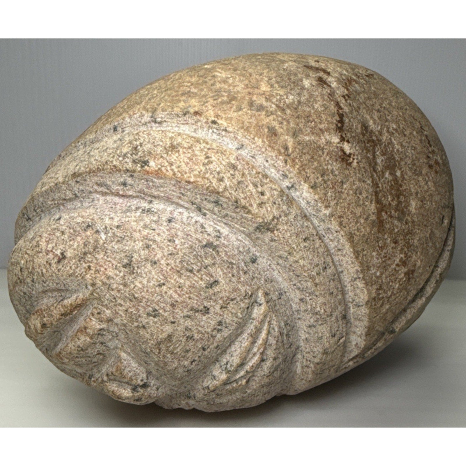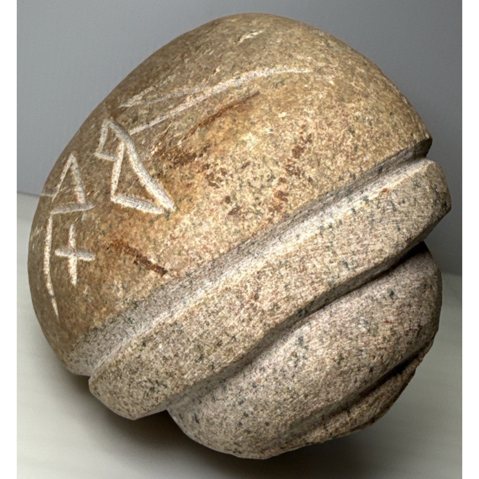 Vintage Native American Carved Stone Rock Indian Head Chief Signed Symbols