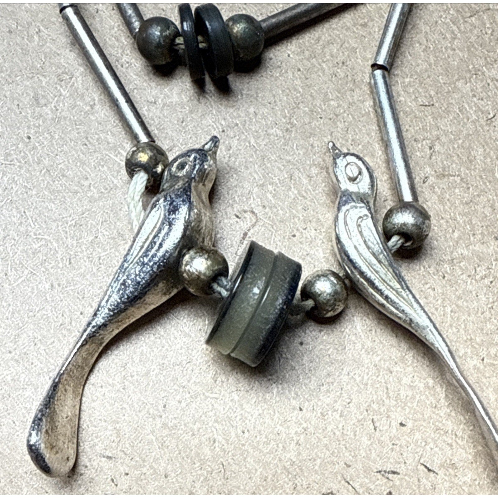 Stunning older was damaged during cleaning. There is wear and discolorations. There are spacer beads that I am not familiar with. The necklace was approx 15.5 inches long. The birds are just under 1.25 inches.