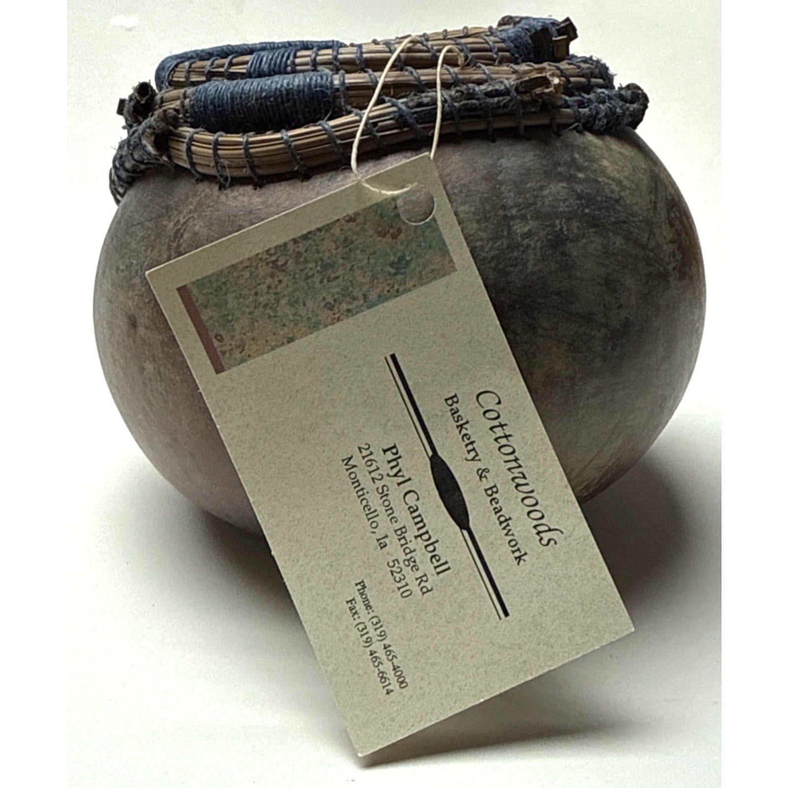 Vintage Phyl Campbell Handmade Gourd Basket Beadwork Signed