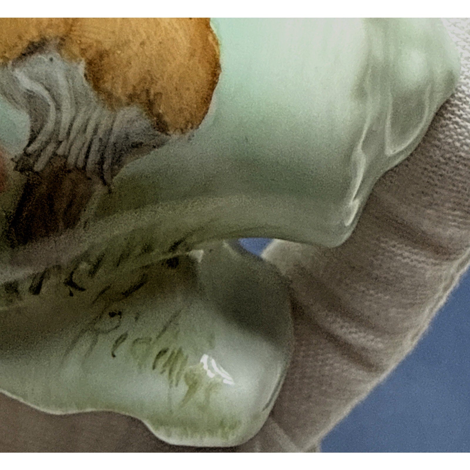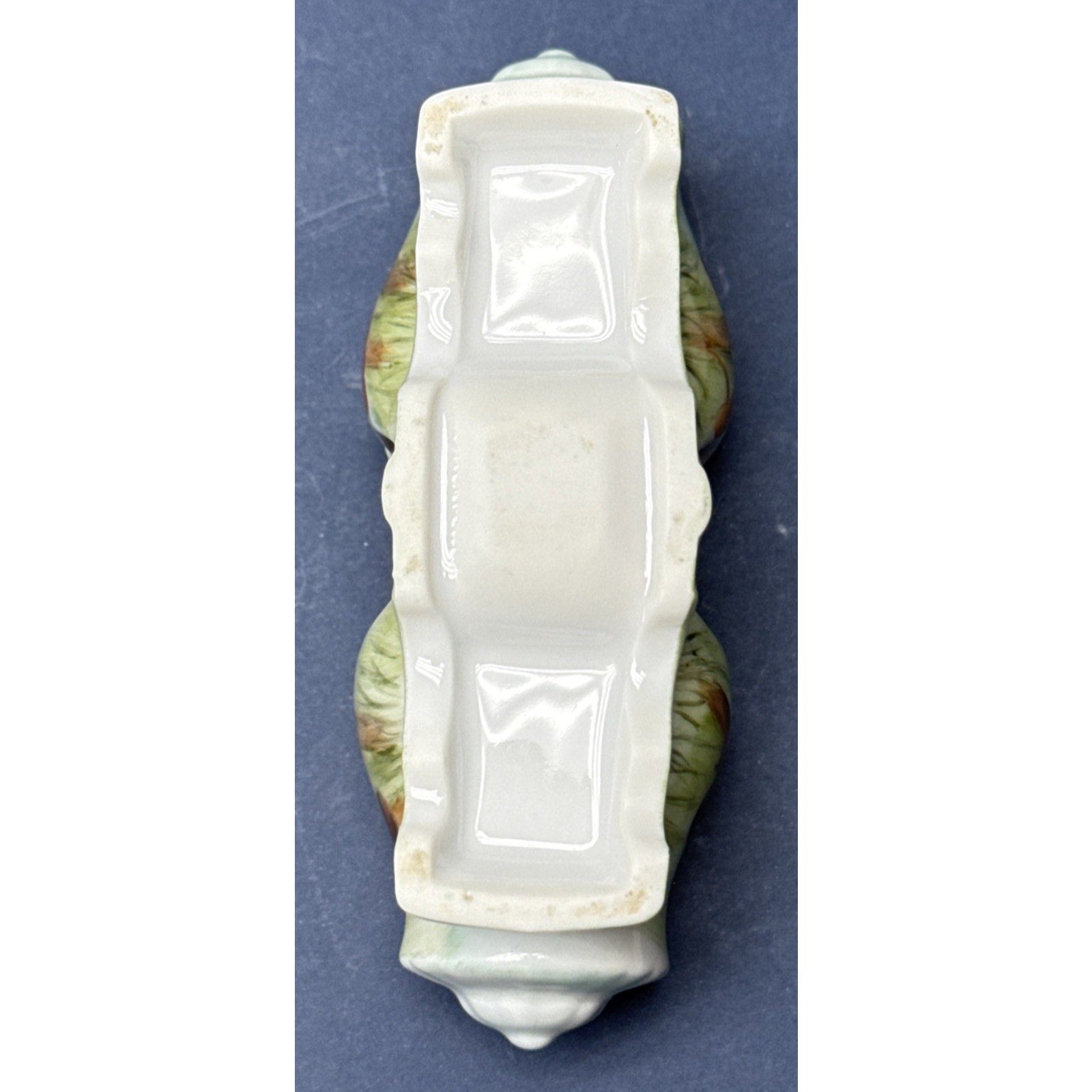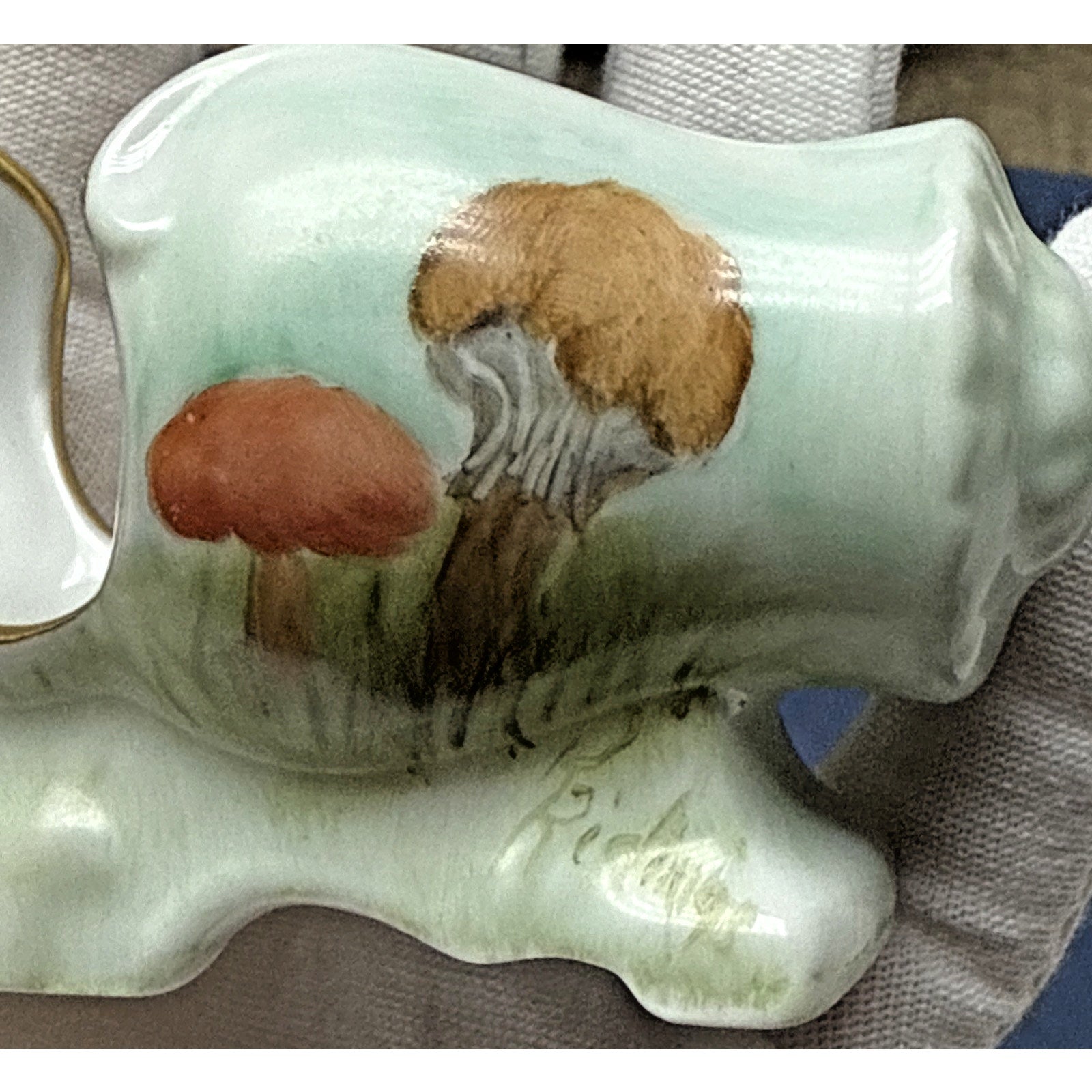 Vintage Porcelain Toothpick Holder Horizontal Hand Painted Mushrooms Gold Footed