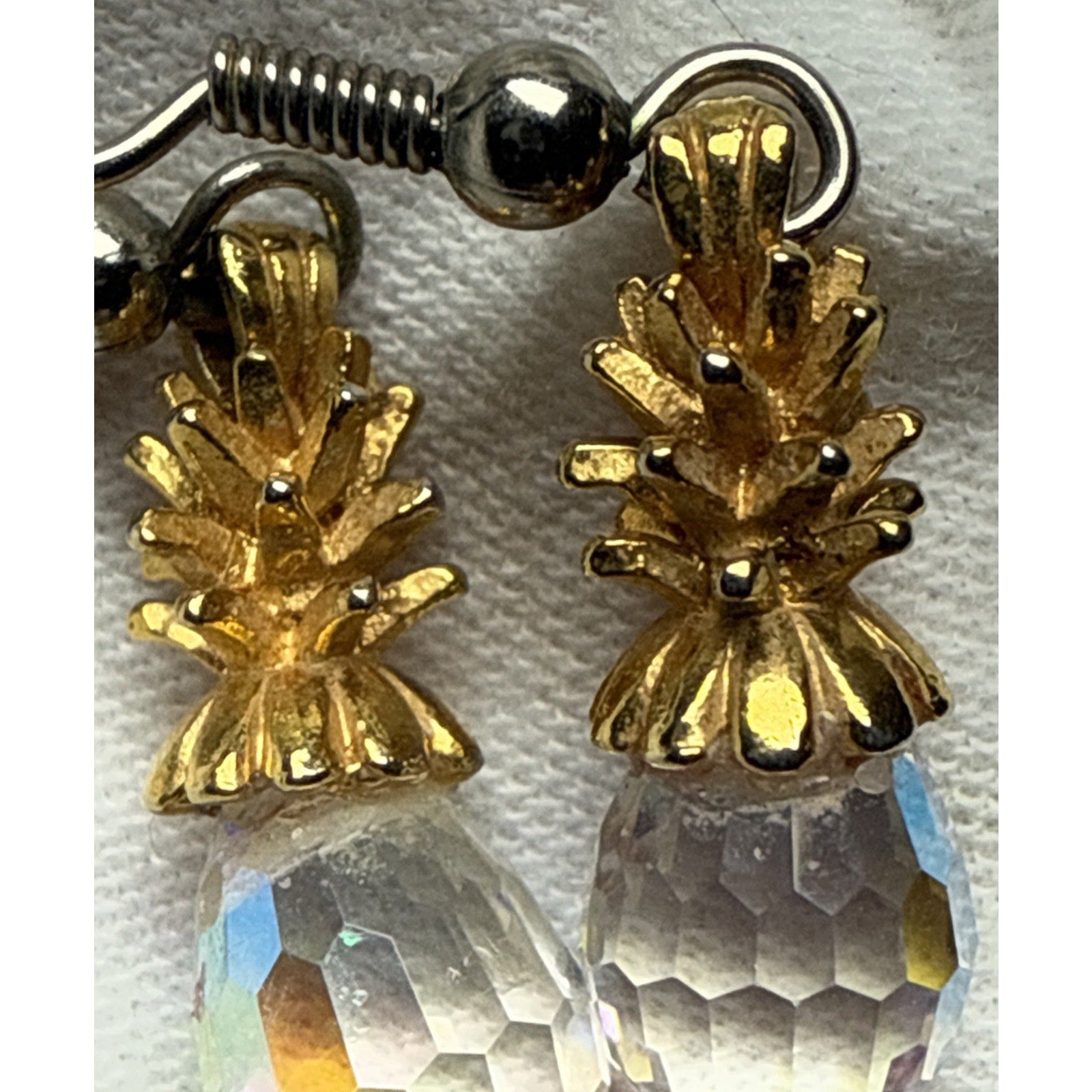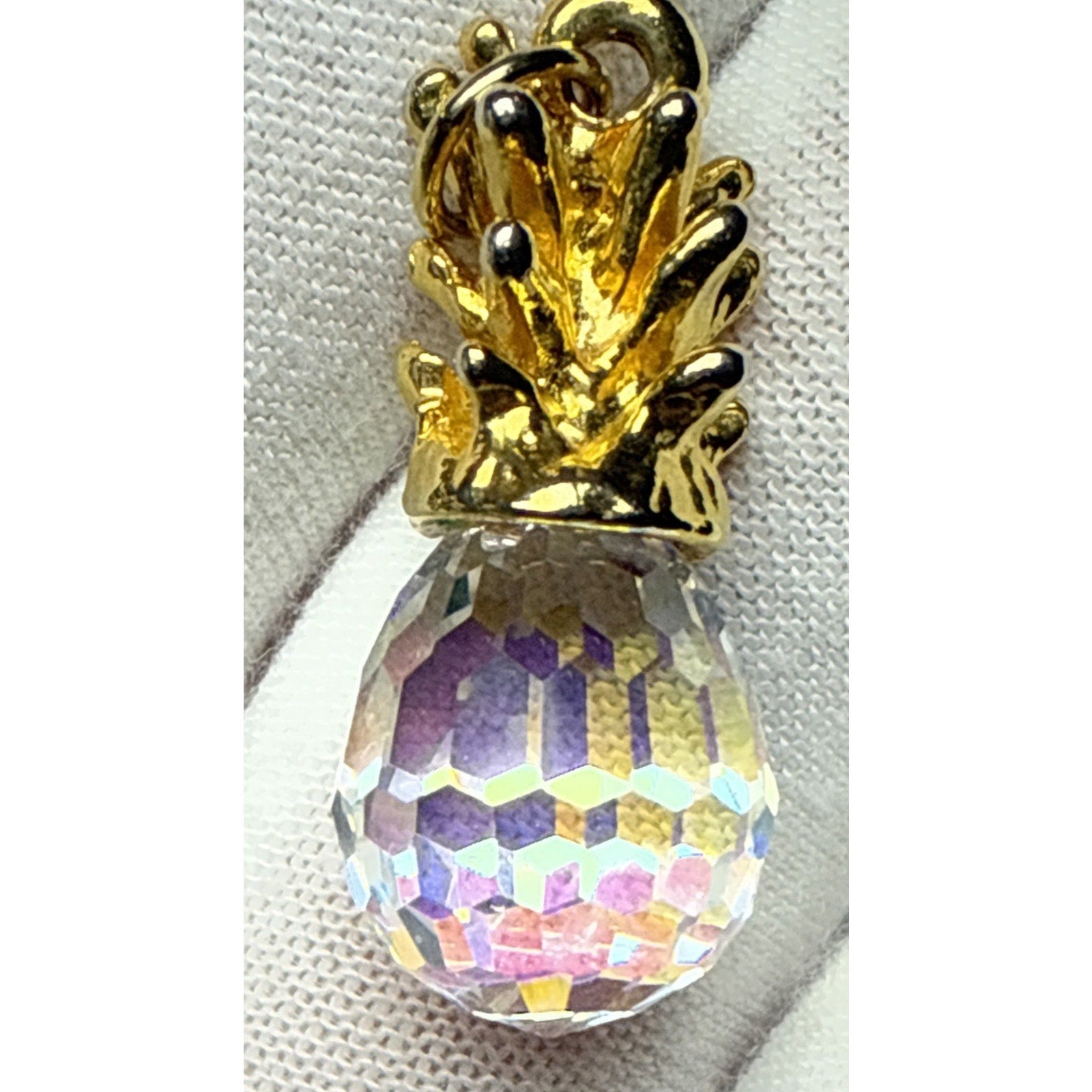 Vintage Set Faceted Crystal Pineapple Earrings and Pendant Charm As Is