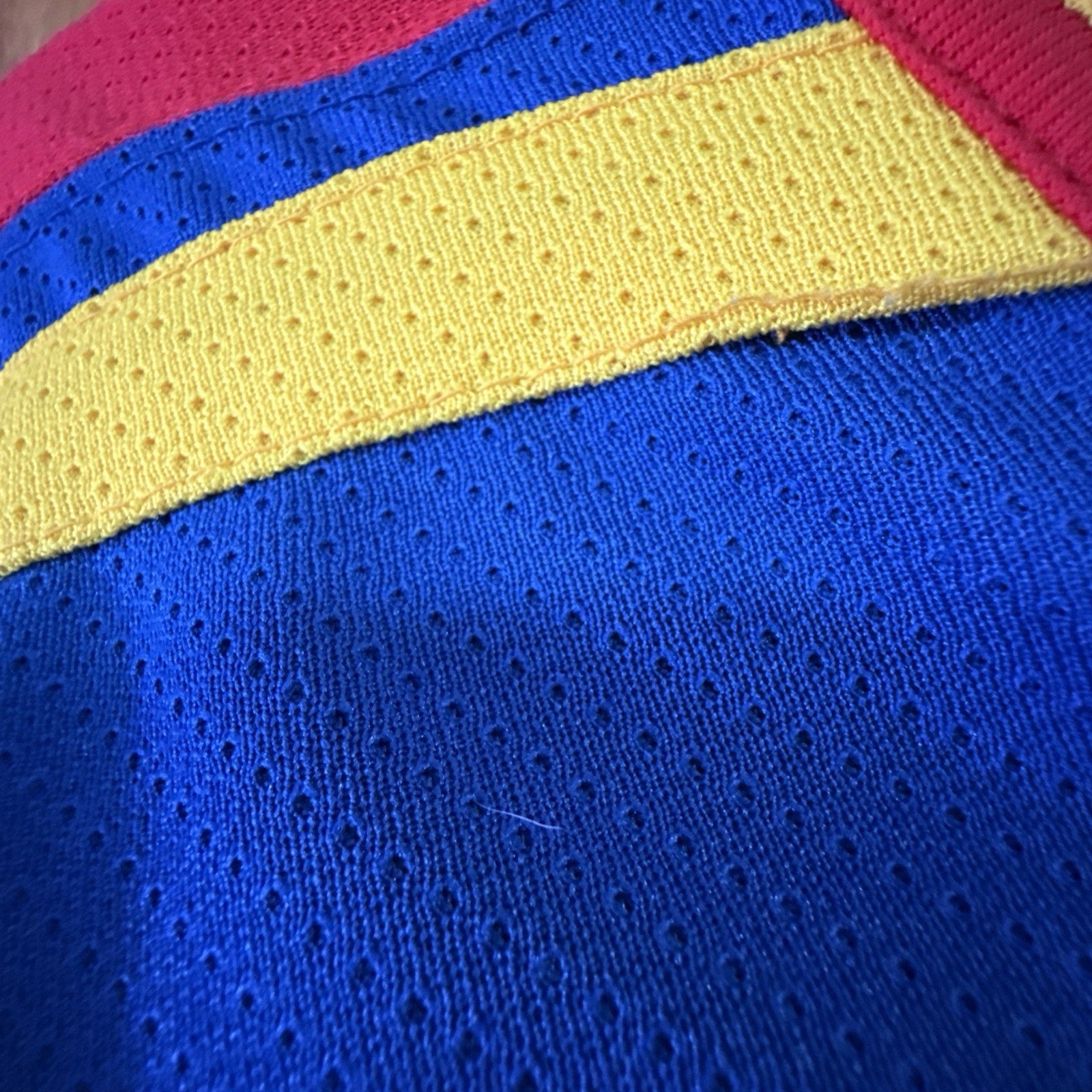 Minor wear consistent with age. Some possible discolorations on the front decal. There is a small stained spot along a yellow band. Measurements are hard to take with the jersey. The elongated arms and lower armpits. Measurements are an approximations.