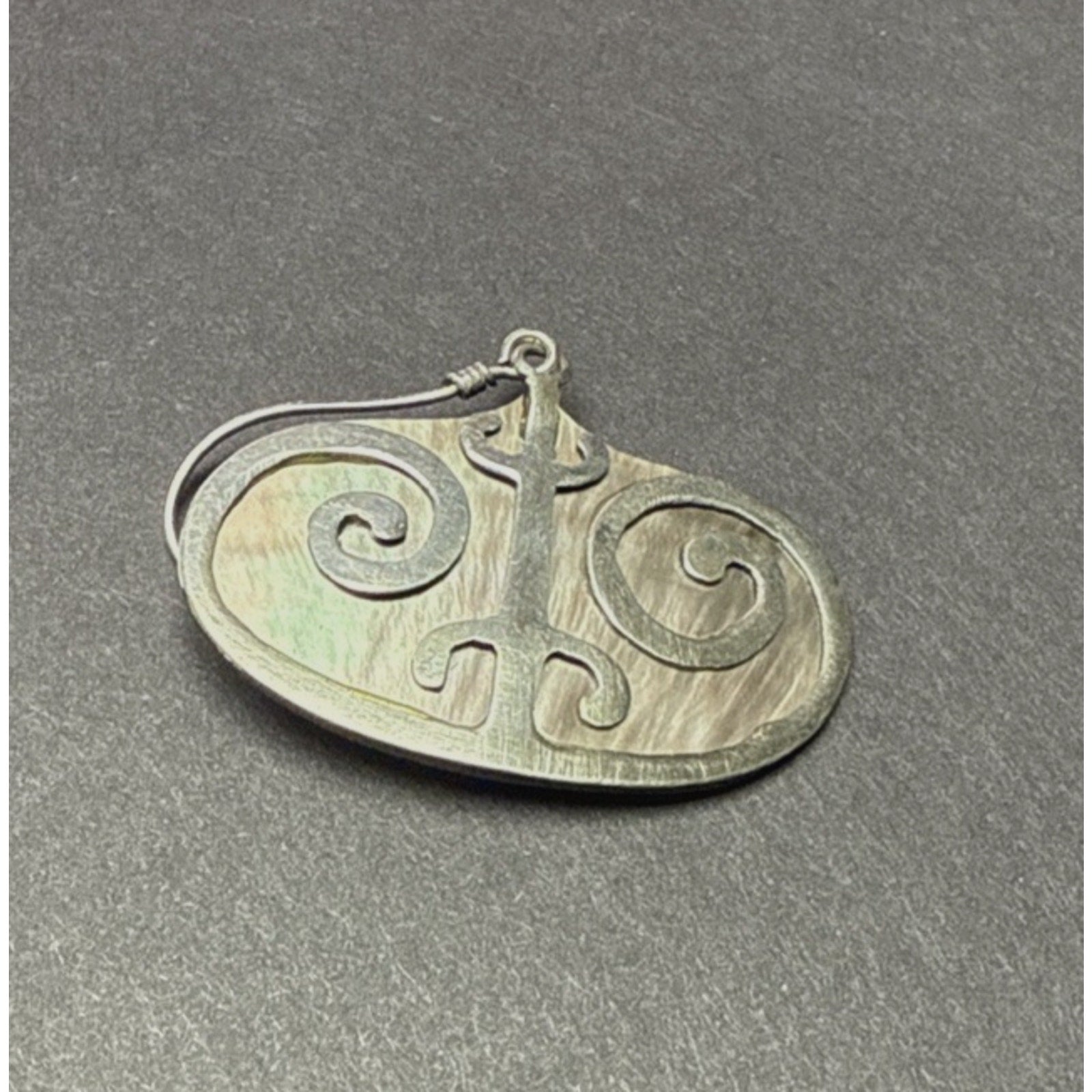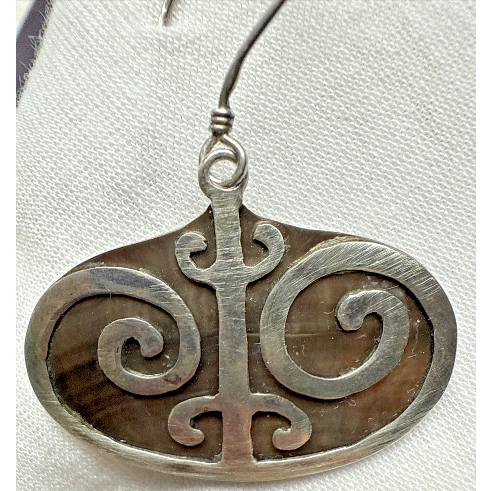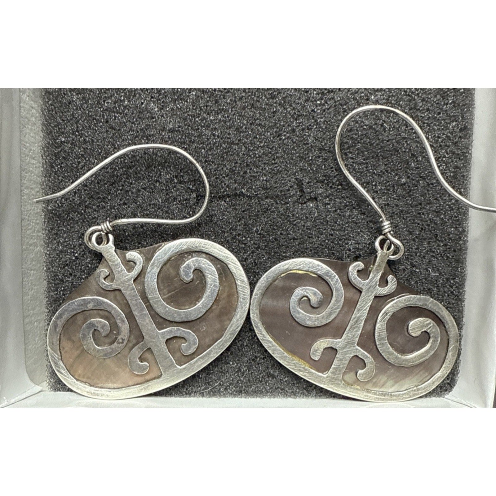 Vintage Sterling Silver Overlay Shell Nacre Earrings Large Ornate Filigree