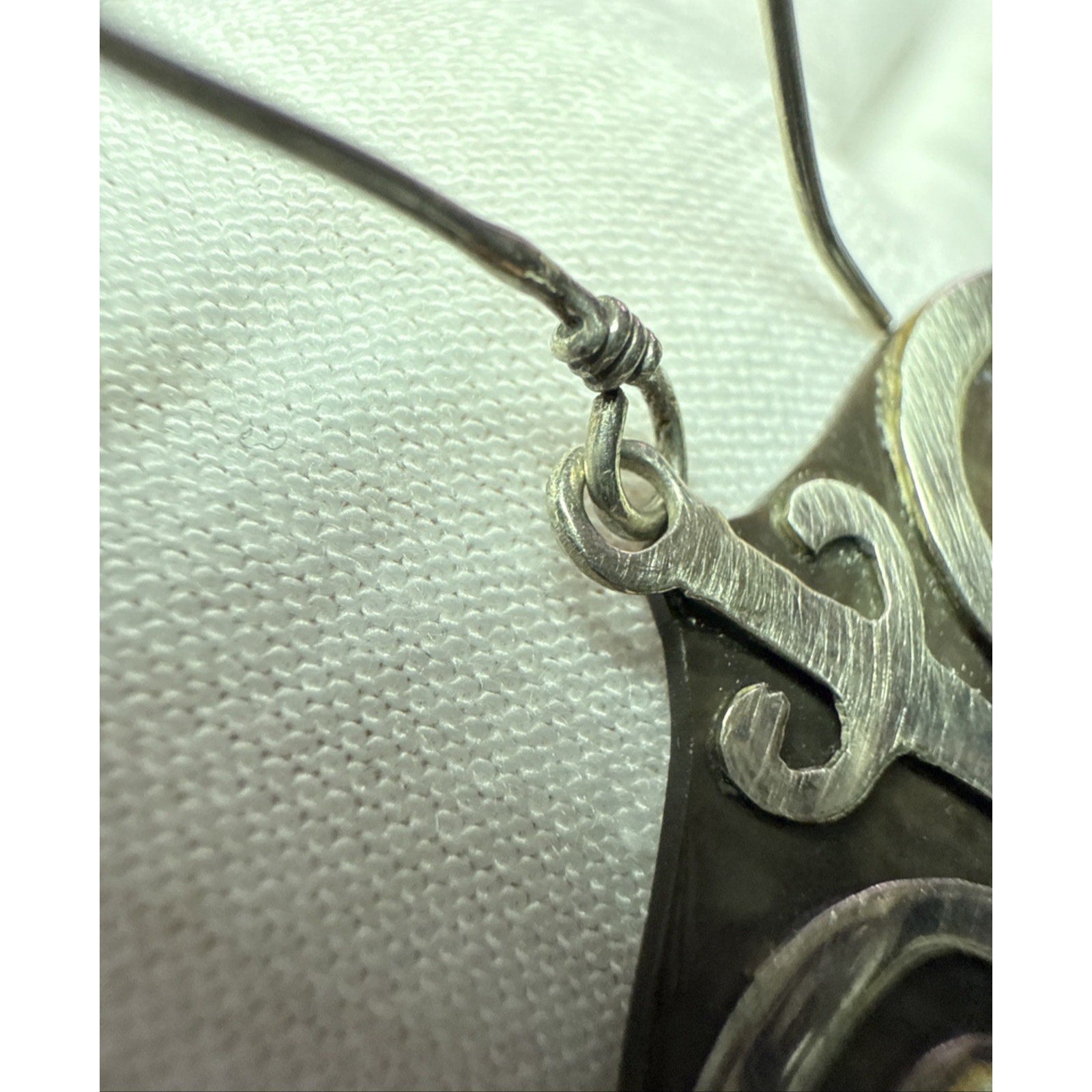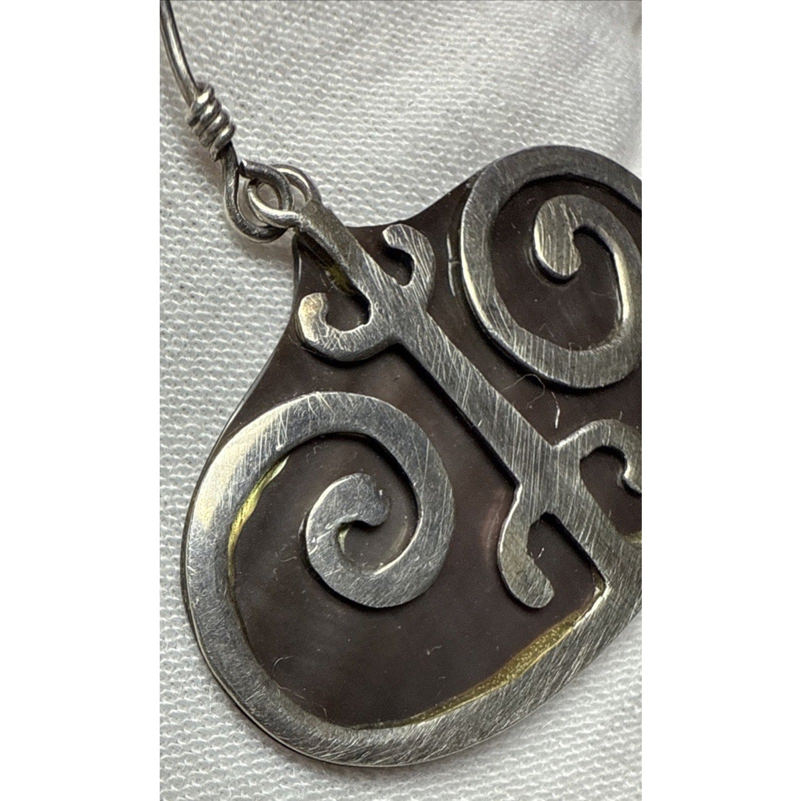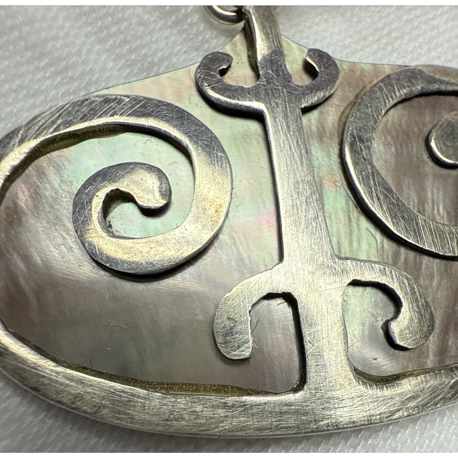 Vintage Sterling Silver Overlay Shell Nacre Earrings Large Ornate Filigree