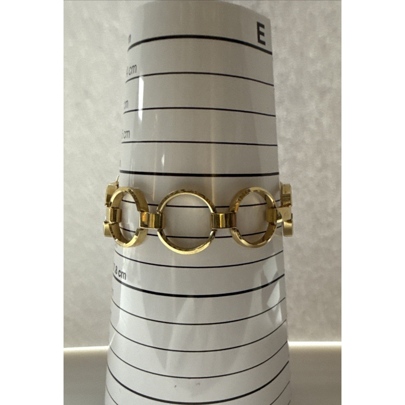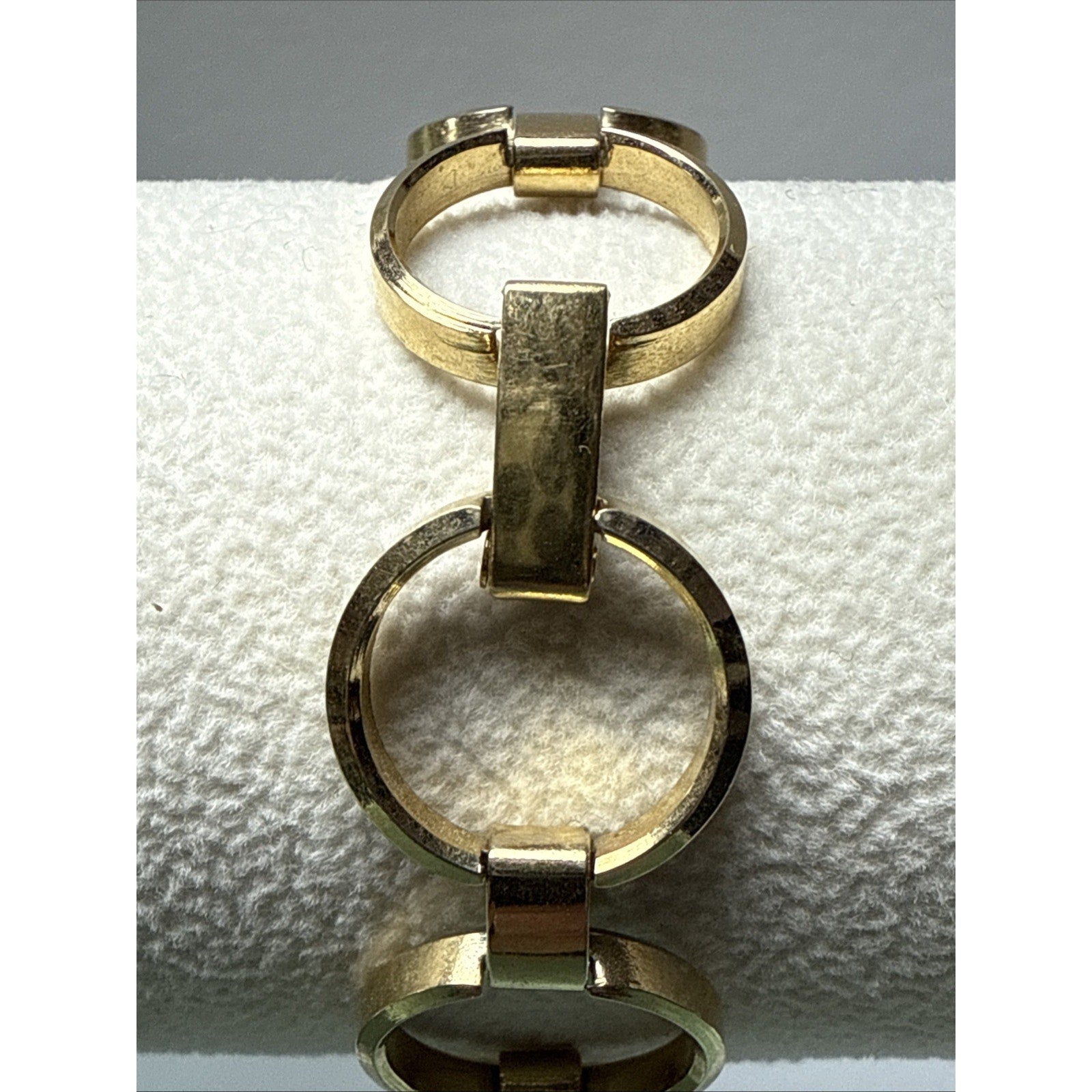Stunning piece is in good condition but there is wear, scuffs, scratches, and discolorations. The watch is a size 6.5 inch. I believe the links can be removed to be adjustable - links may have already been removed. The total length of the watch is approx 7 inches x 1 at the widest.