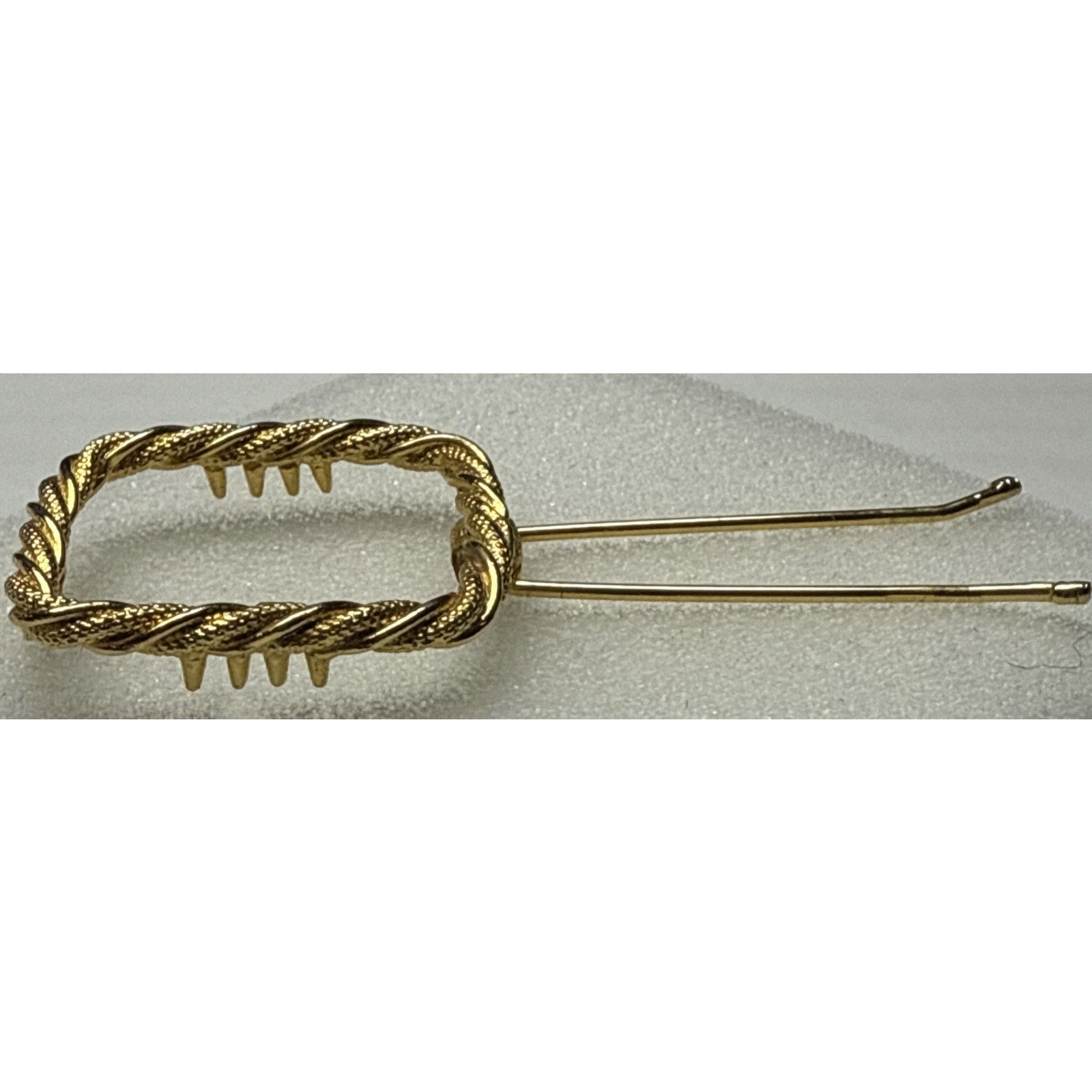 Vintage Twisted Rope Gold Tone Metal Hair Barrette Square