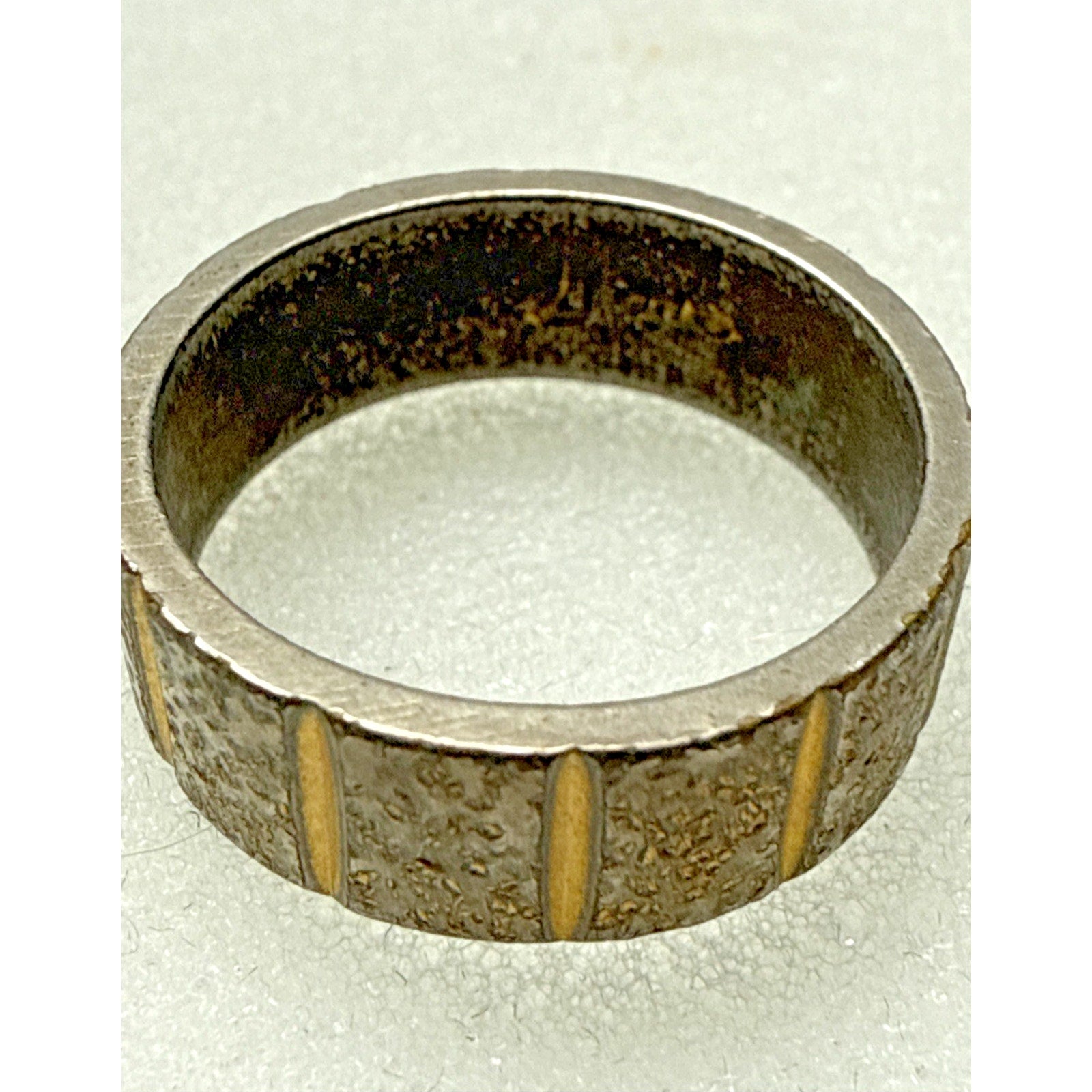 Vintage Uncas Cigar Band Ring Sz 7 Silver Gold Metal Ribbed As-Is