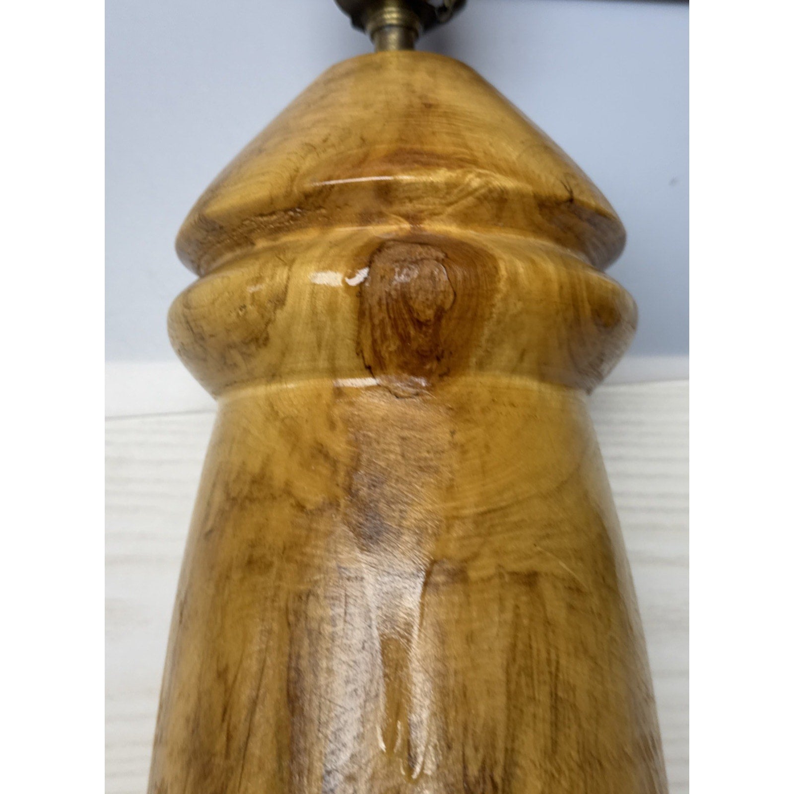 Vintage Wood Turned Table Lamp Burlwood Tall Flame Finial As Is Read