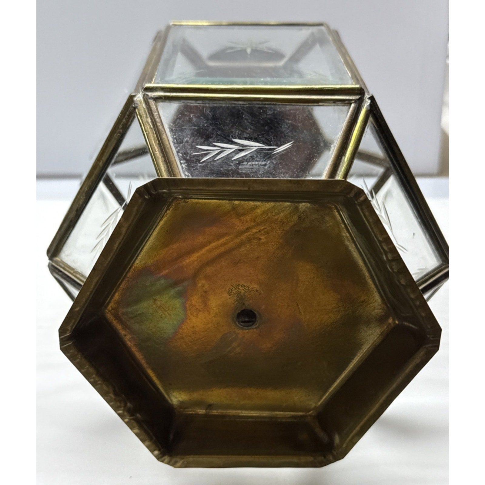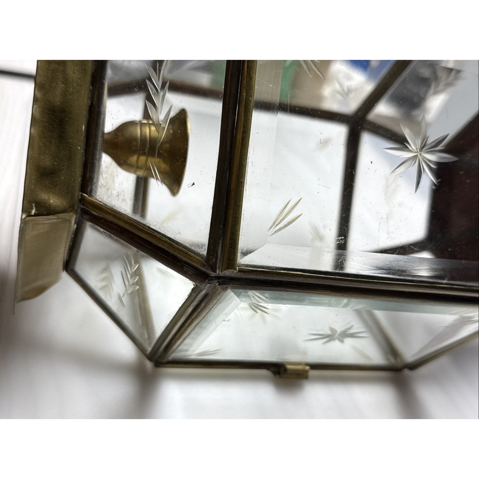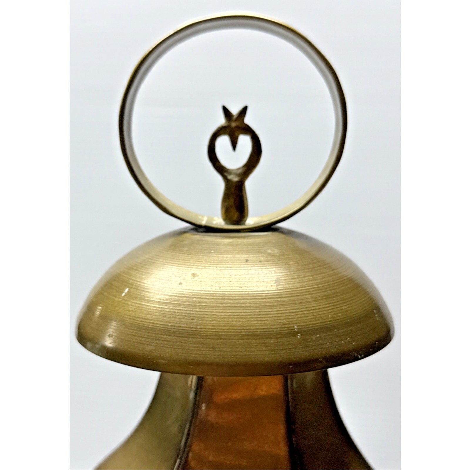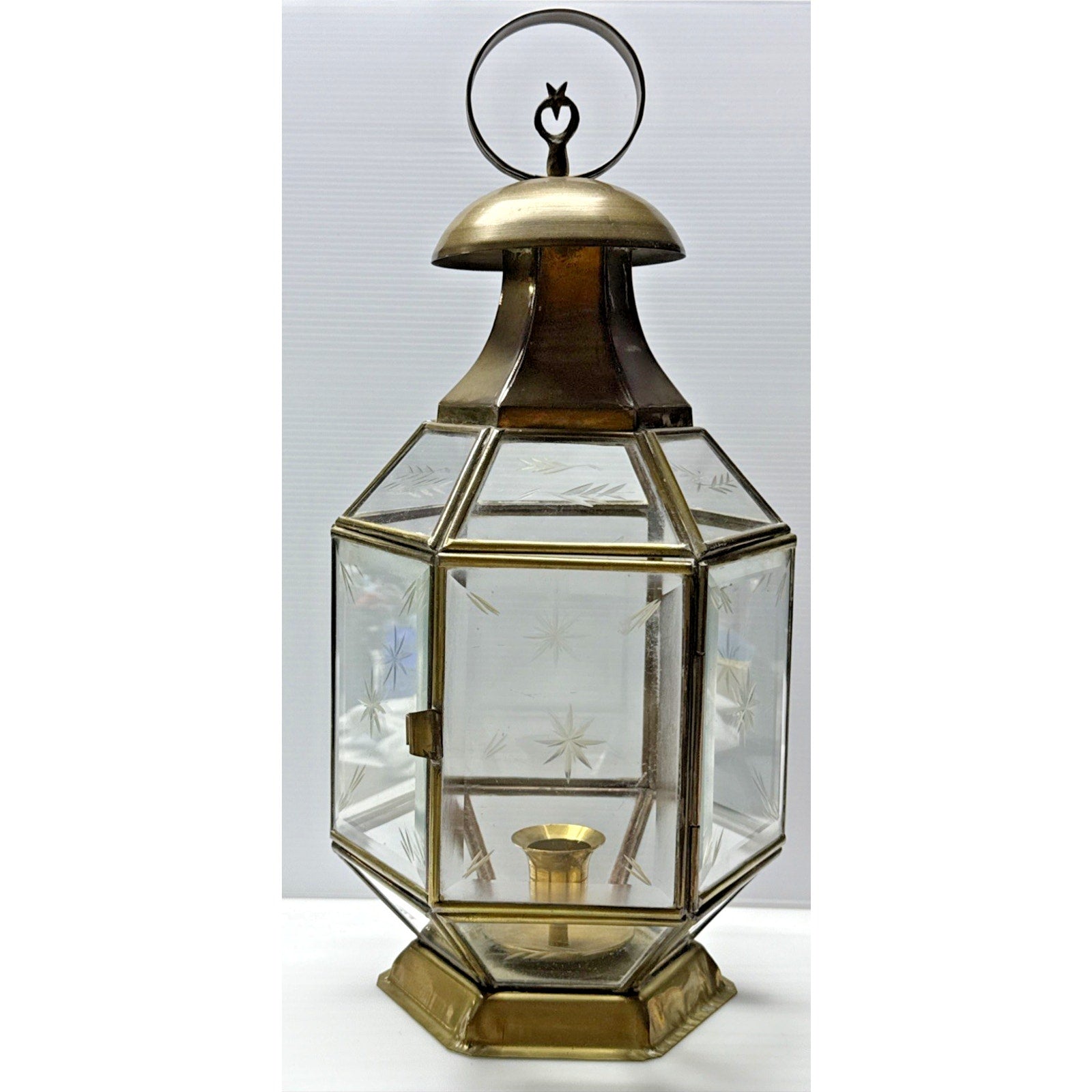Vintage Yuksel Lambalari Turkish Shepard Brass Candle Lantern Lamp Etched Glass