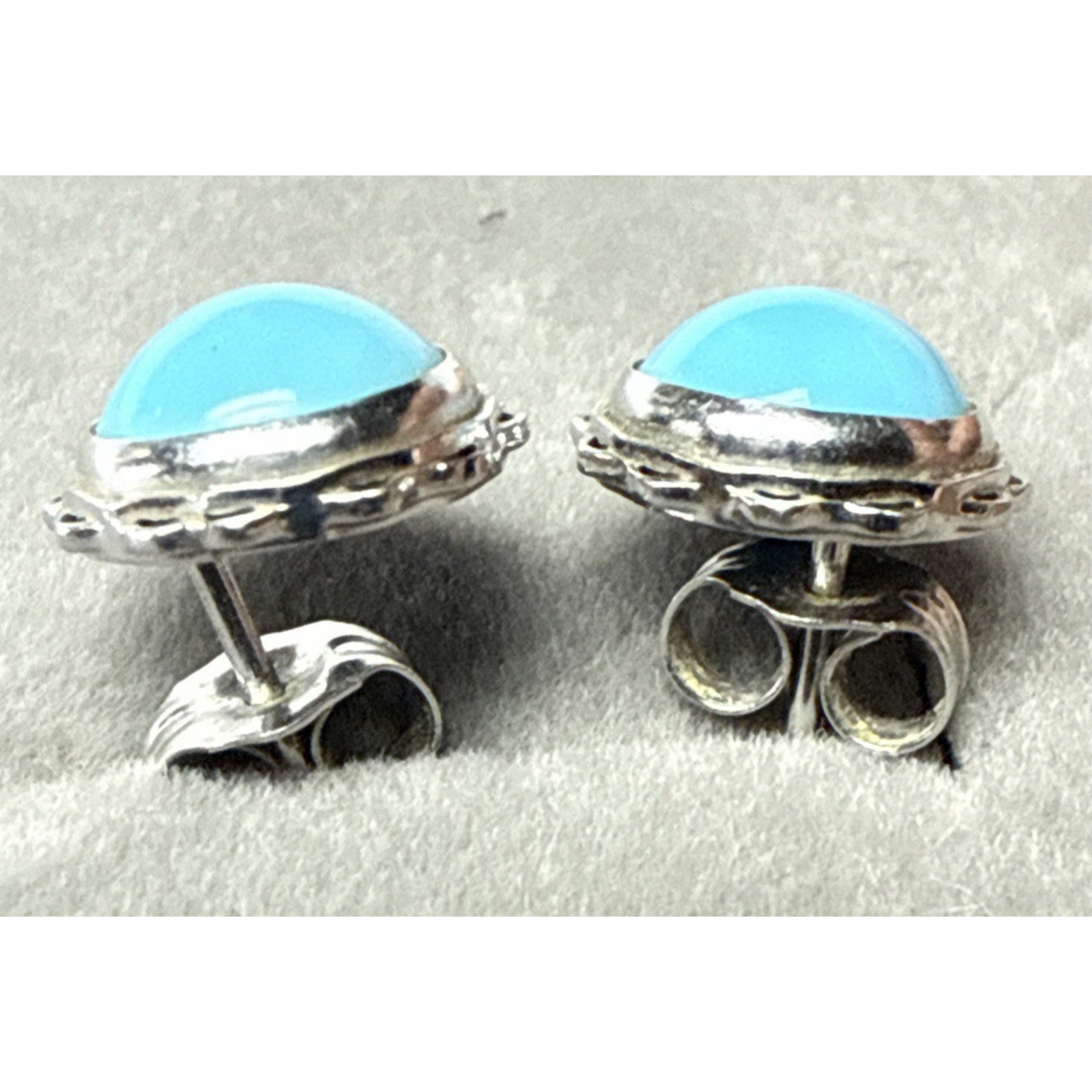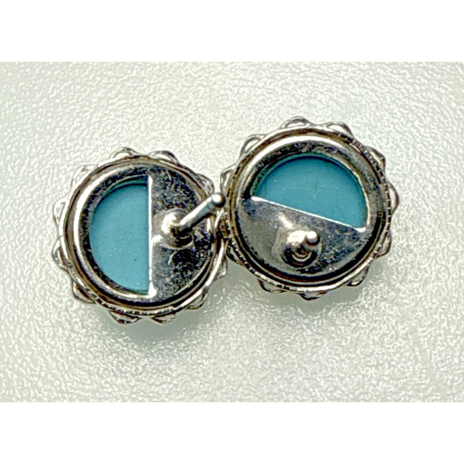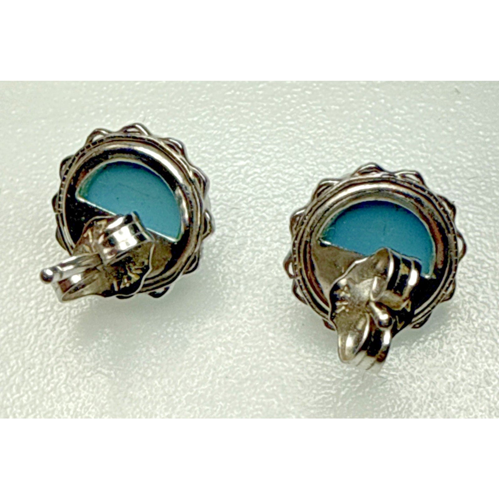 Vintage ZZ 14k White Gold Blue Turquoise Stud Earrings