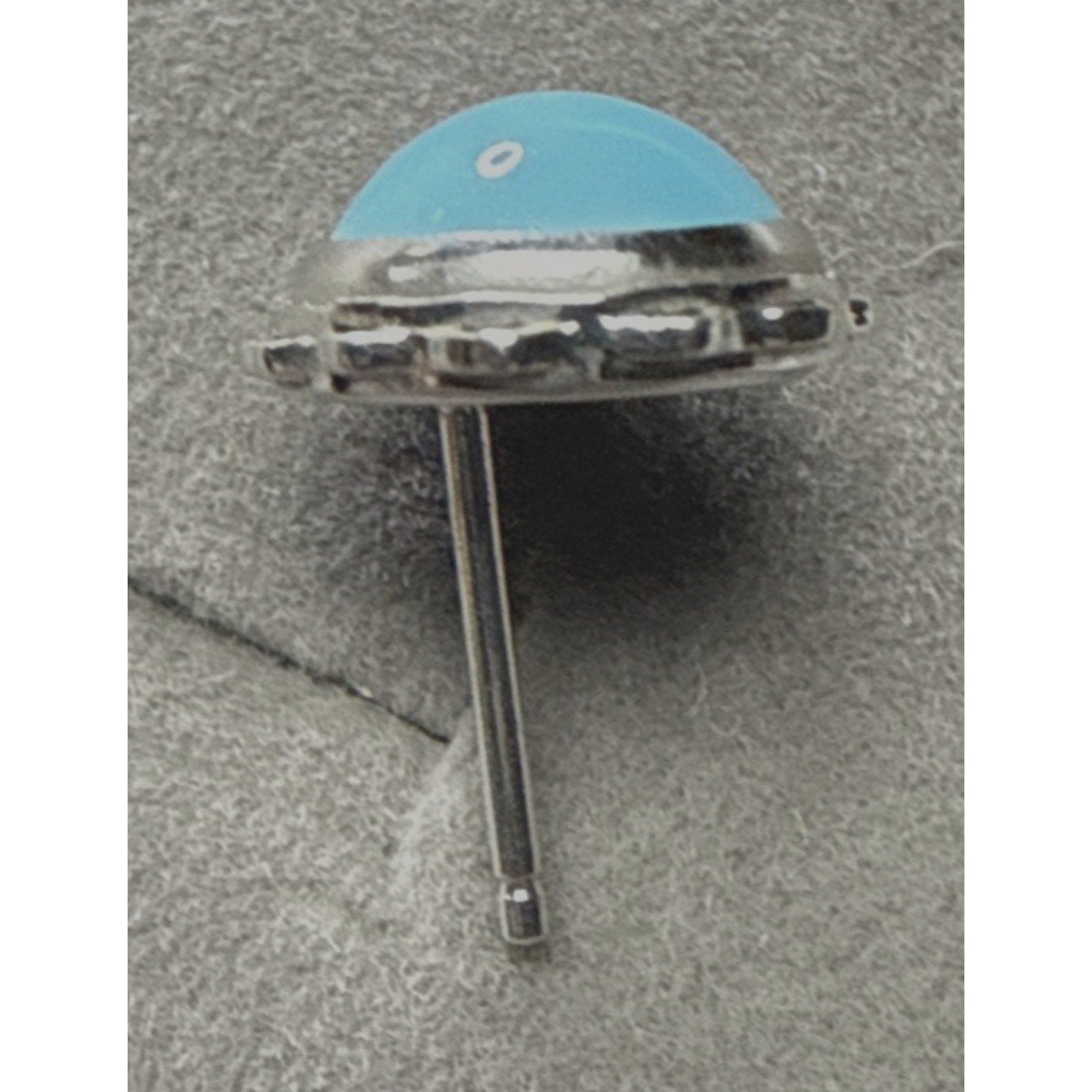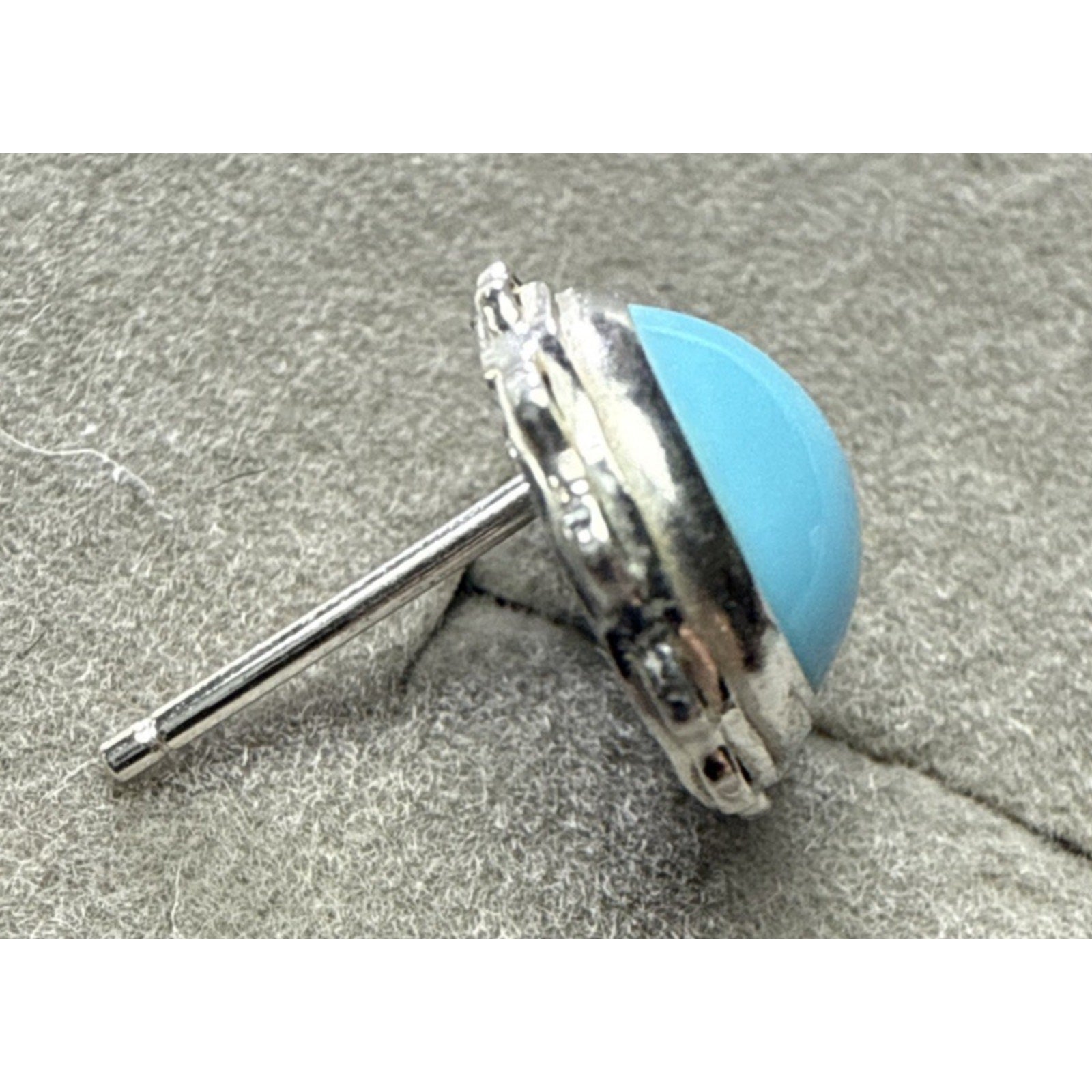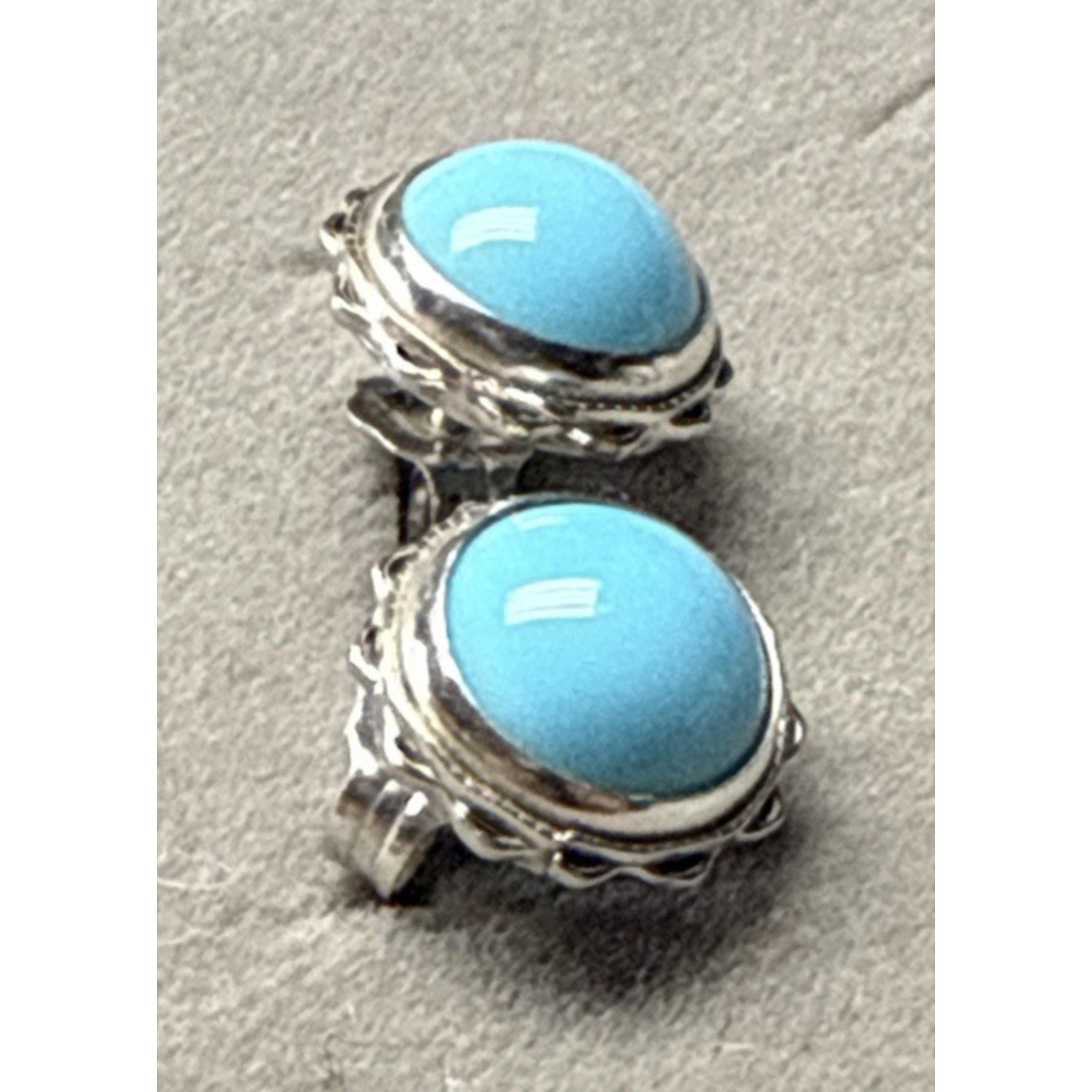 Vintage ZZ 14k White Gold Blue Turquoise Stud Earrings