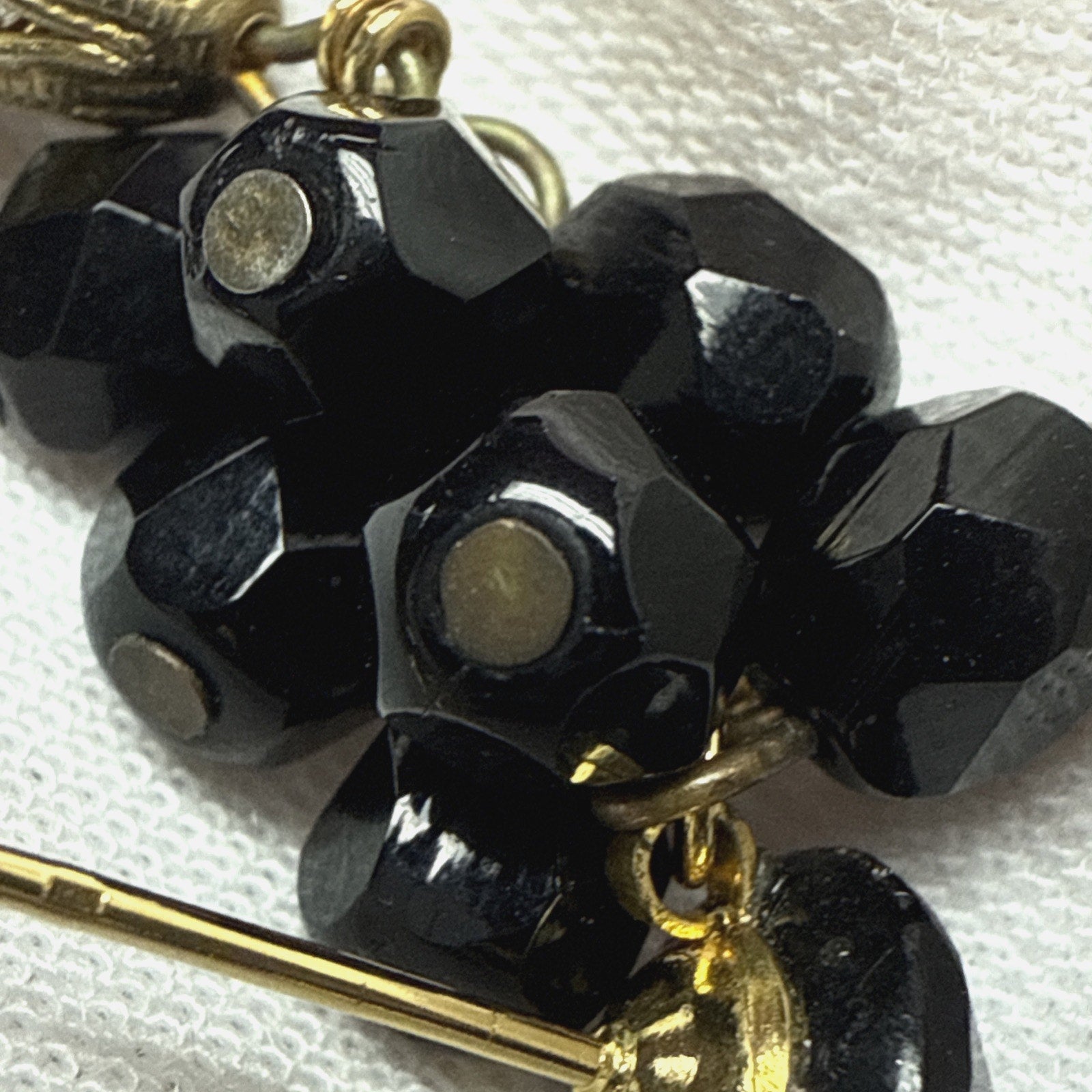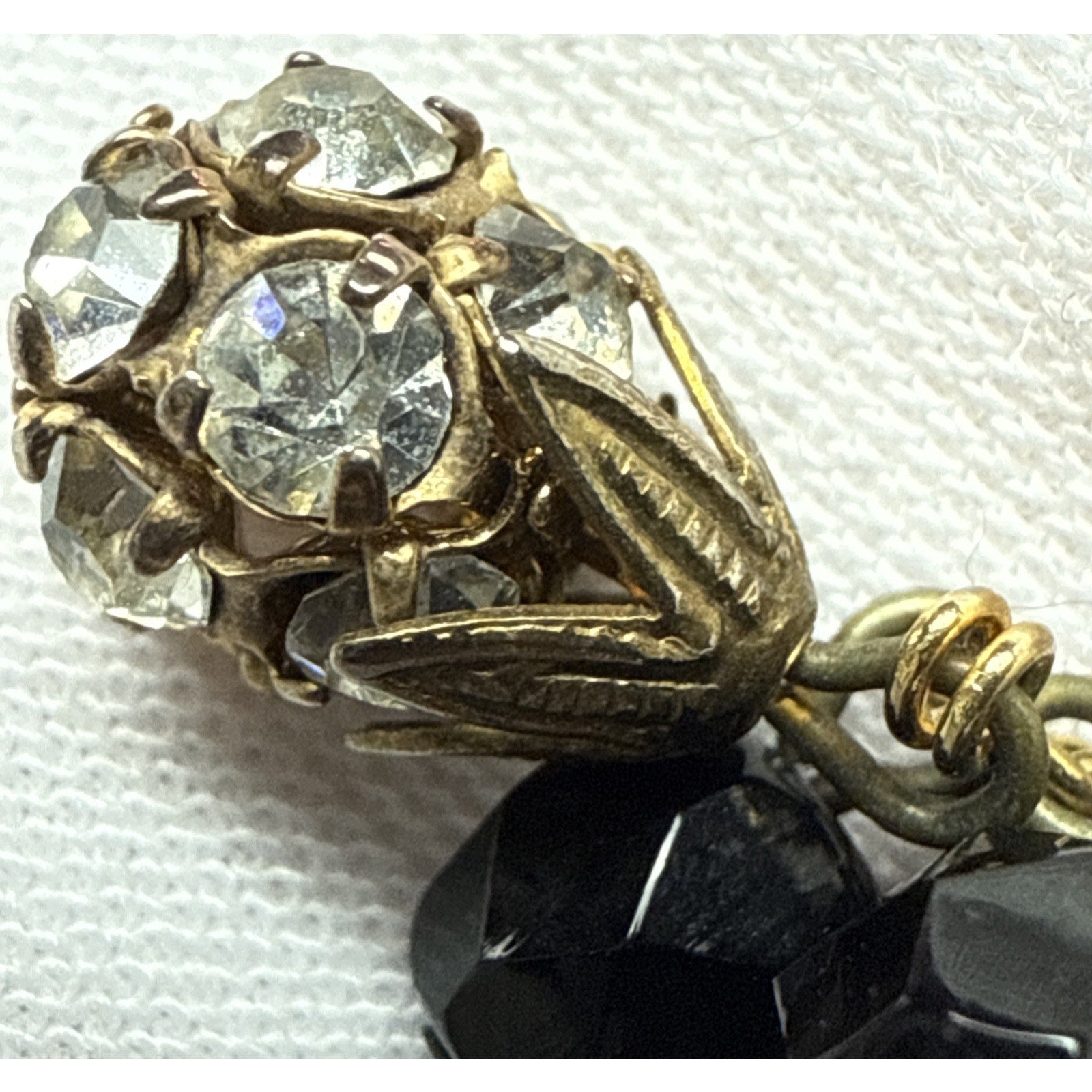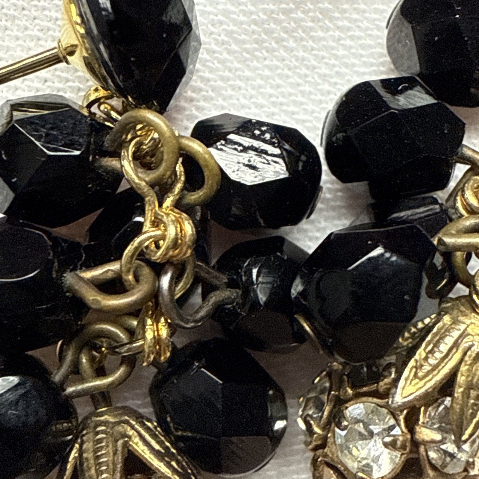 Vtg Black Faceted Glass Cluster Dangle Drop Earrings Disco Ball Rhinestone As-Is