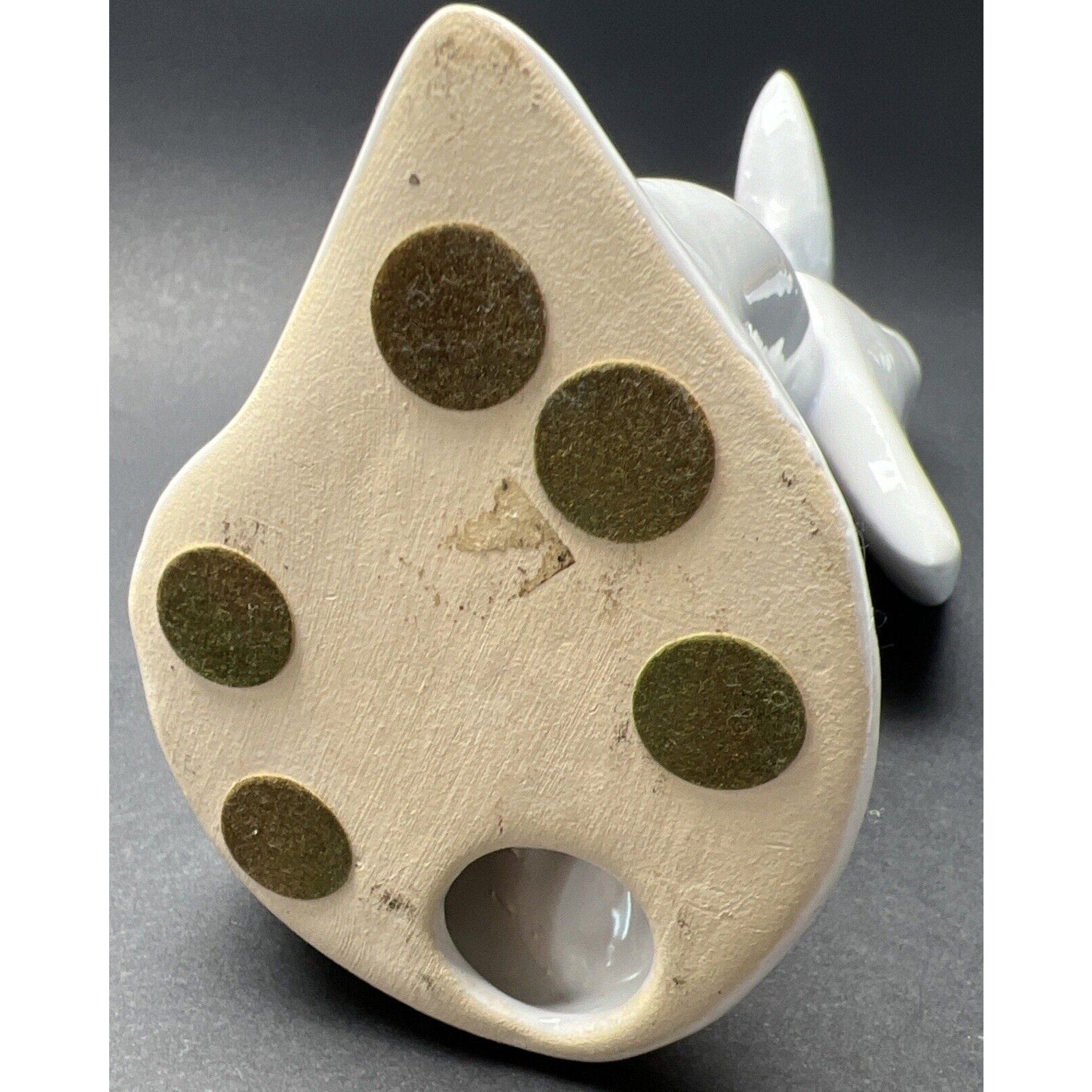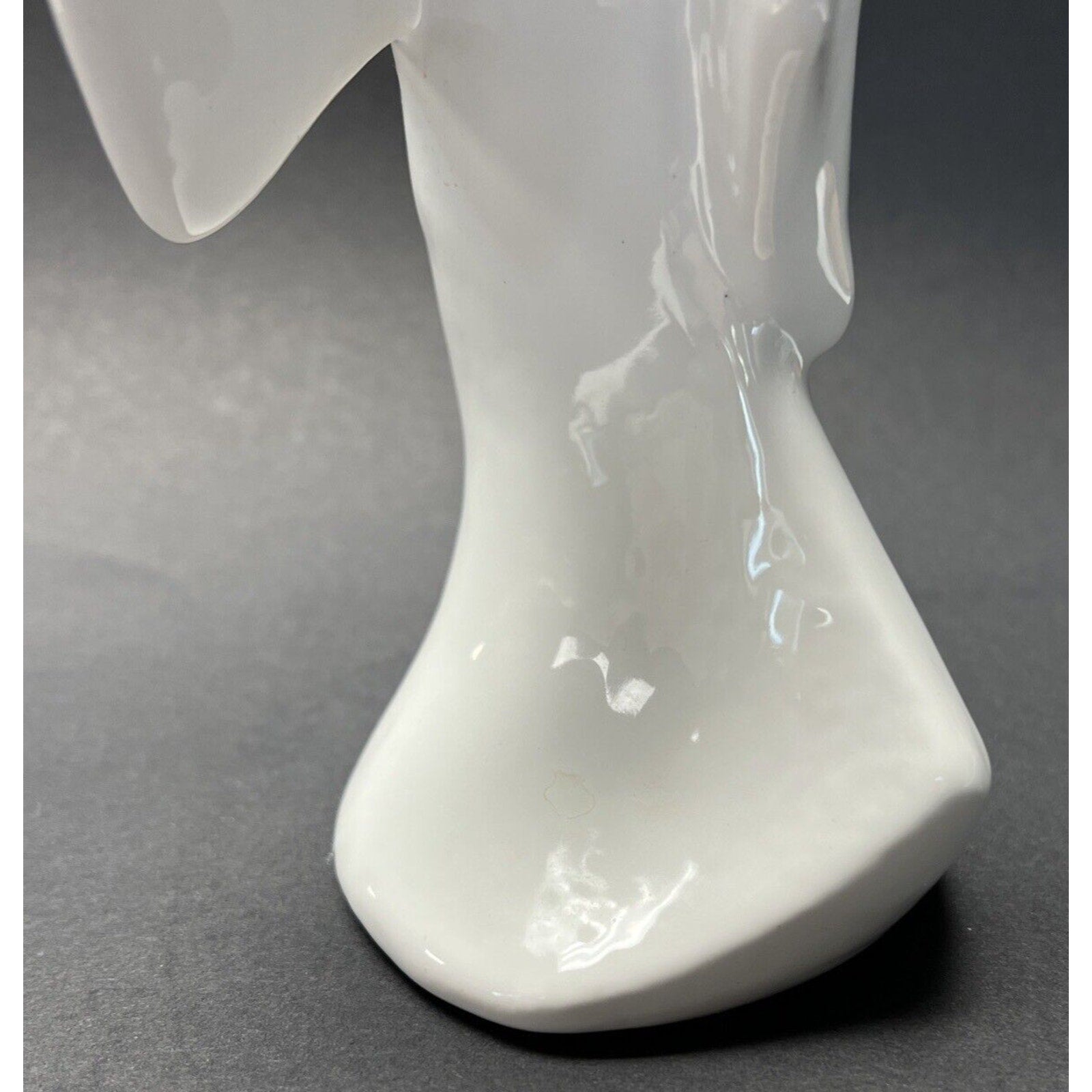 Beautiful piece is unmarked, so please review the pictures closely. There are no chips or cracks, but there is some wear to the glaze such as scuffs and discolorations. The glaze is thick. She stands approx 11.5 inches tall x 4.5 x 4.
